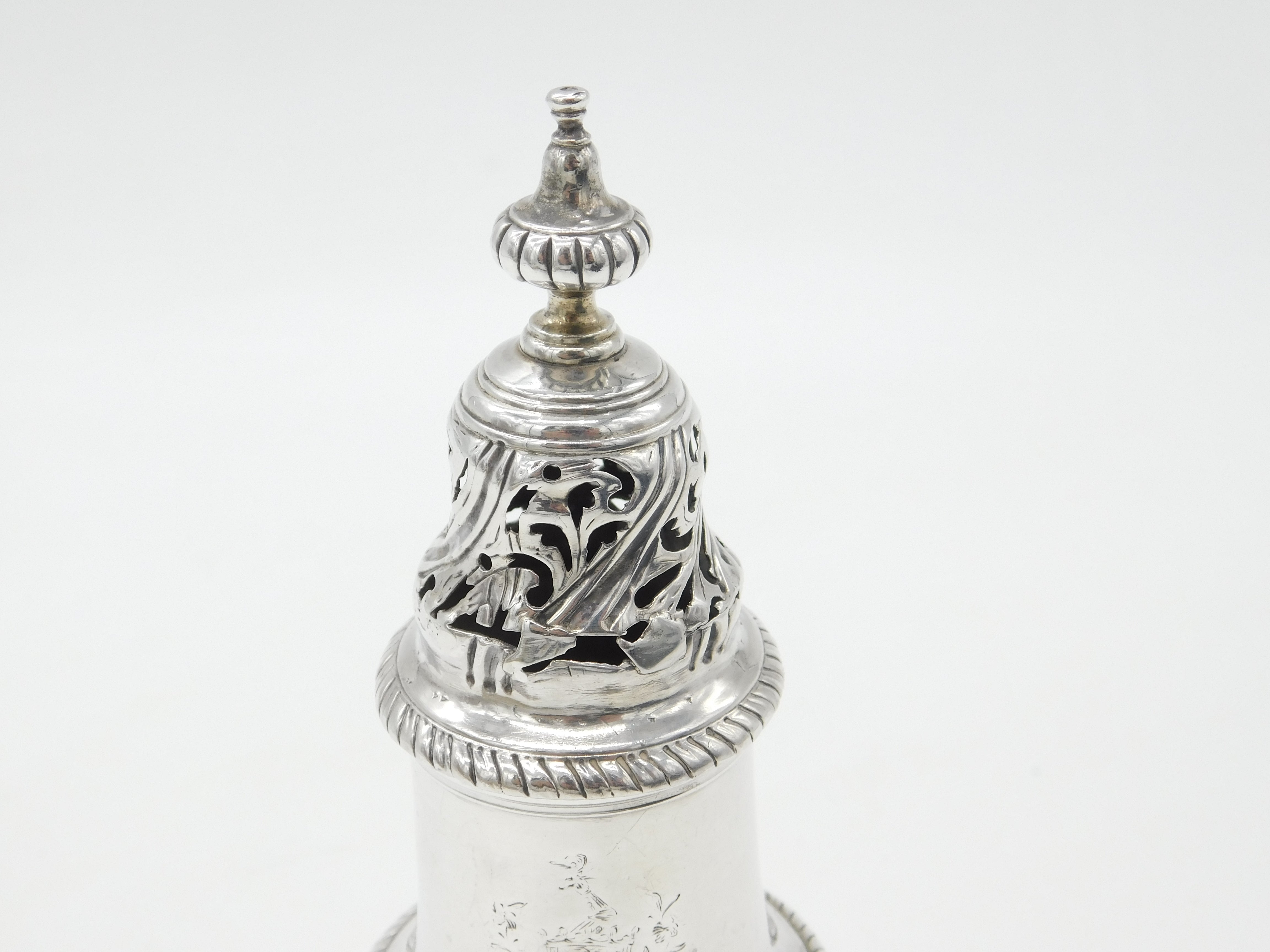 George II Sterling Silver Large Crested Muffineer Sugar Caster 1759 London