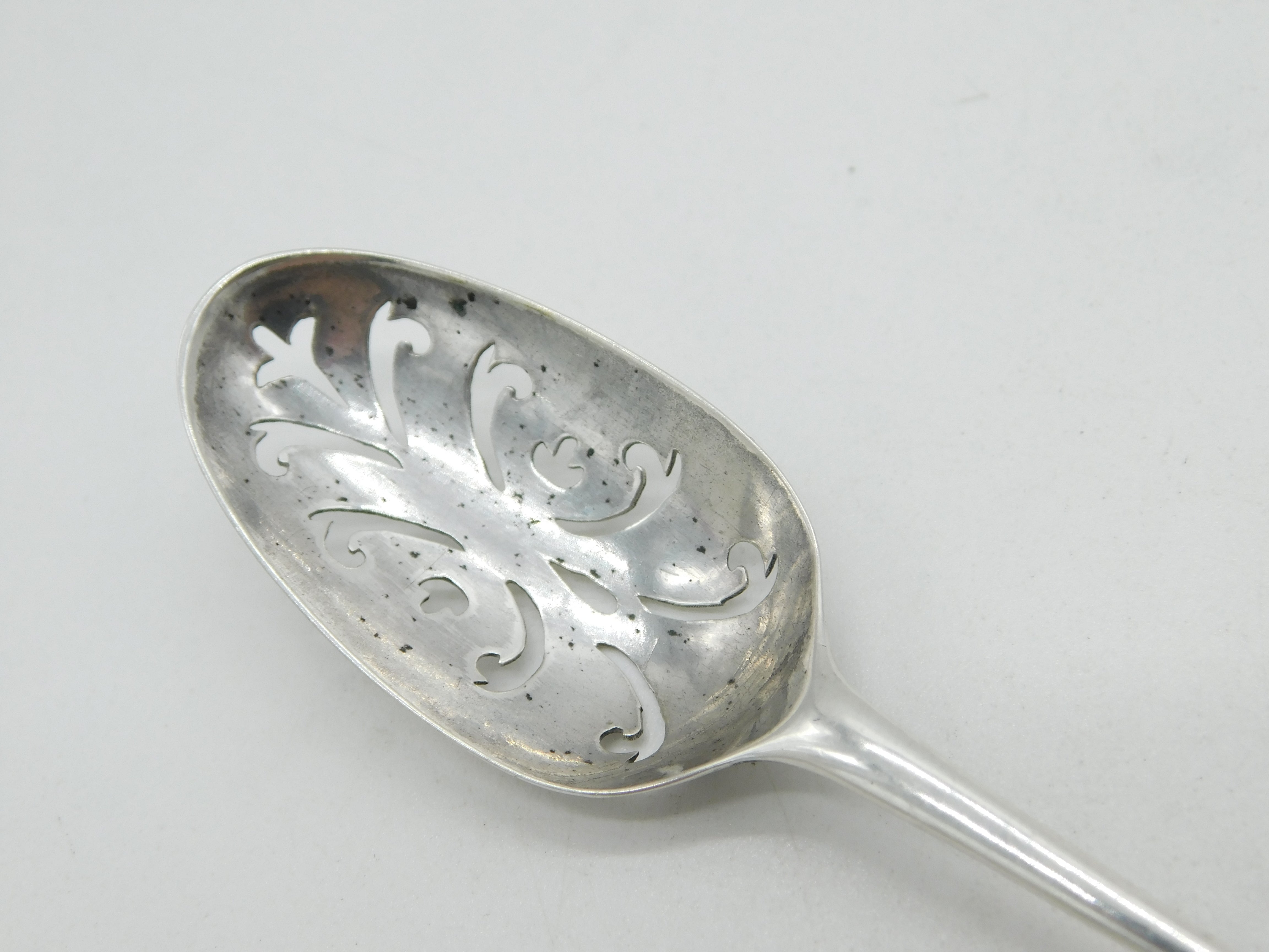 George II Sterling Silver Low-Mark Mote Spoon Antique c1730 Philip Roker II