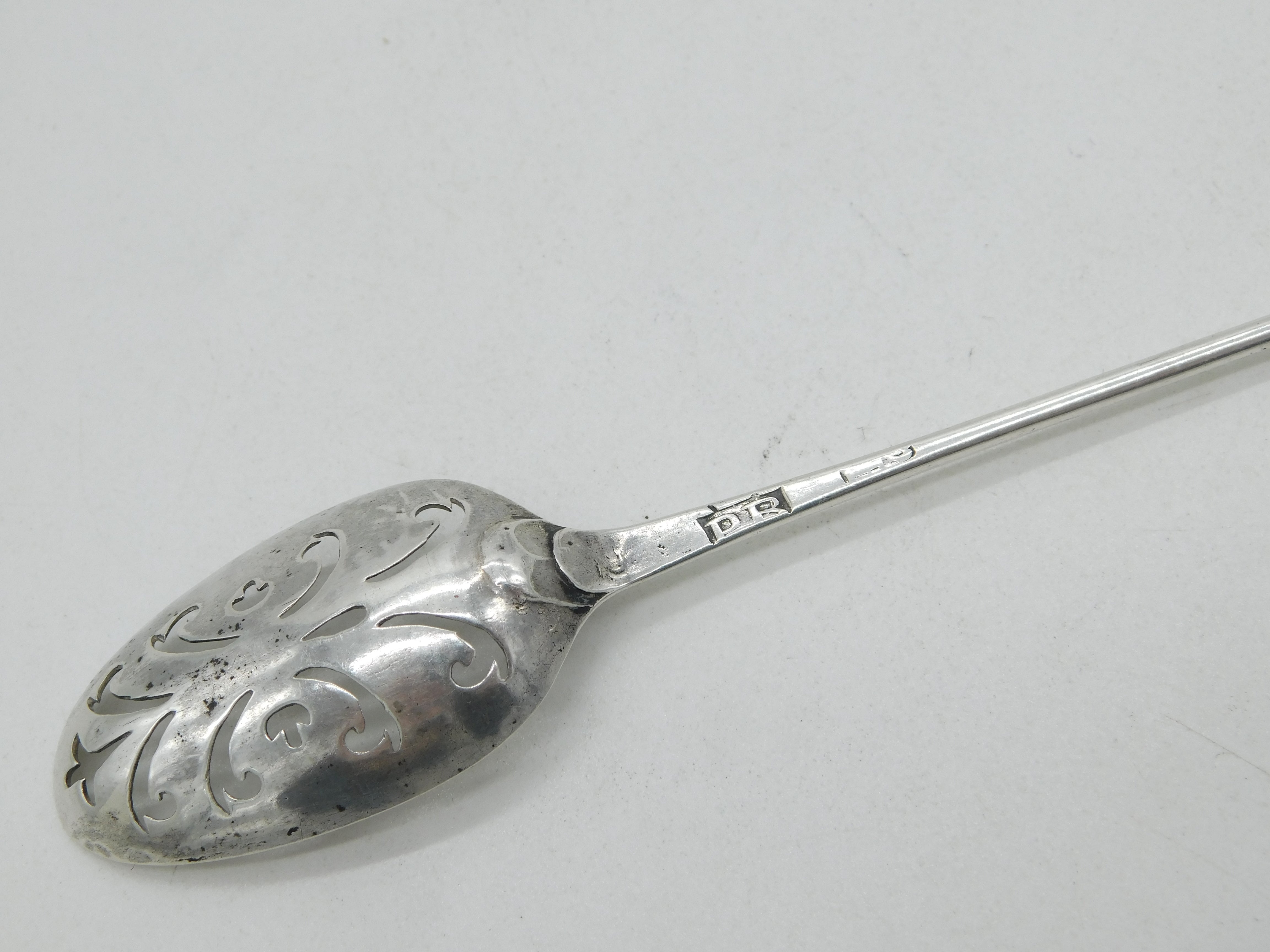 Details: A fantastic and wonderfully designed antique early-georgian sterling silver low-mark ornate mote spoon with lovely clear punch marks for Philip Roker II, c1730. This is a wonderful item that would make a perfect gift or addition to any collection. We are more than happy to provide XRF reports for items upon request.