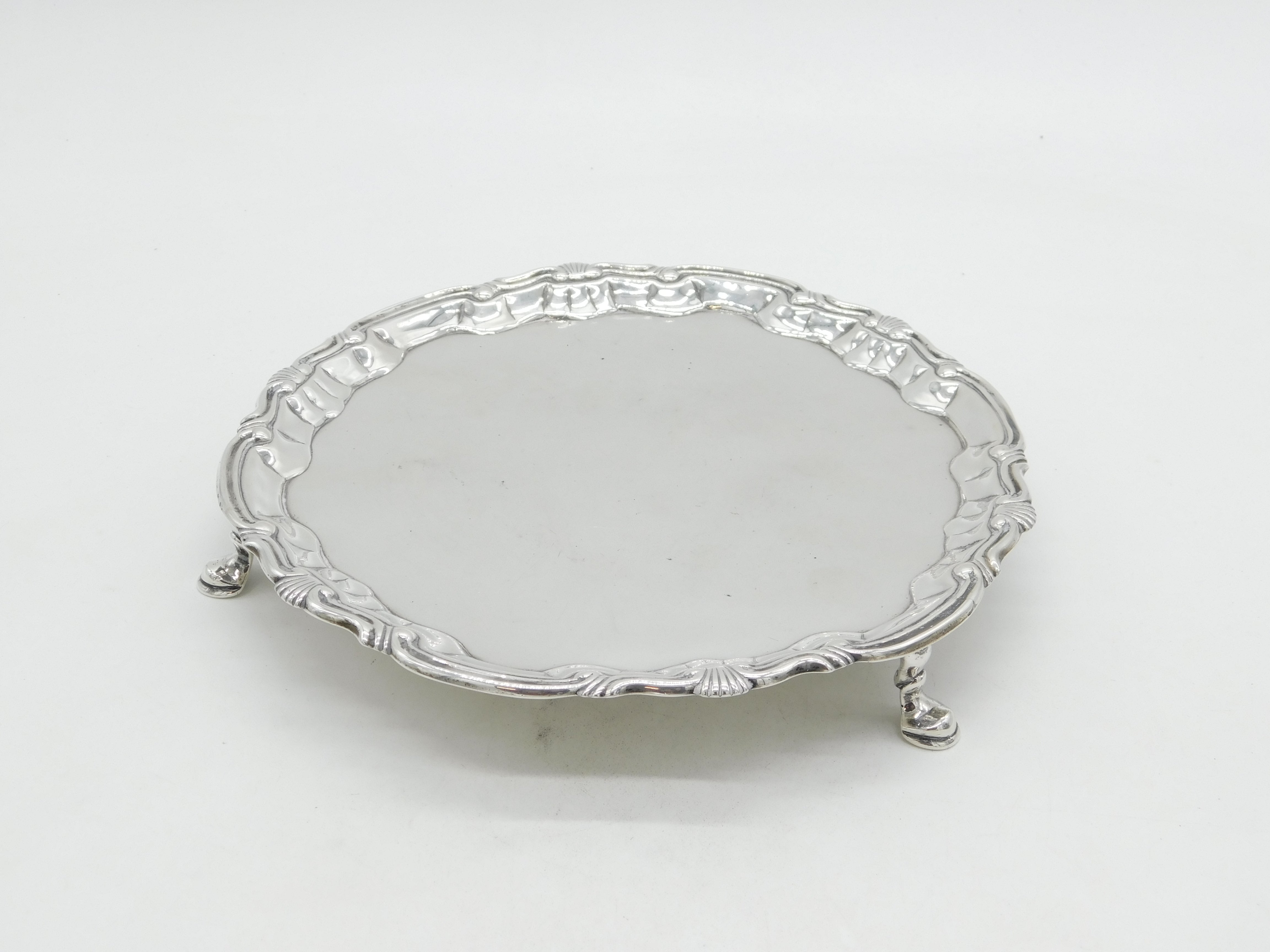 Details: A fantastic and wonderfully designed antique early-Georgian sterling silver shell pattern salver dish with charming detailing hallmarked London 1755 by William Peaston. This is a wonderful item that would make a perfect gift or addition to any collection.