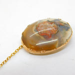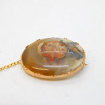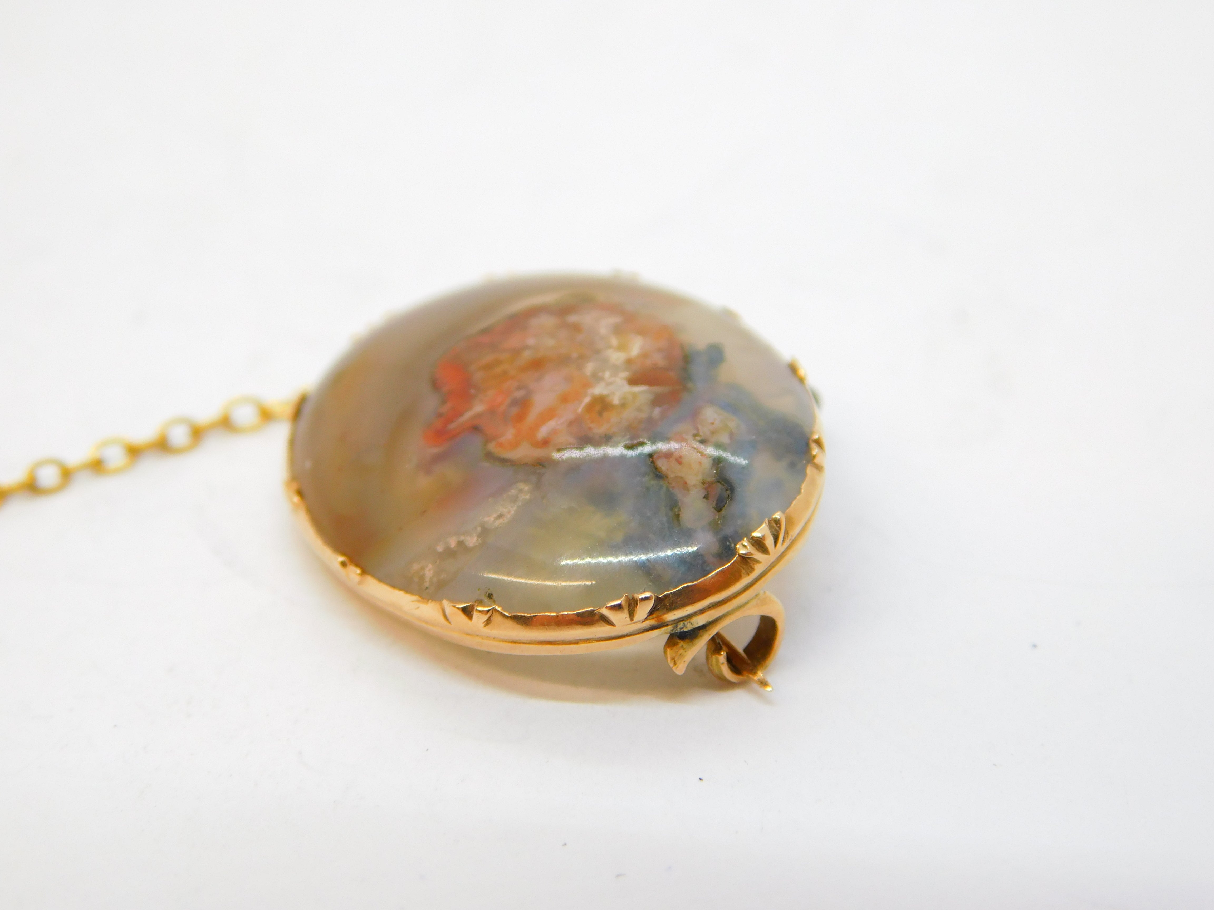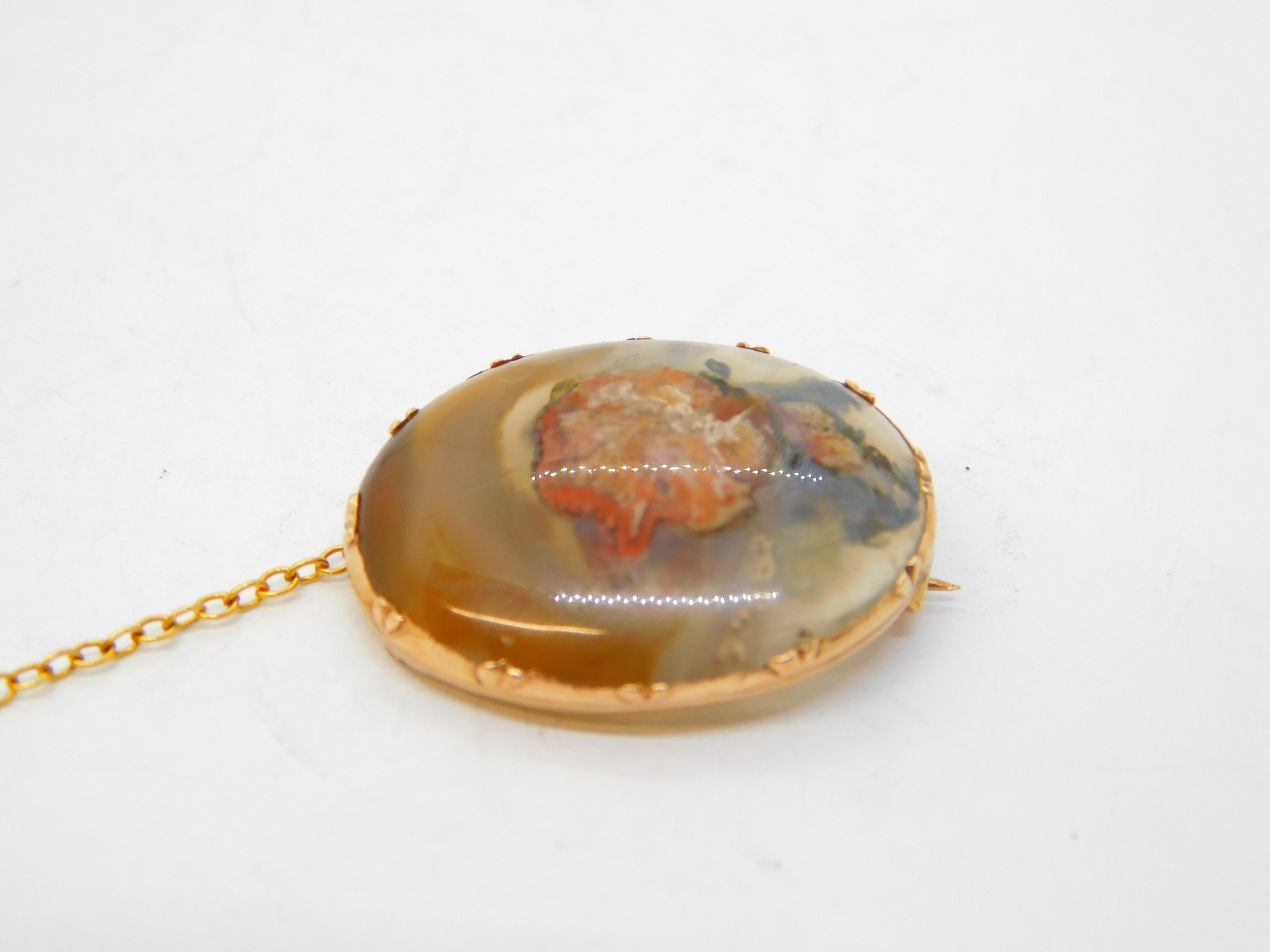 George III 14ct Rose Gold Mounted Polished Moss Agate Brooch Antique c1820