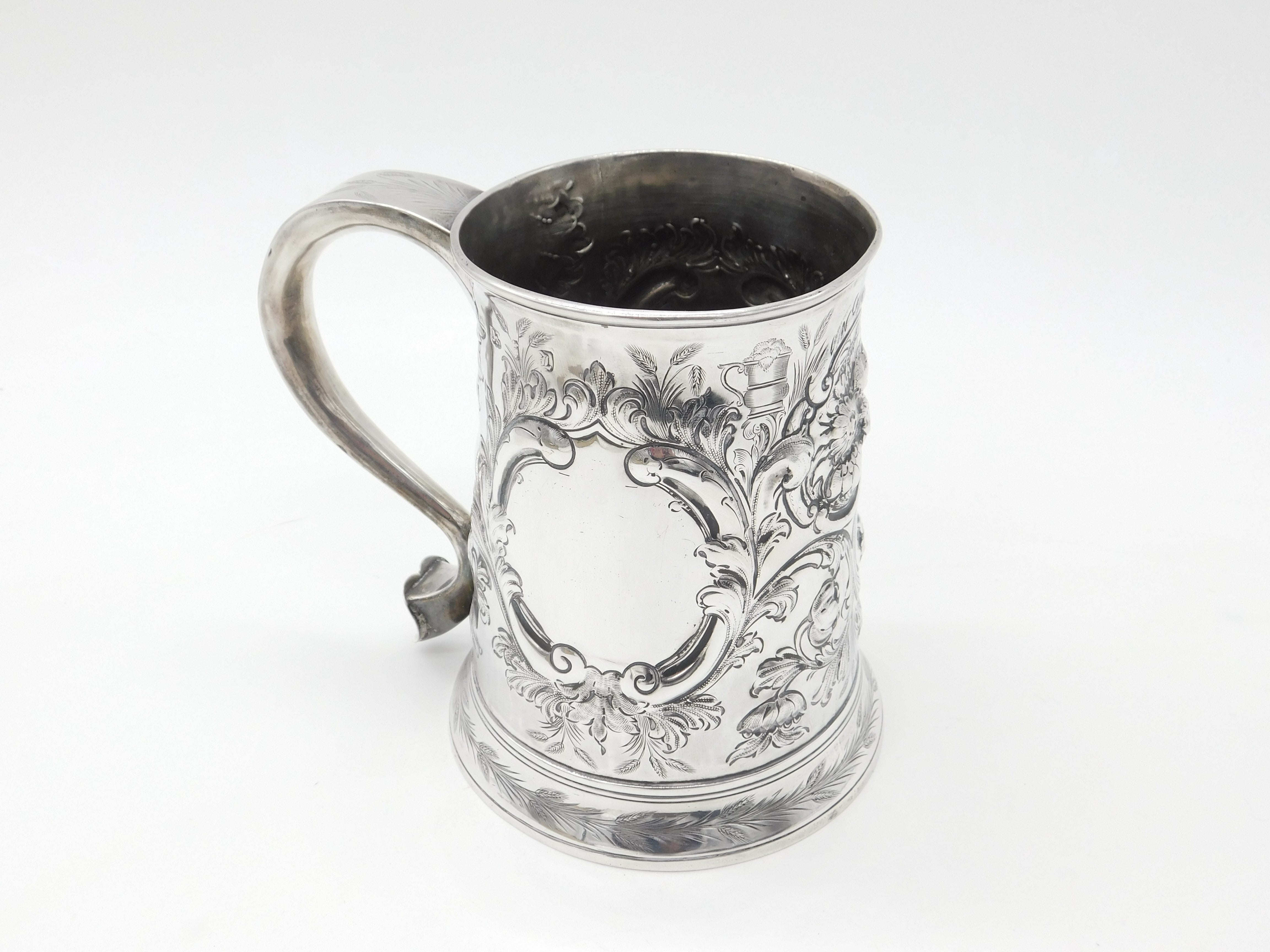 George III Large Sterling Silver Floral Quart Tankard 1766 London John Moore