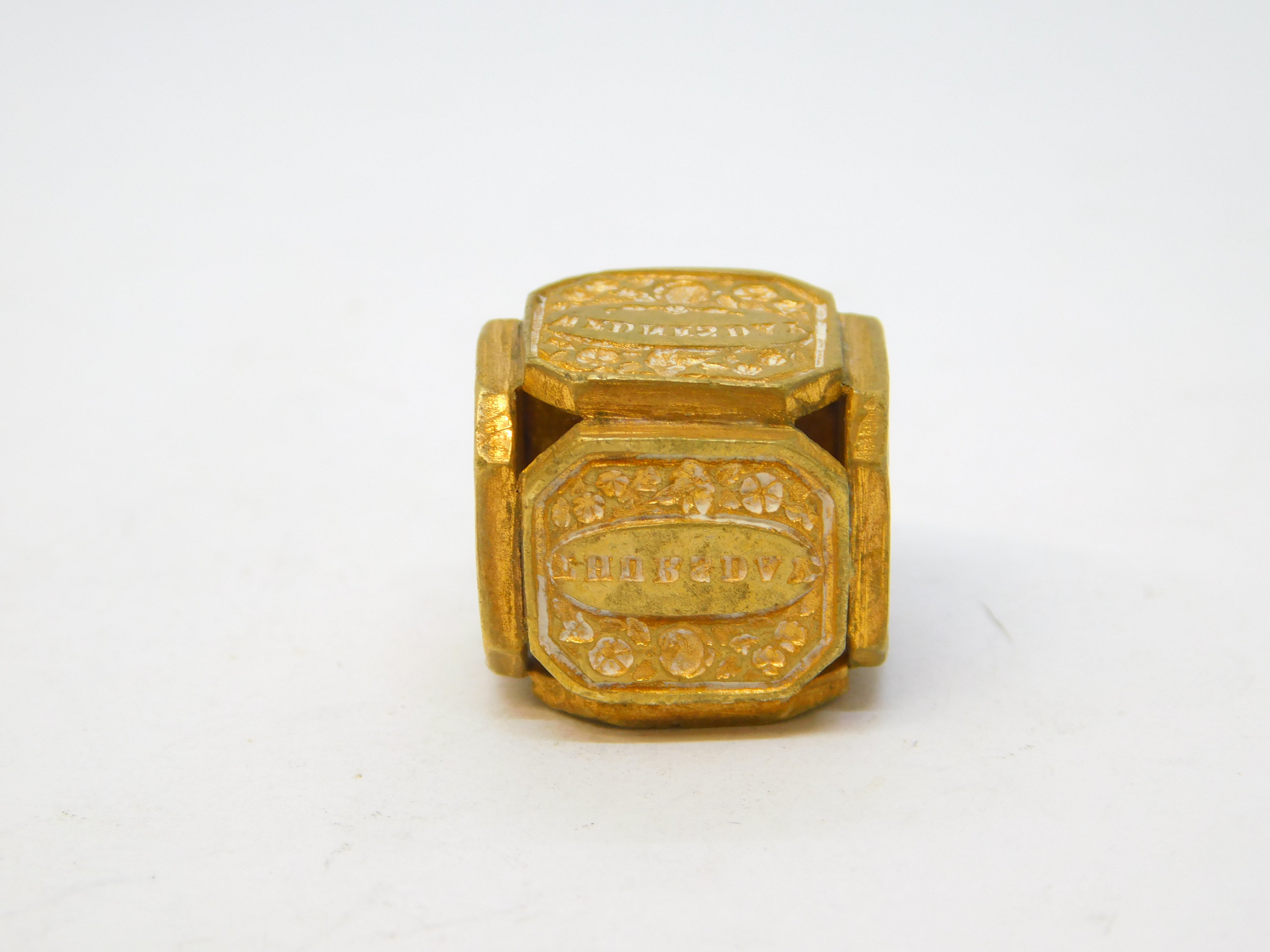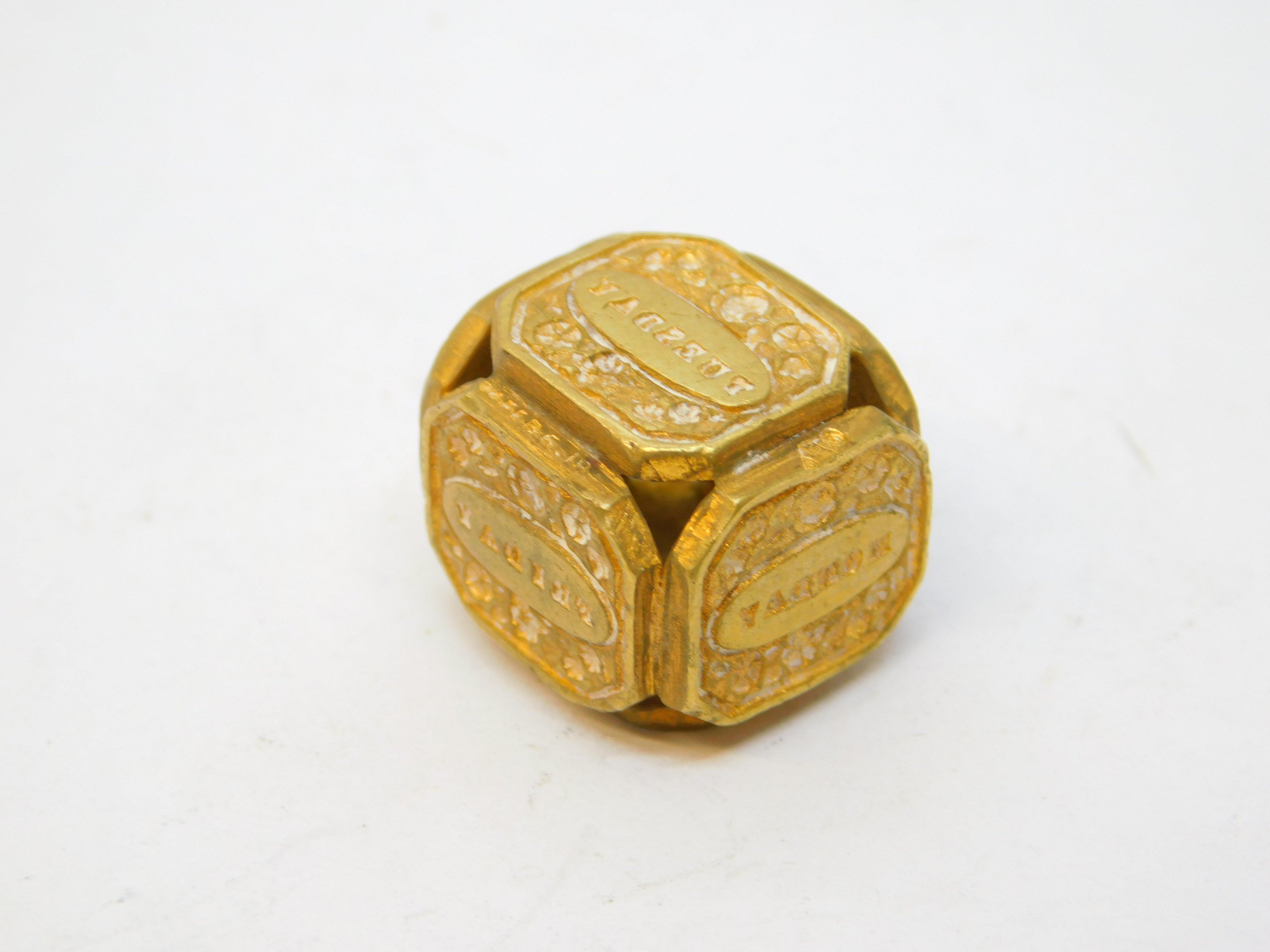 George III Ornate Gilt Metal Six-Sided Days of the Week Dice Antique c1820