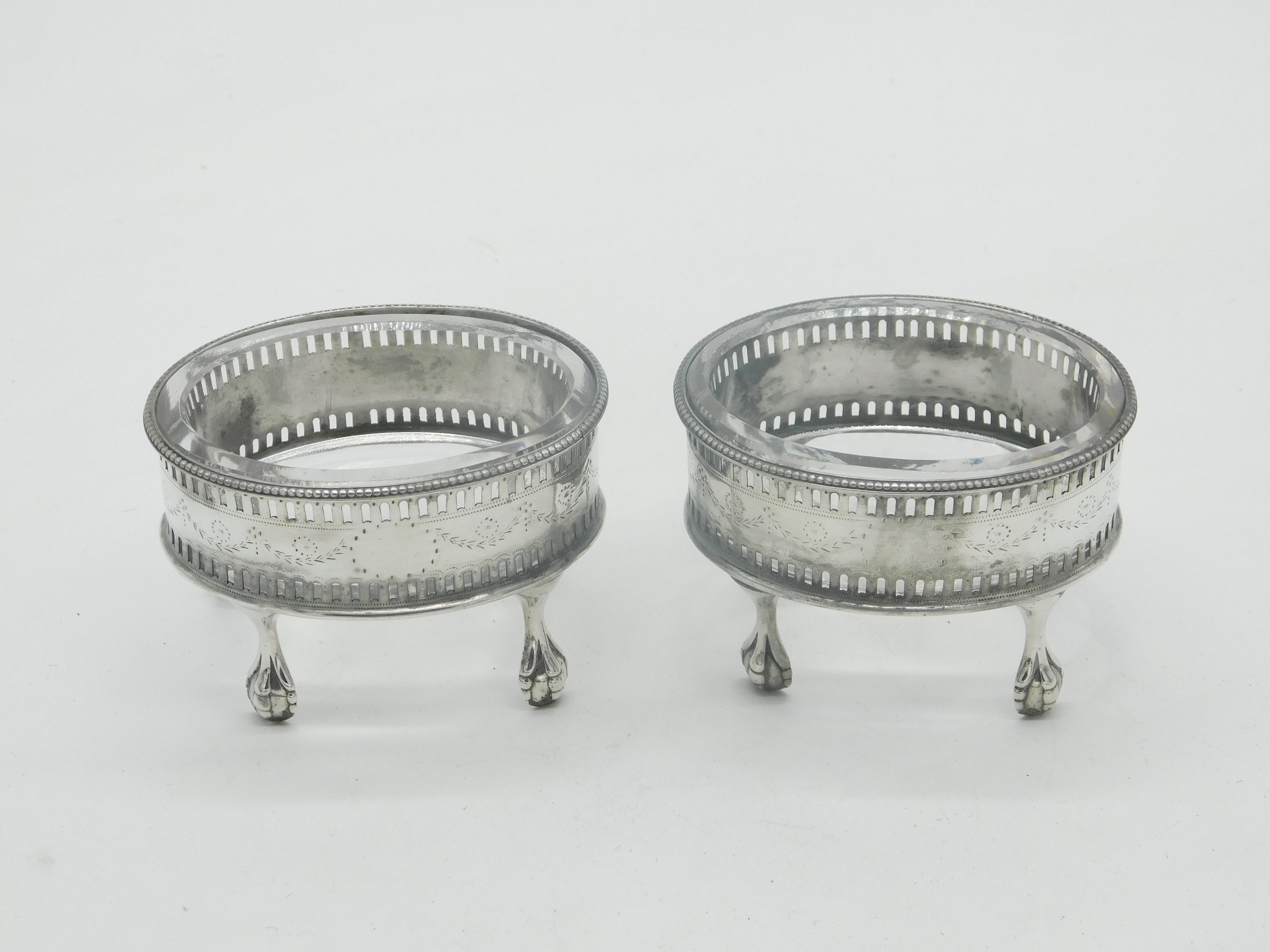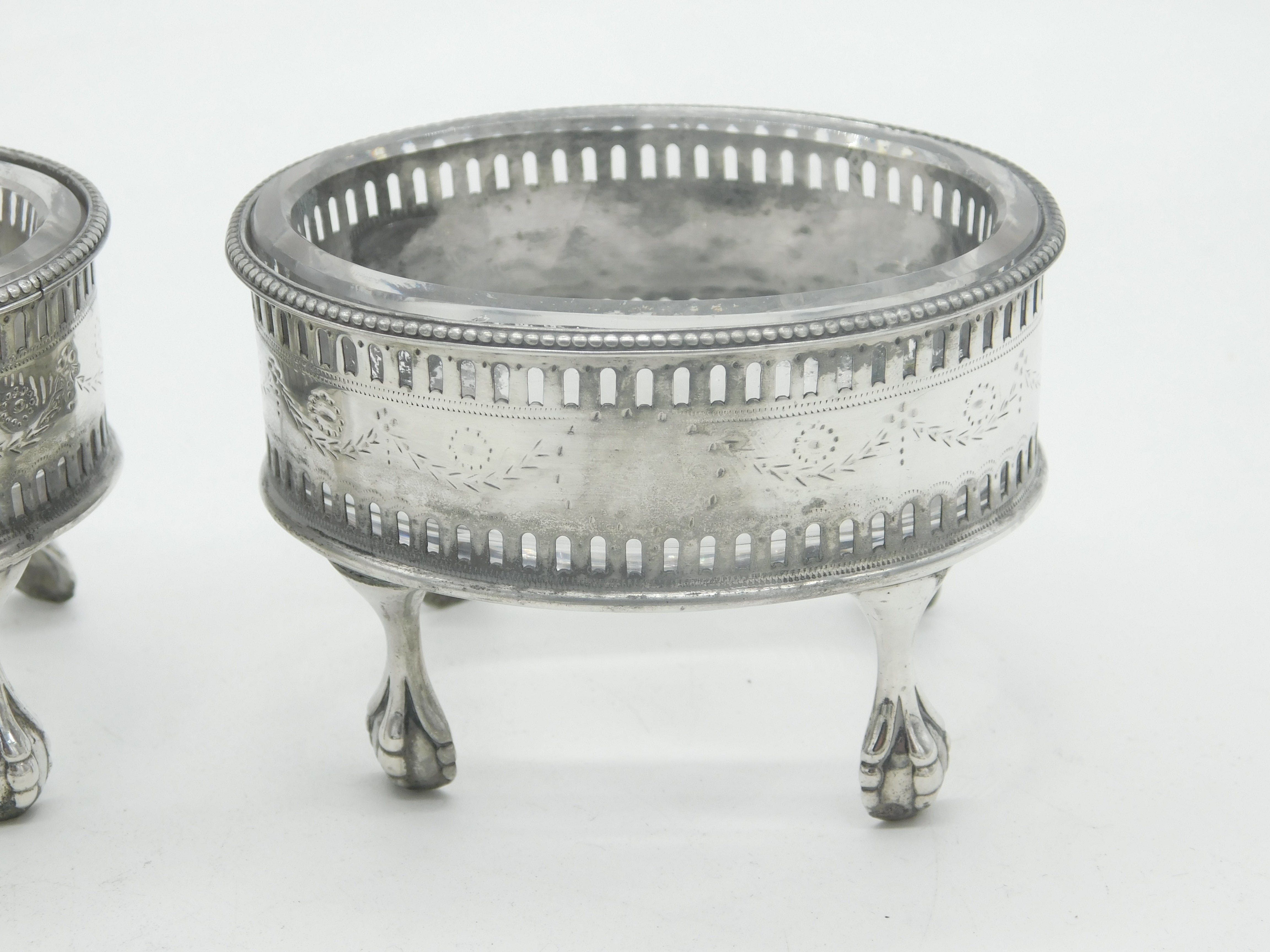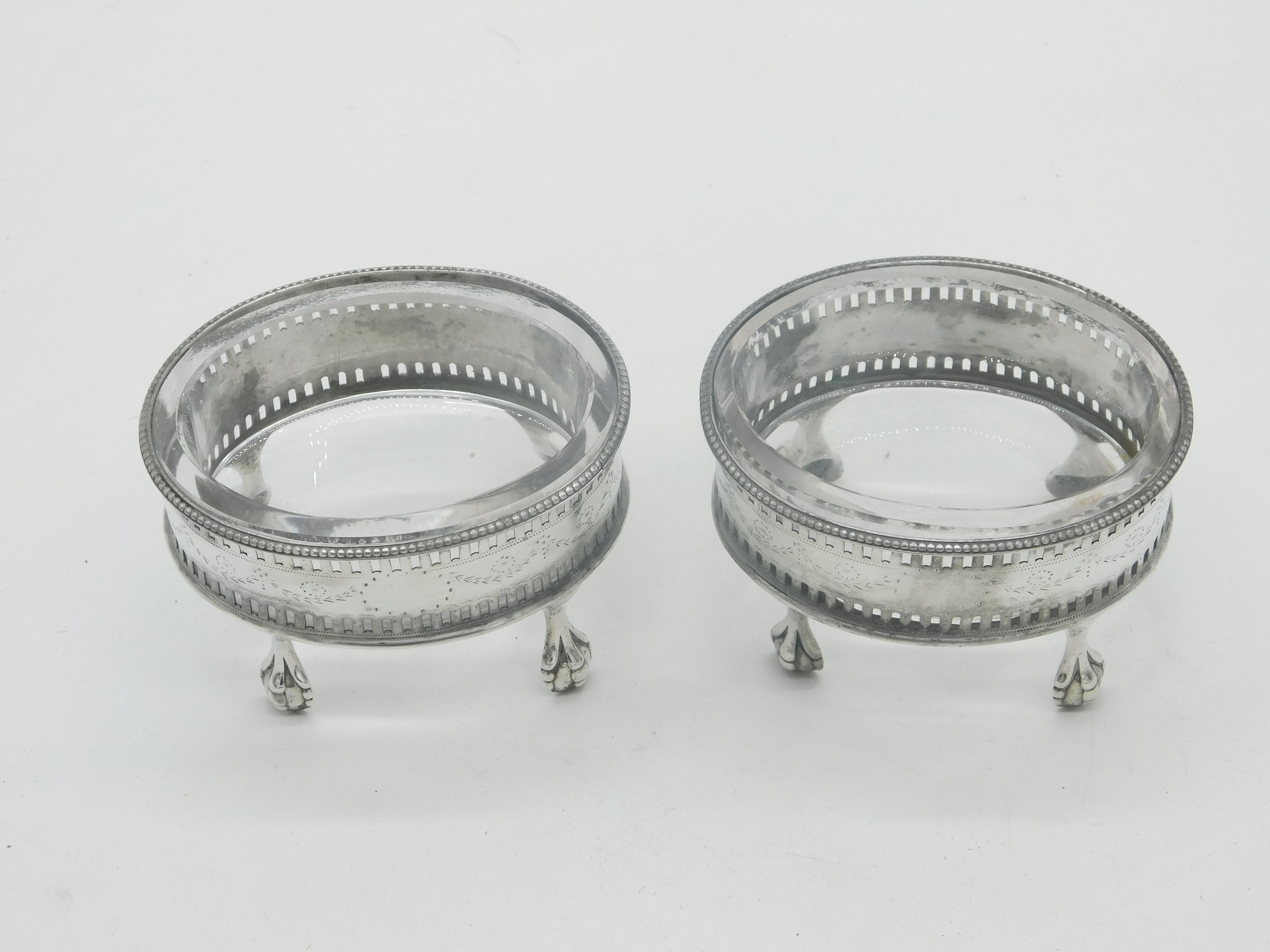 George III Pair Sterling Silver Paw Foot Foral Salt Cellars Antique 1786 London