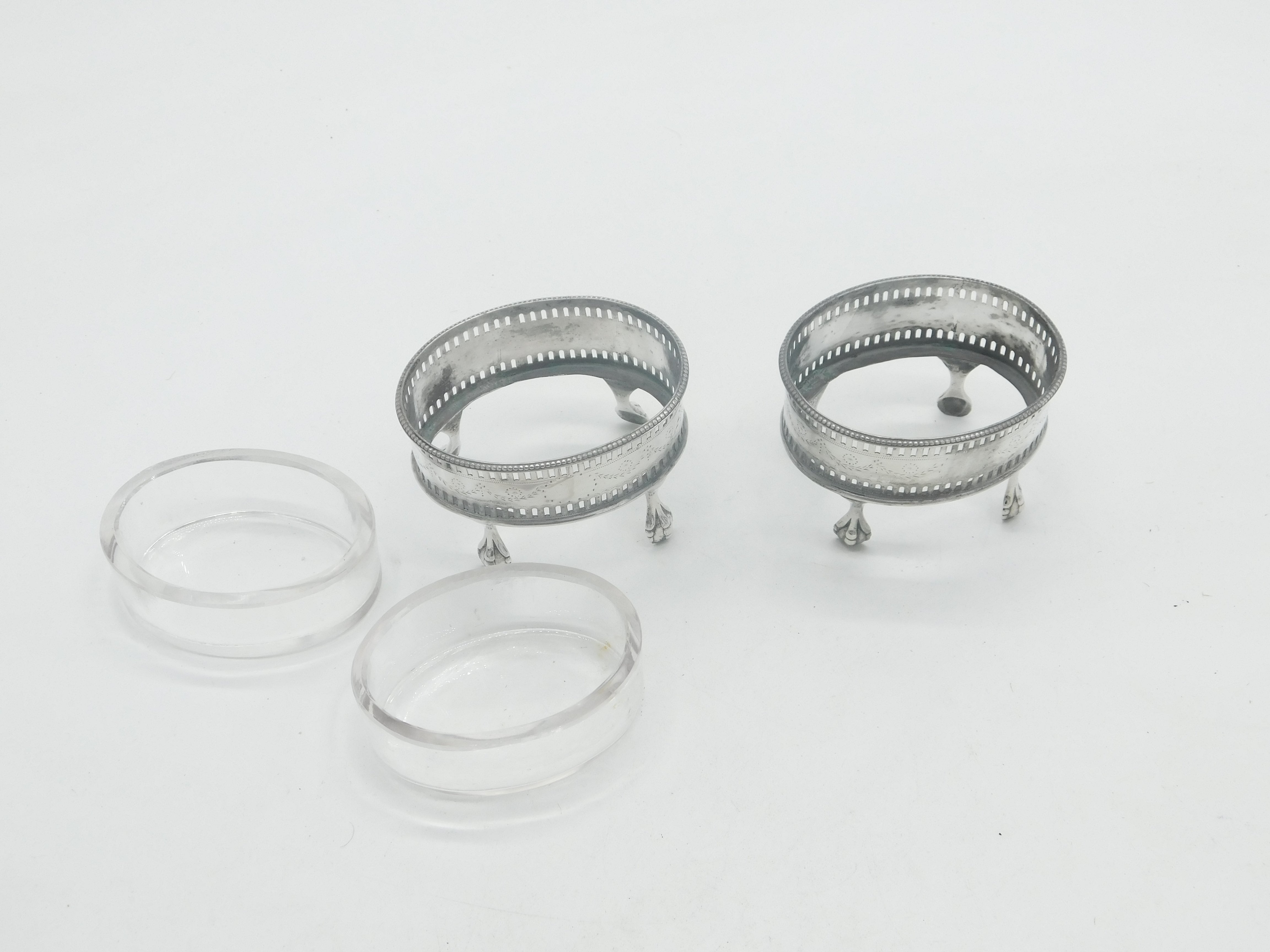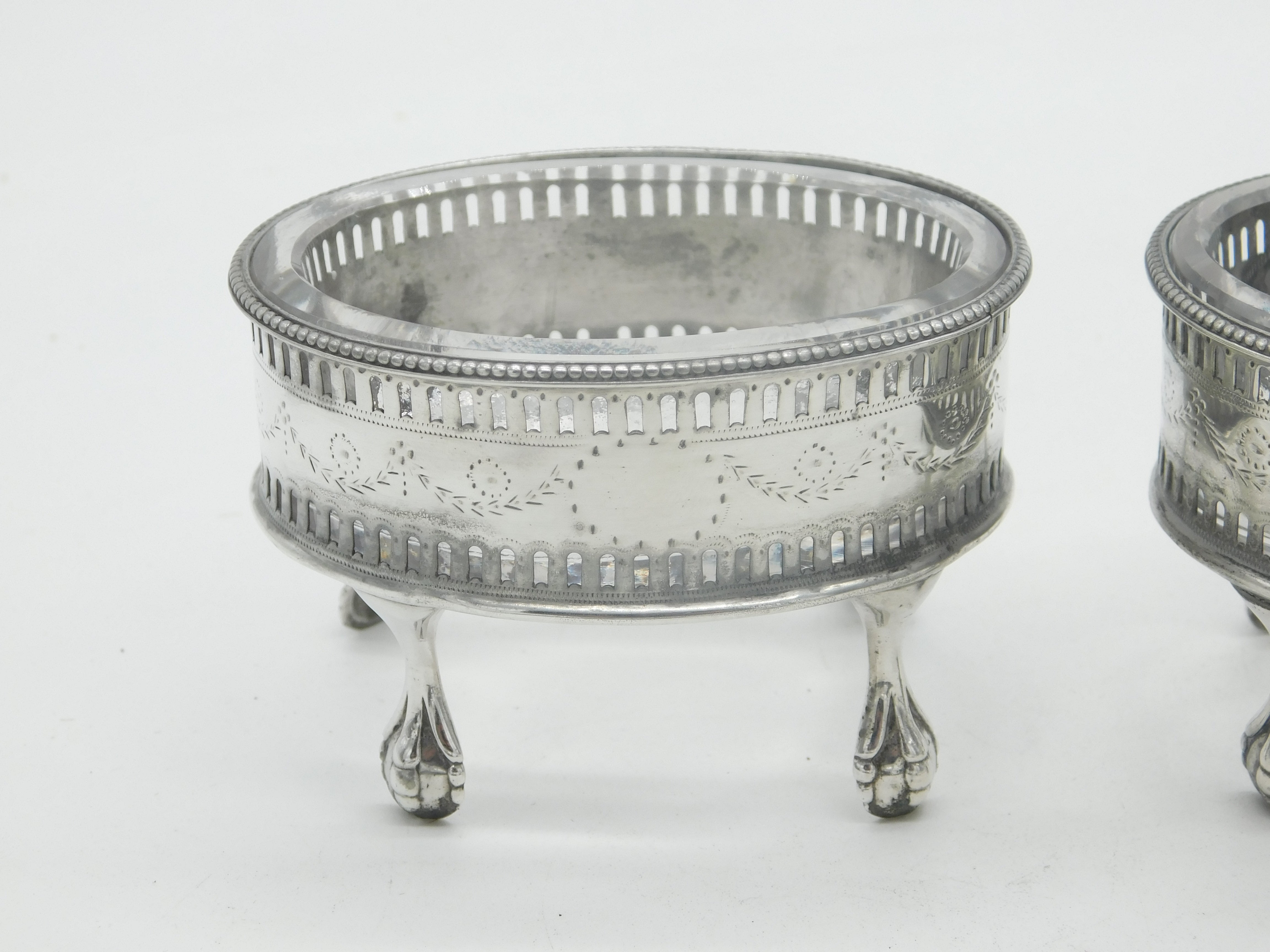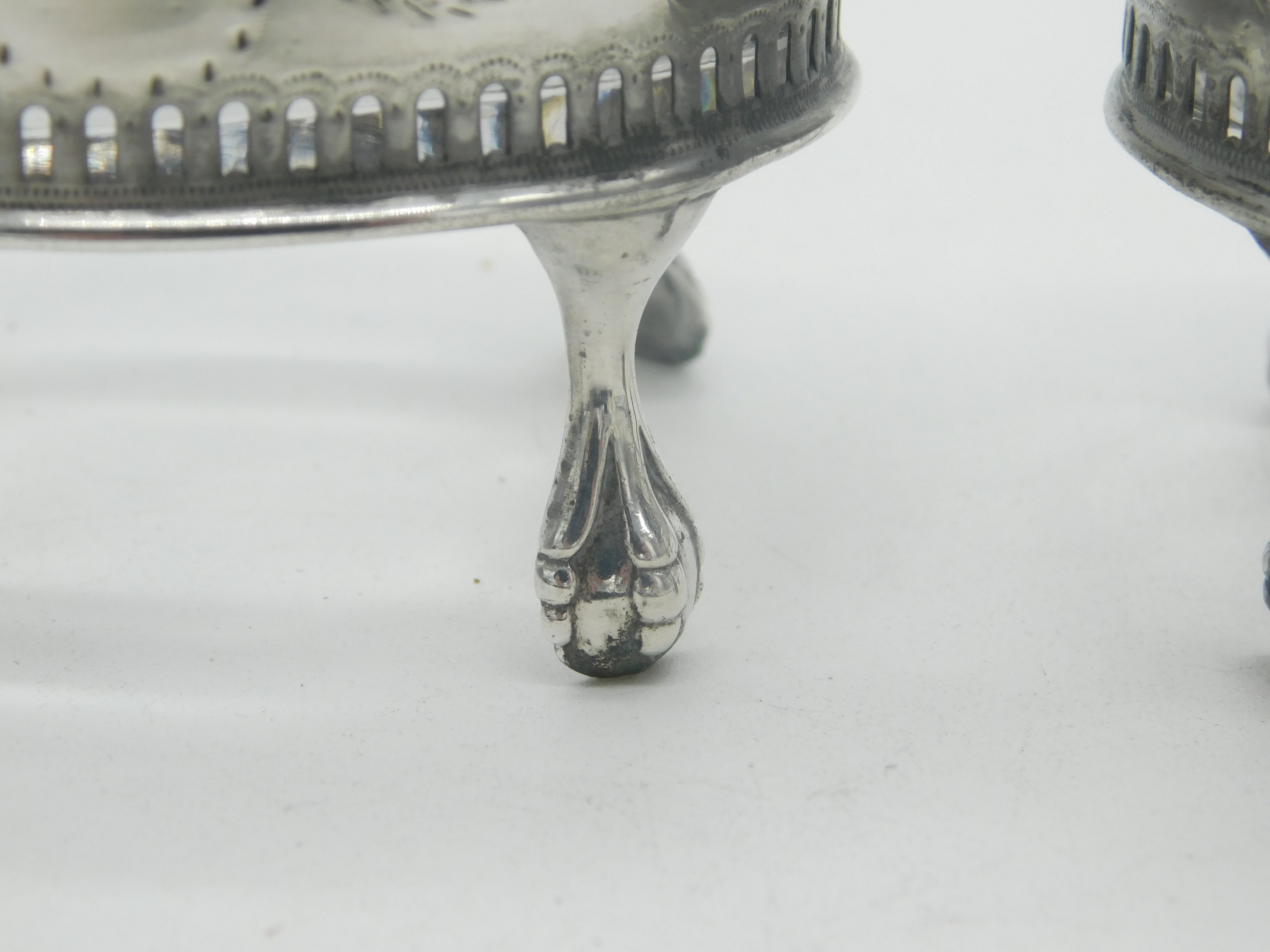 George III Pair Sterling Silver Paw Foot Foral Salt Cellars Antique 1786 London