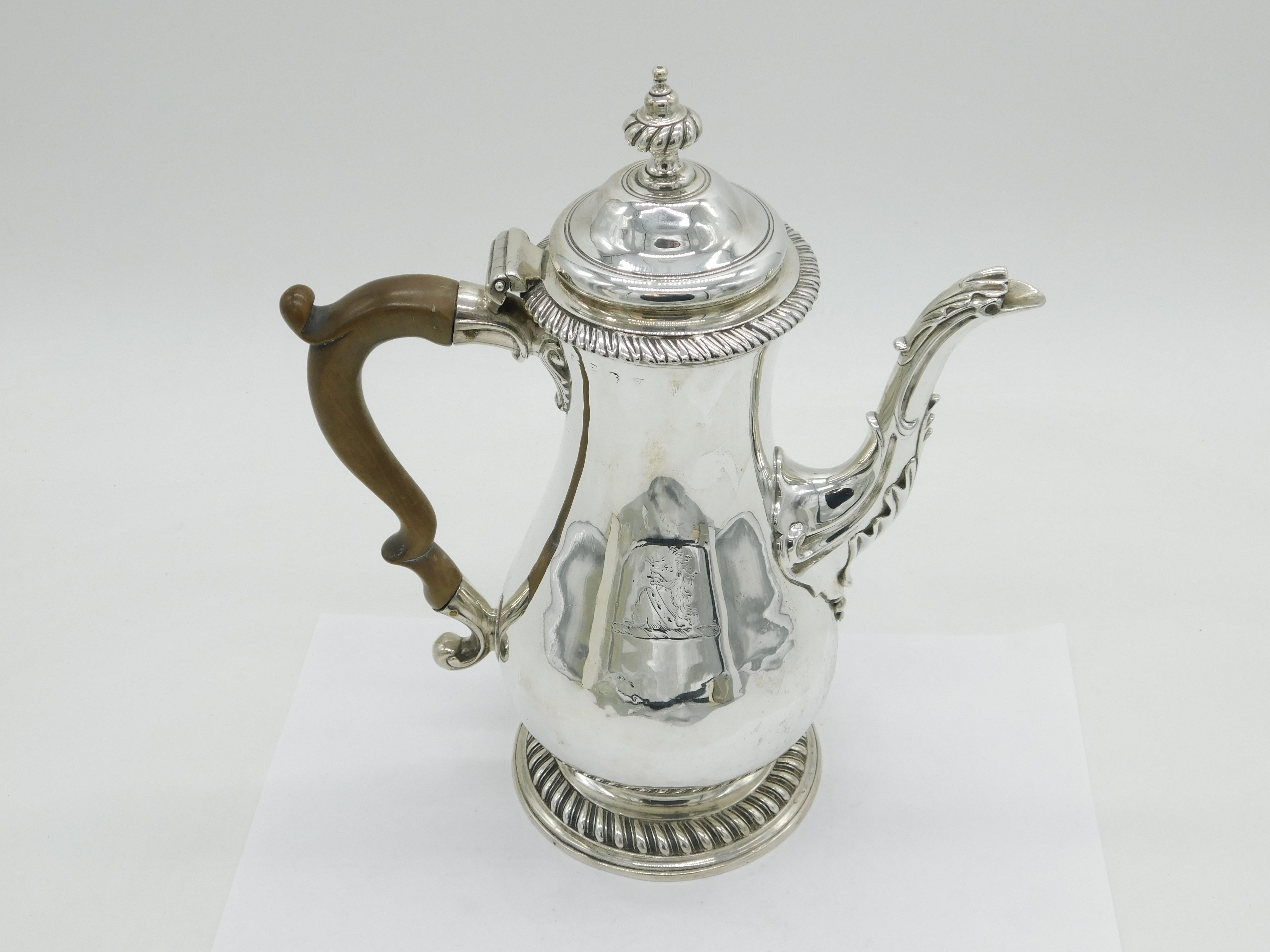 George III Sterling Silver Baluster Coffee Pot Lion Crest Antique 1764 London