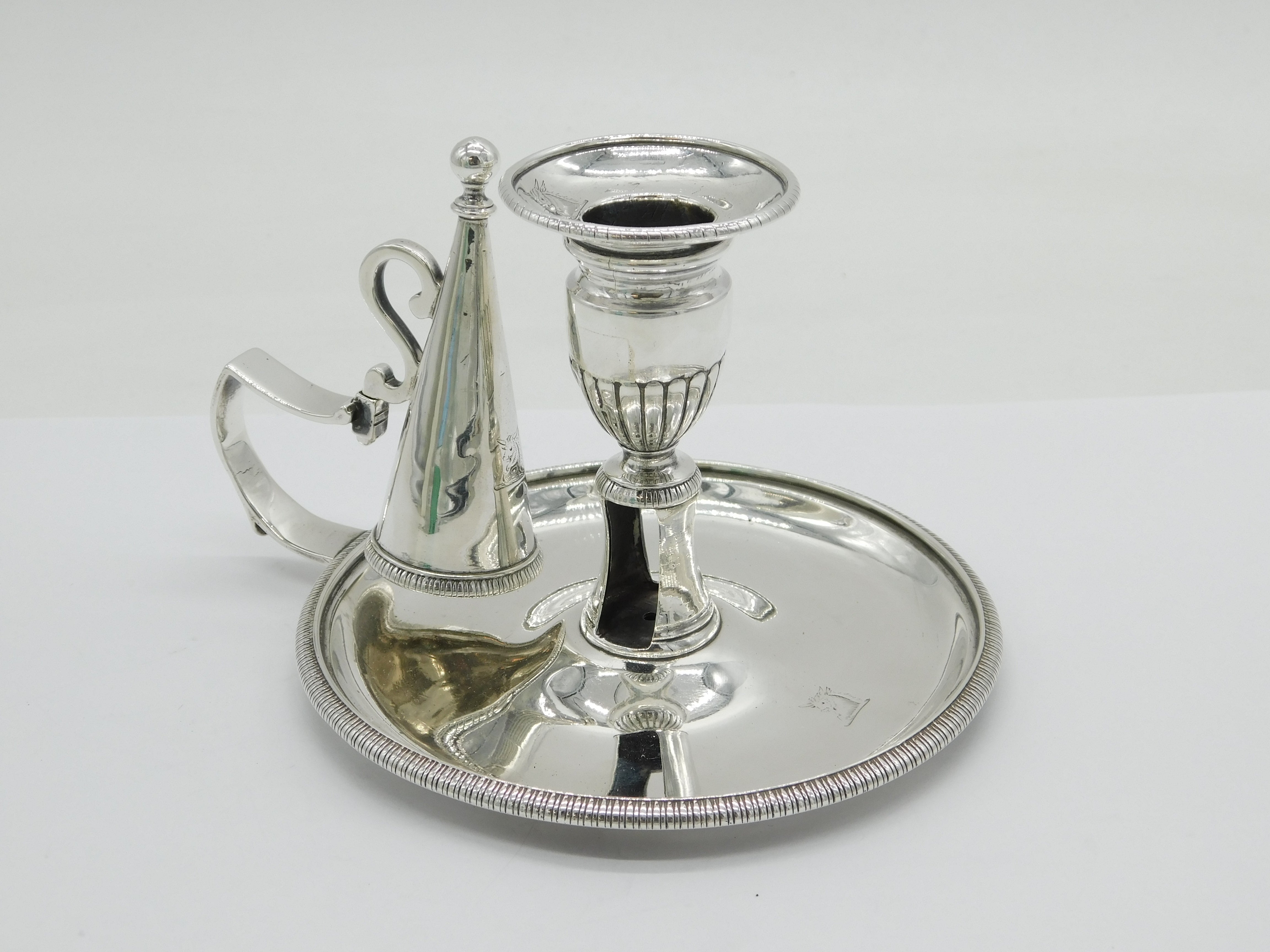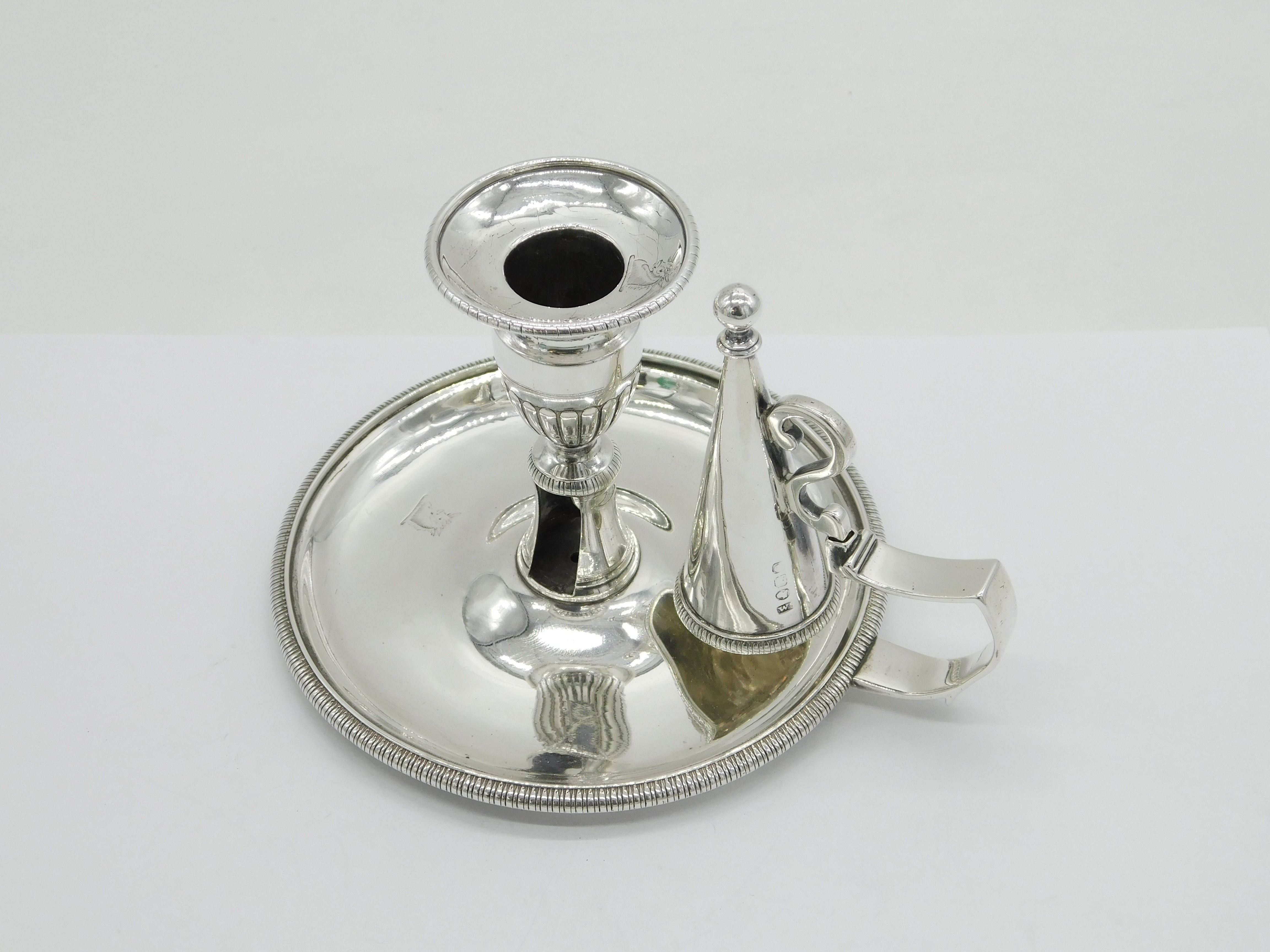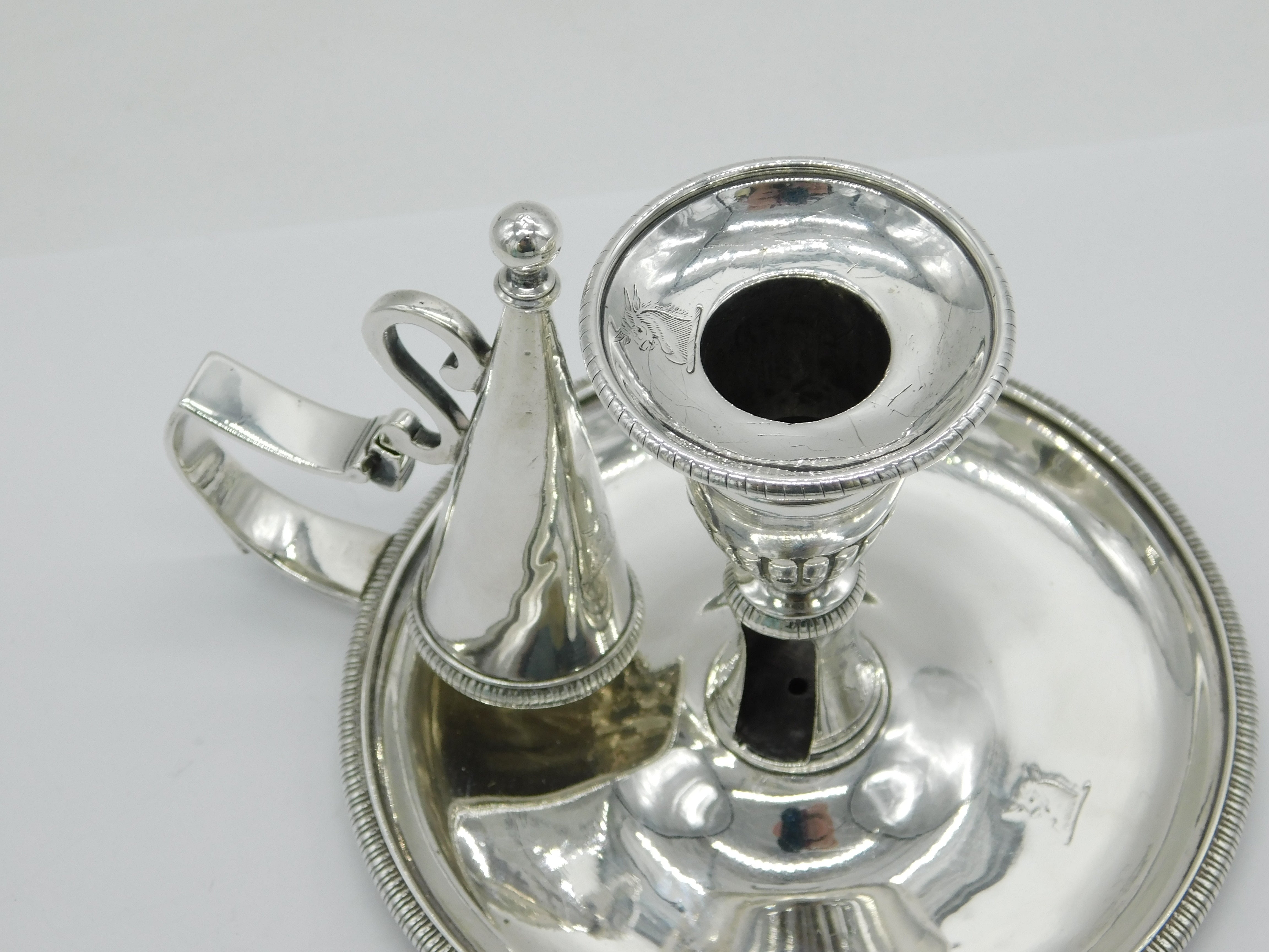 George III Sterling Silver Crested Candle Chamberstick Antique 1816 London