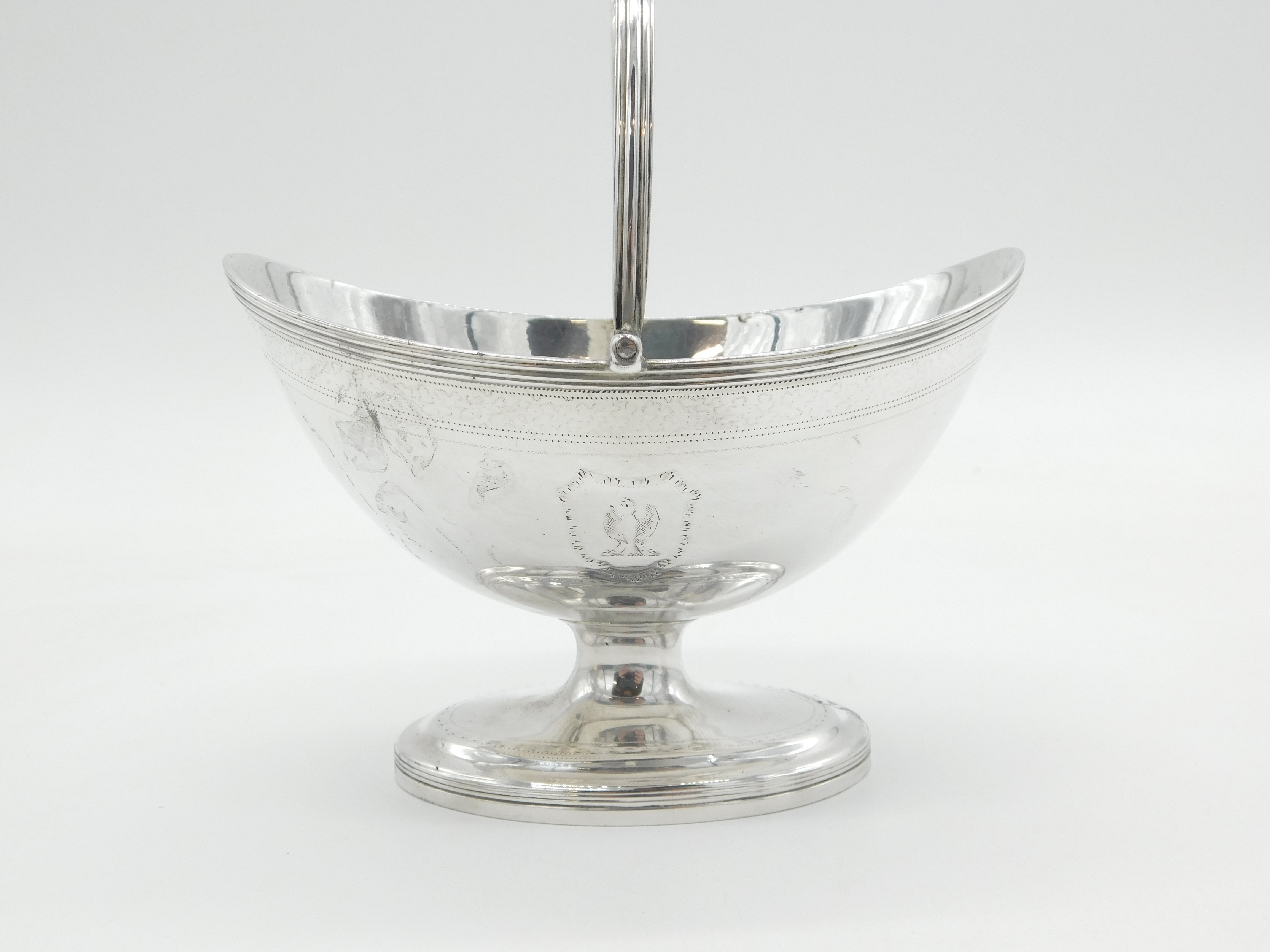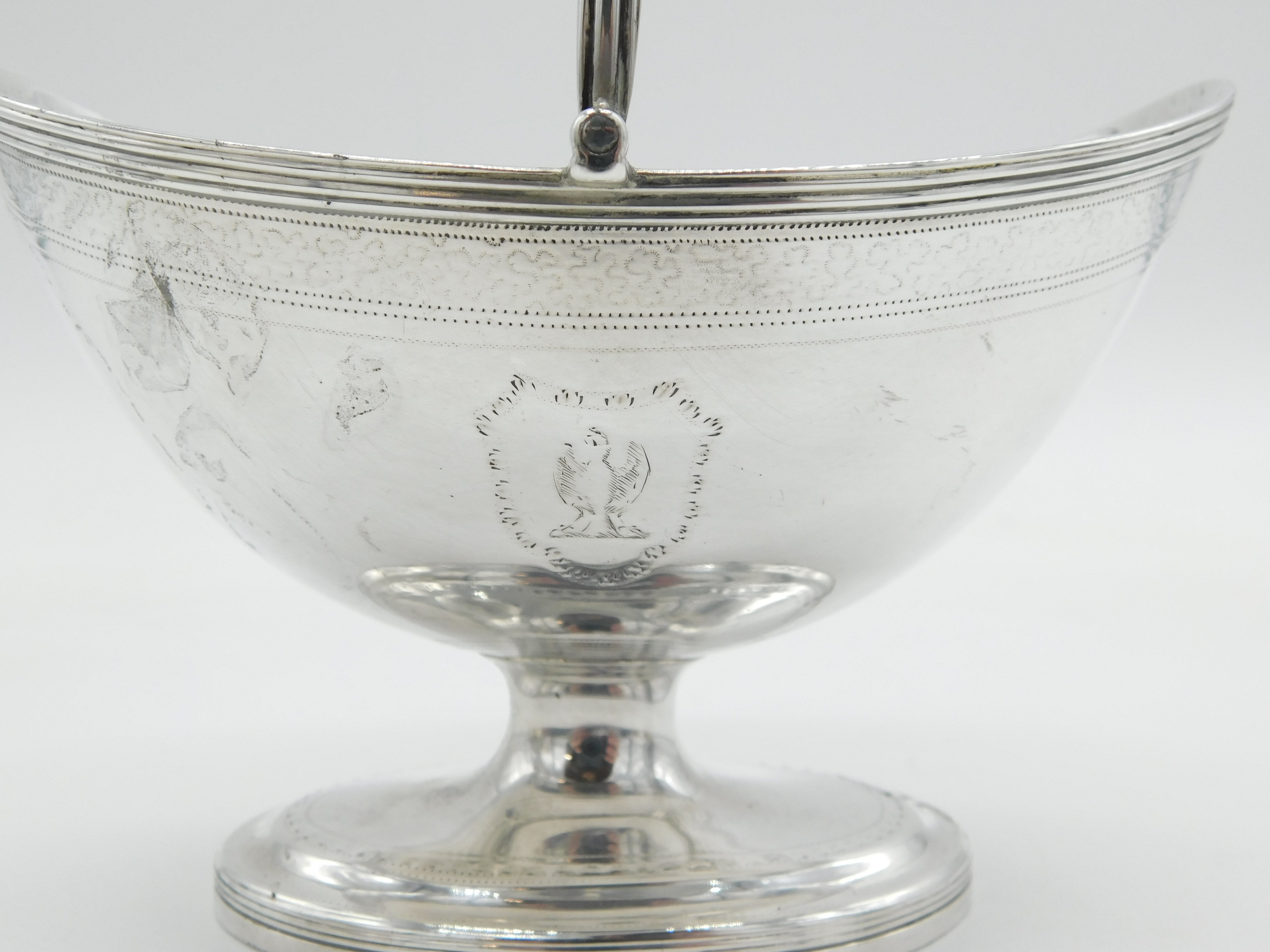 George III Sterling Silver Crested Swing Handle Sugar Basket Antique 1791 London