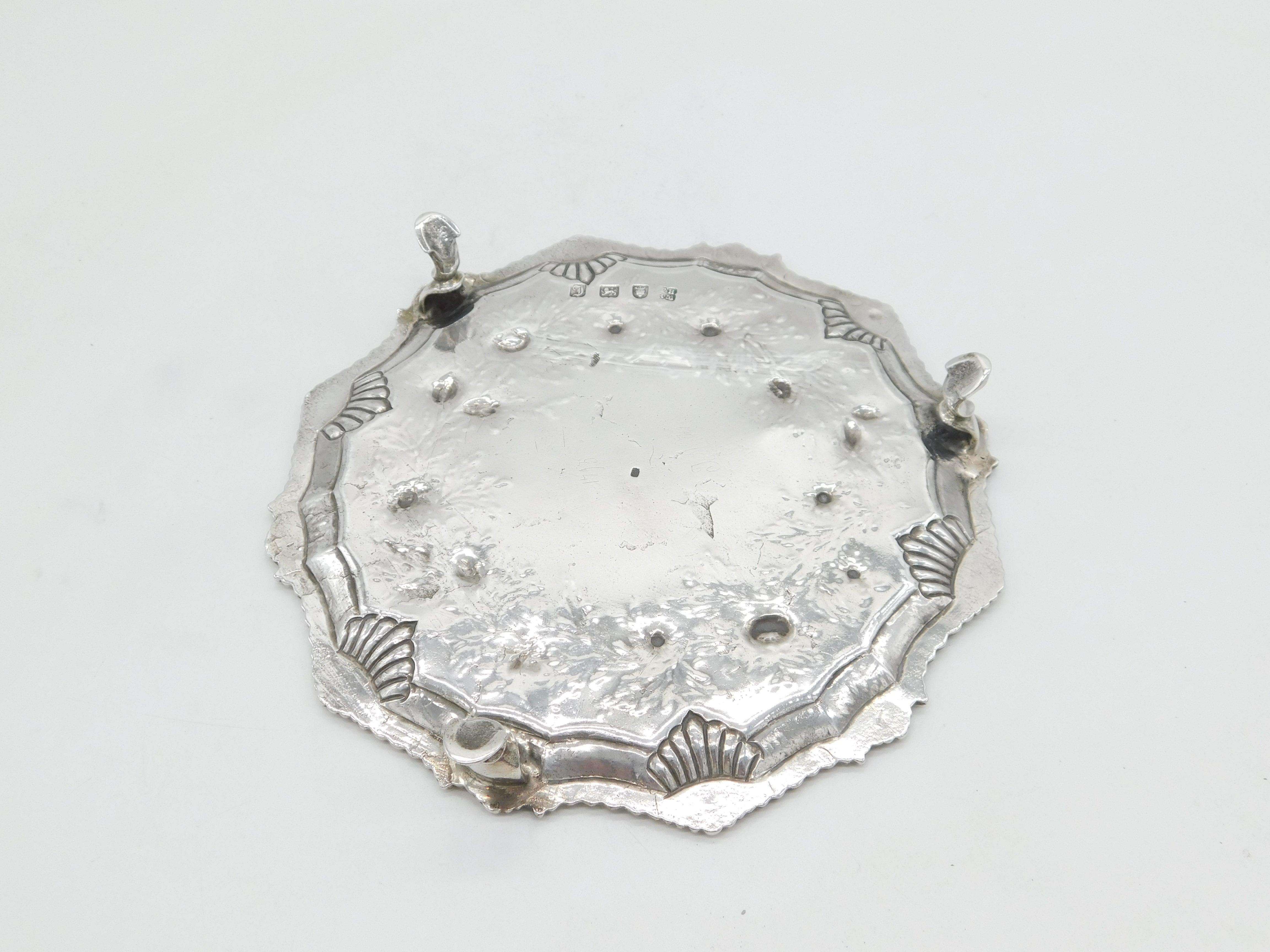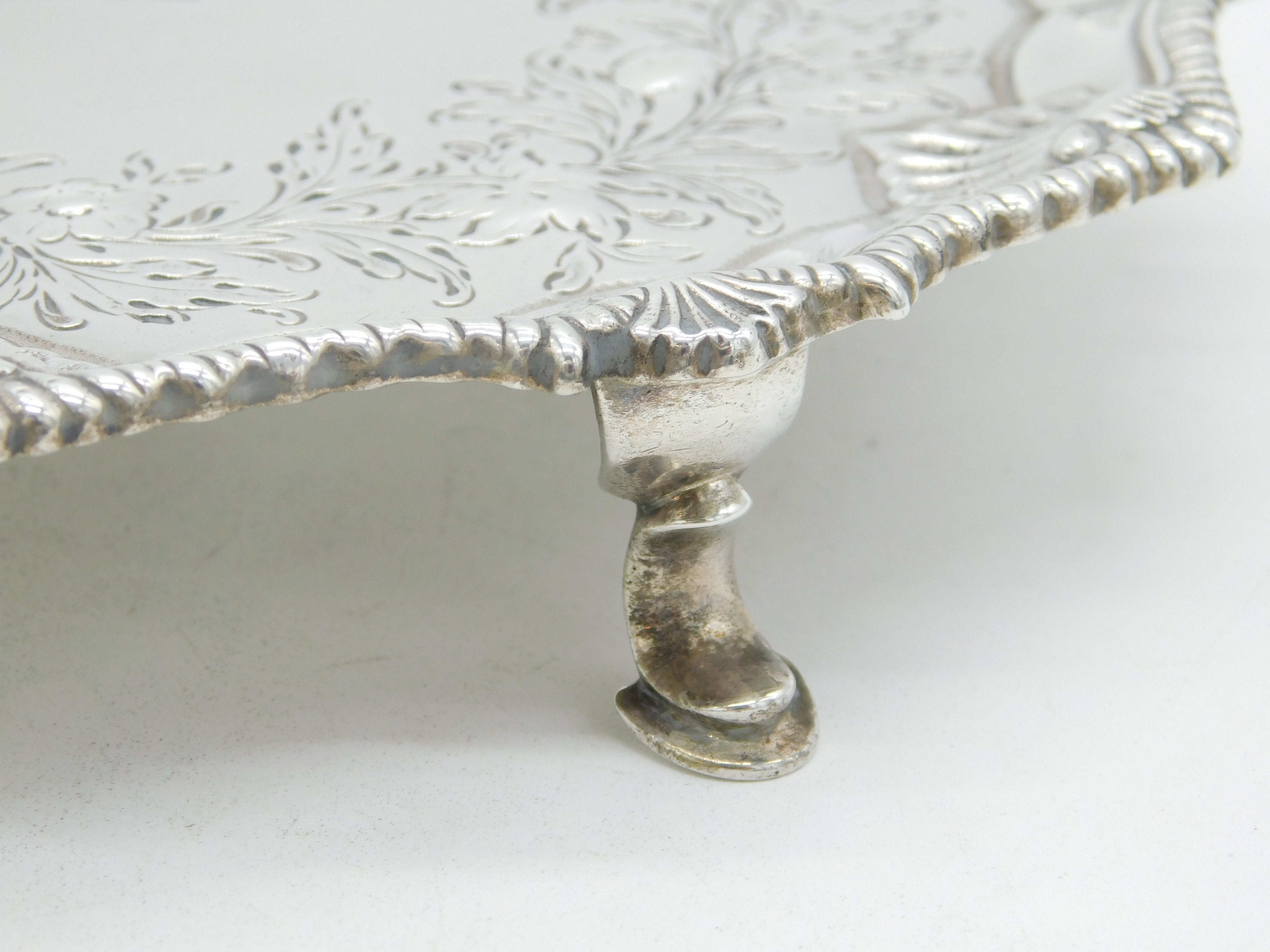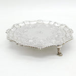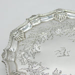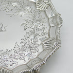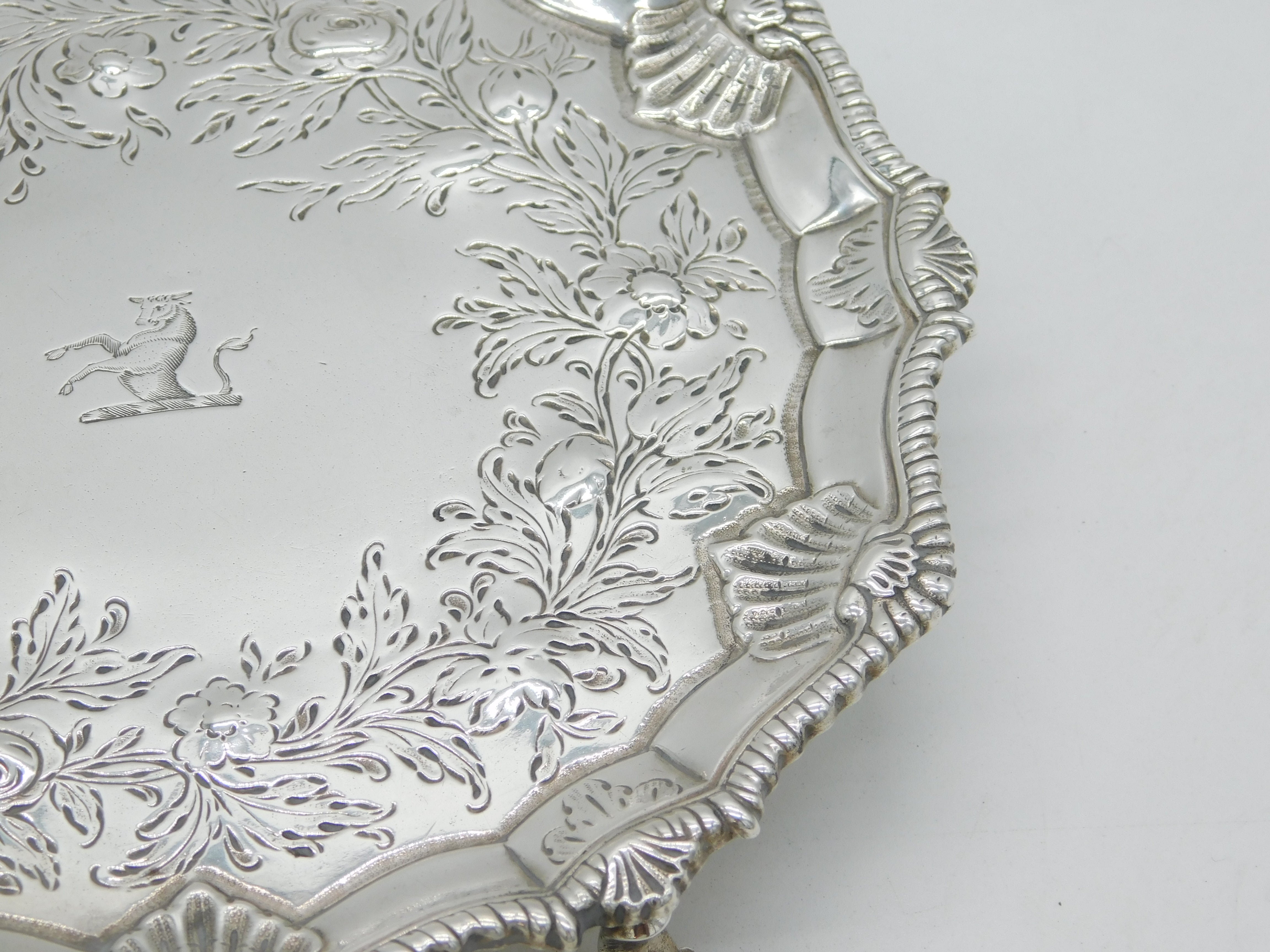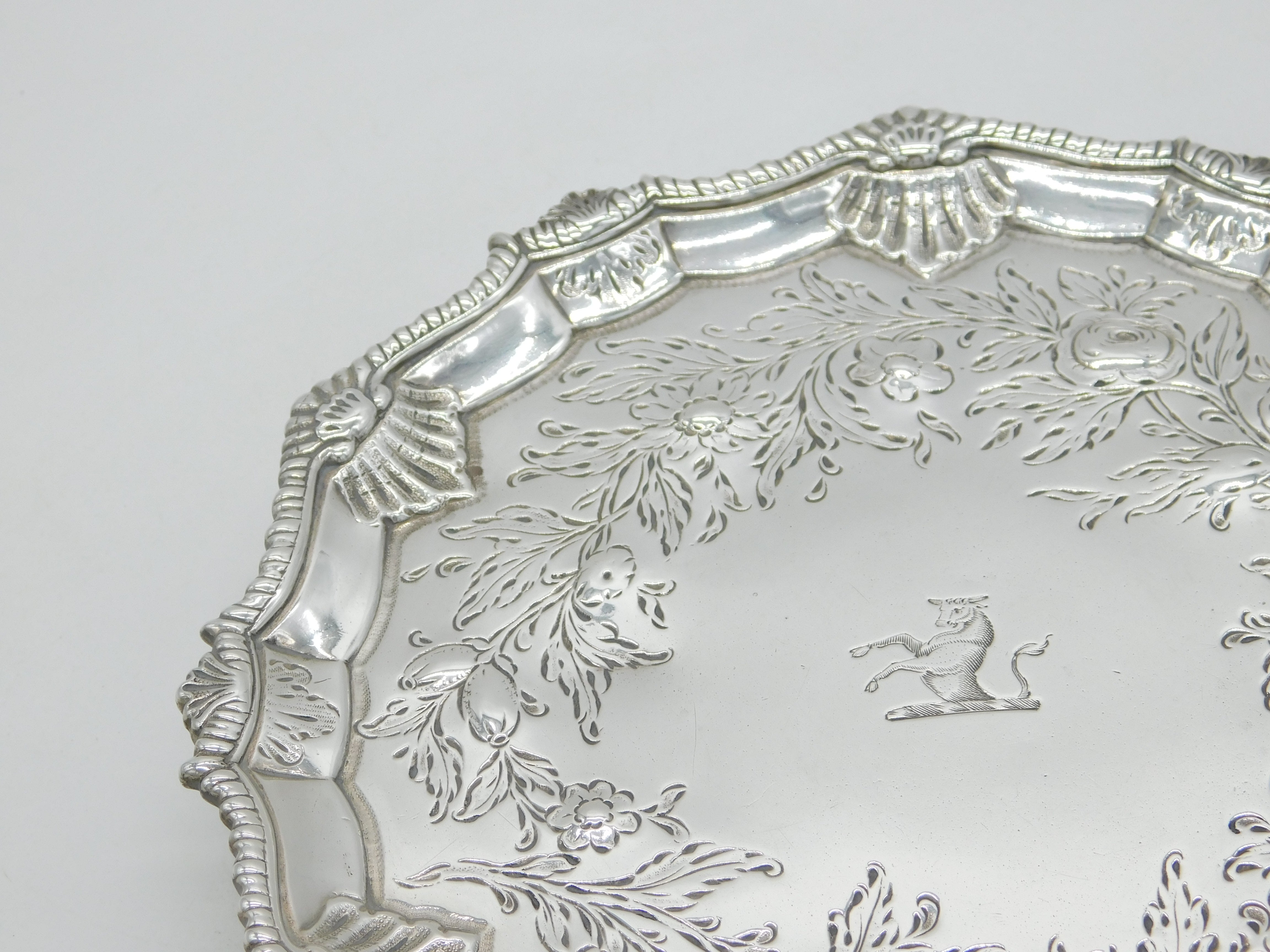 George III Sterling Silver Floral Pattern Cow Crest Salver Antique 1764 London