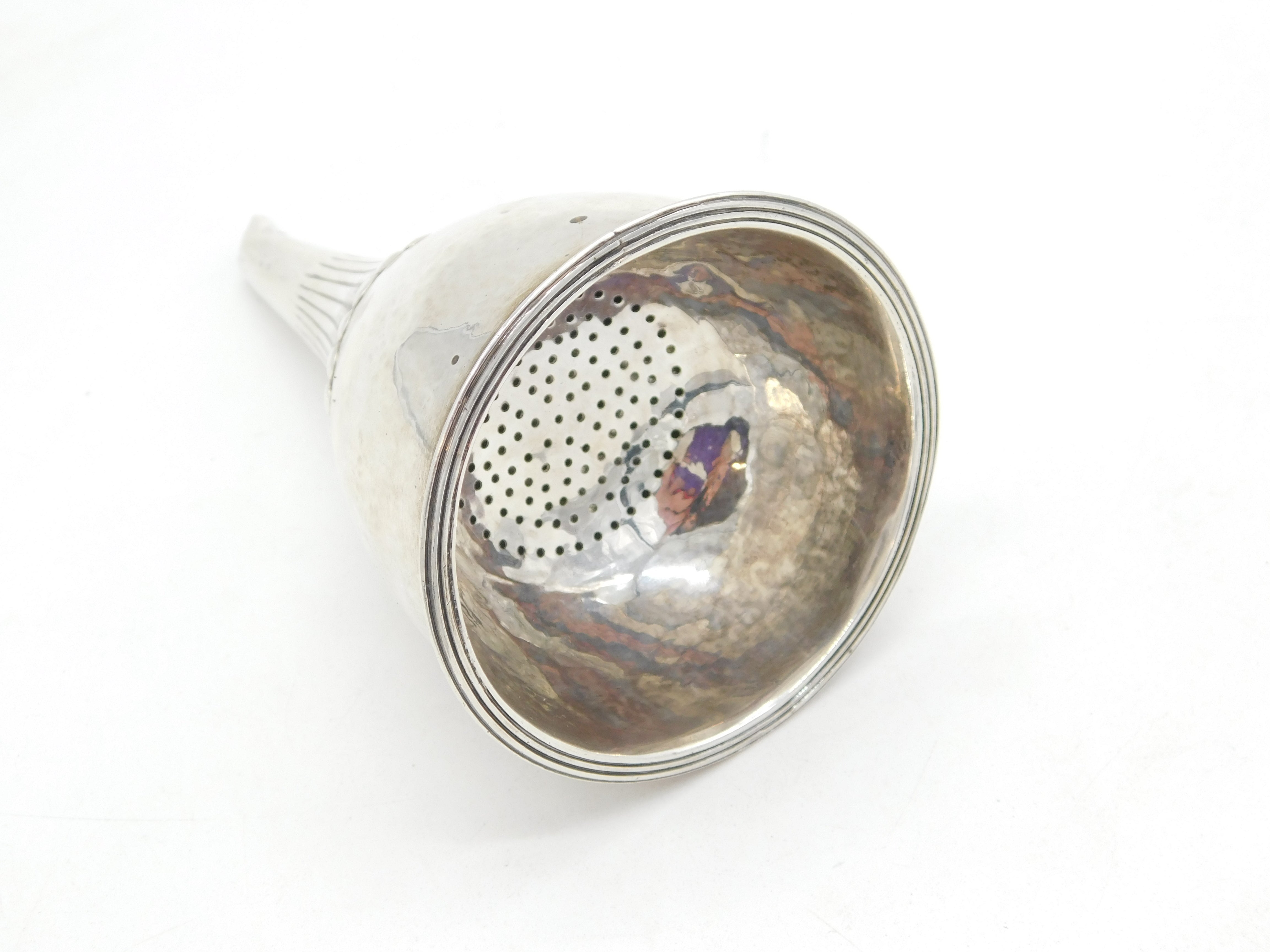 George III Sterling Silver Fluted Heraldic Crest Wine Funnel Antique 1800 London