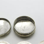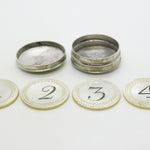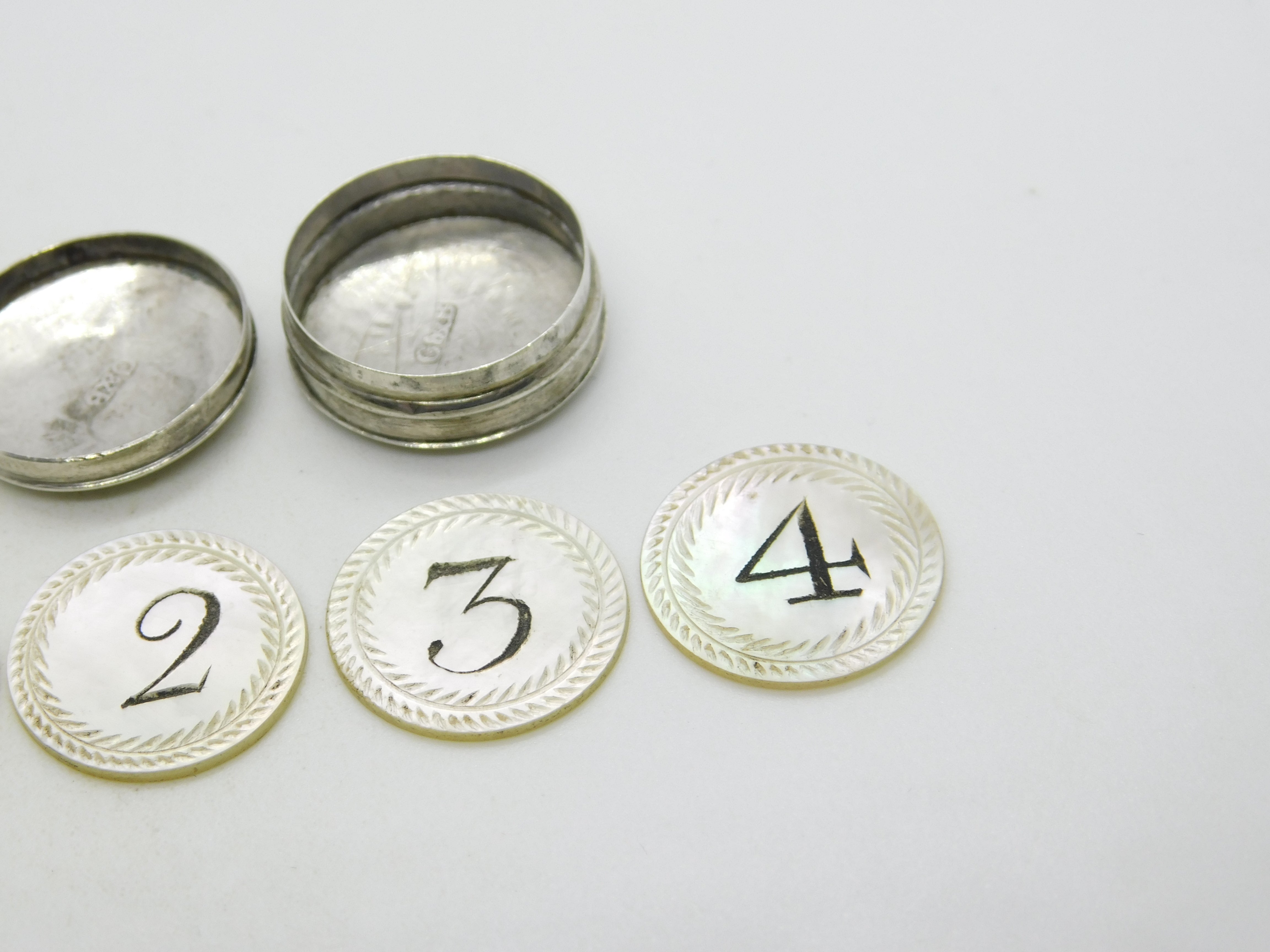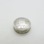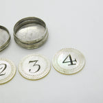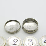 Details: A fantastic and wonderfully designed antique georgian sterling silver small circular gaming counter box with floral decoration included with the original gaming counters numbered 1-4 on mother of pearl, hallmarked by Birmingham makers Cocks & Bettridge c1790. This is a wonderful item that would make a perfect gift or addition to any collection.