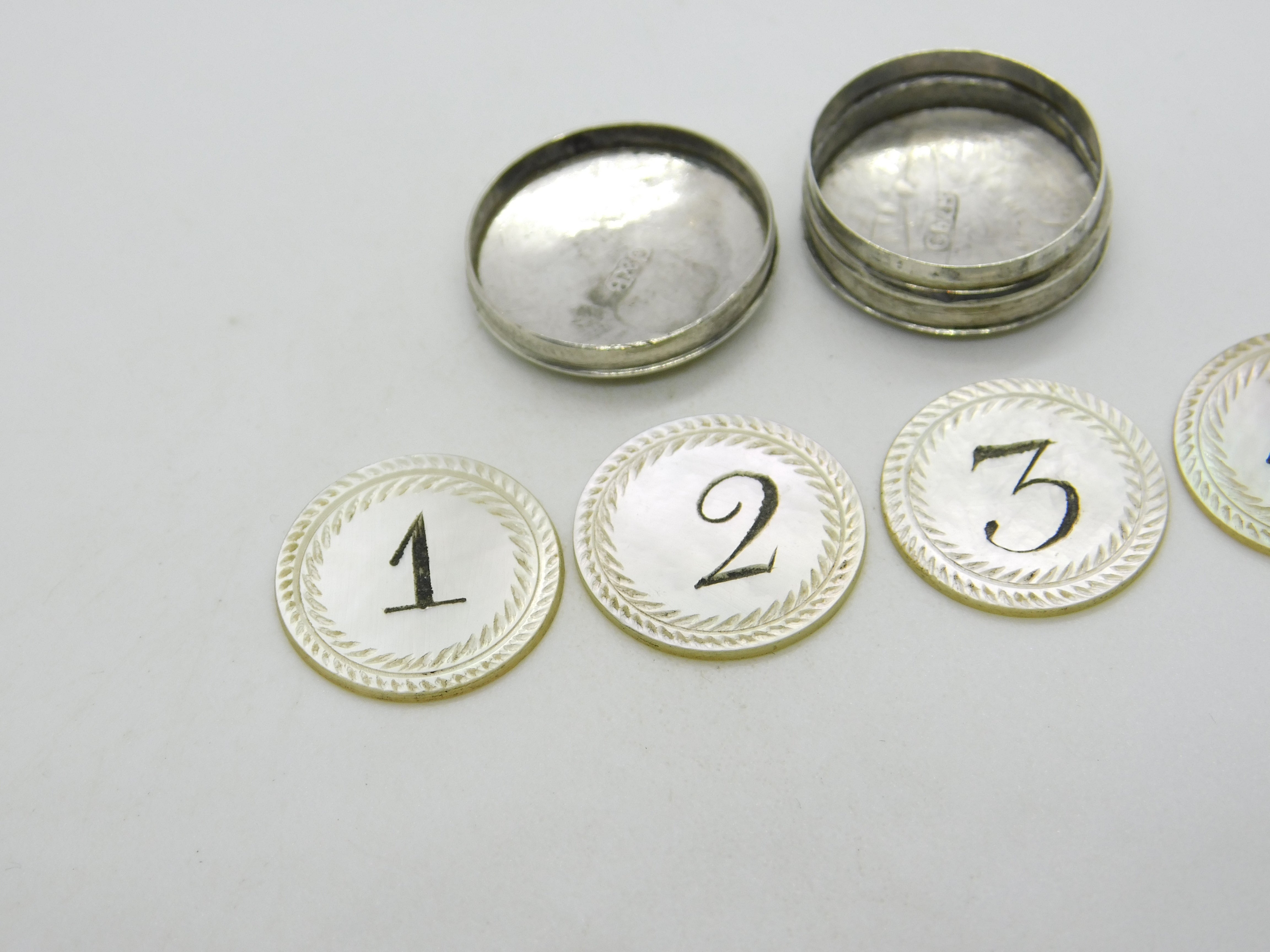 George III Sterling Silver Gaming Counter Box w. Pearl Counters Antique c1790