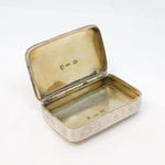 Details: A fantastic and wonderfully designed antique georgian sterling silver early vesta case with leaf patterns and gold panel to the top lid hallmarked Birmingham 1810 by Joseph Willmore, striker to the bottom edge. This is a wonderful item that would make a perfect gift or addition to any collection.