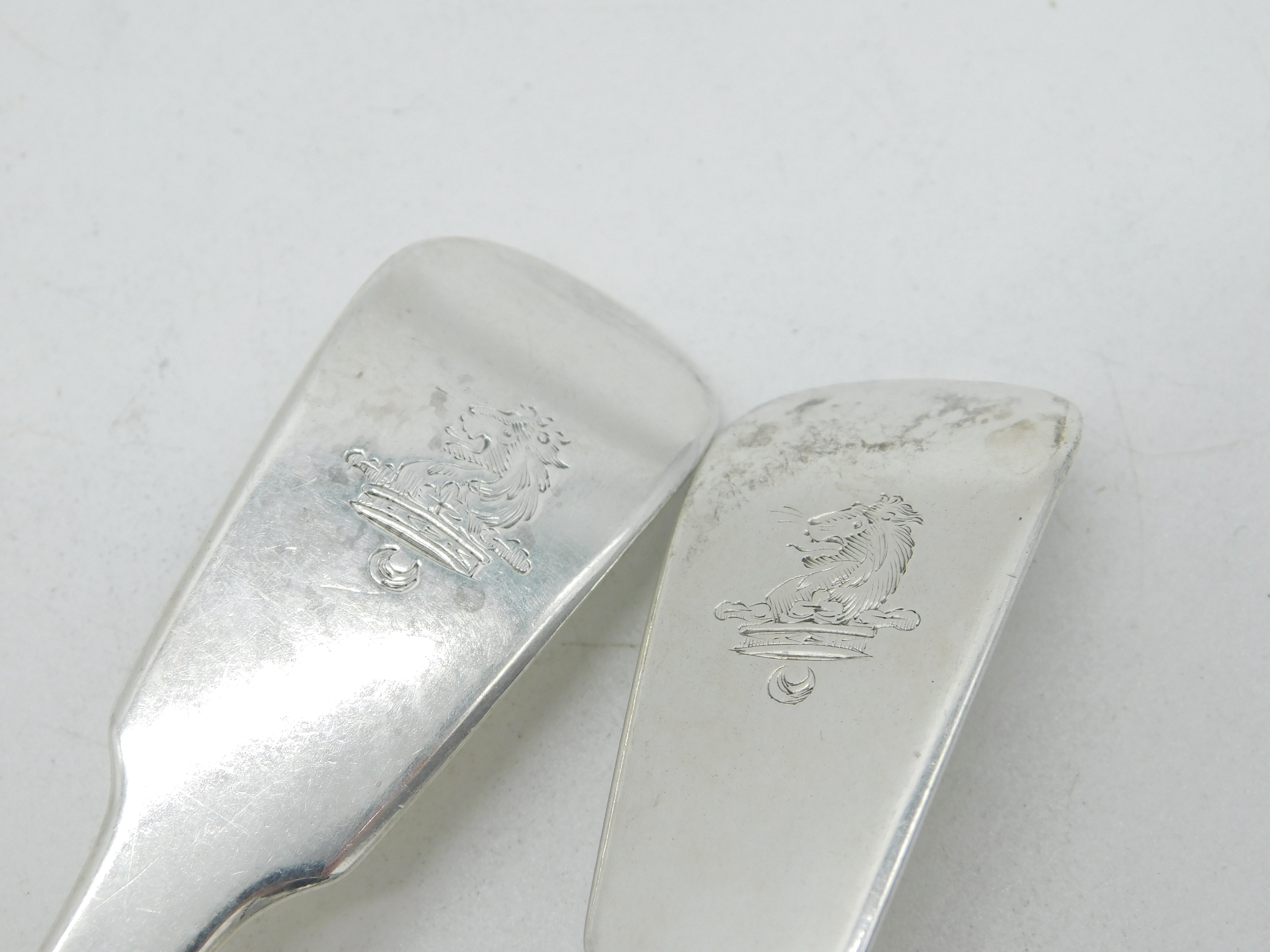 George IV Pair of Irish Sterling Silver Lion Crest Sauce Ladles 1825 Dublin Antique