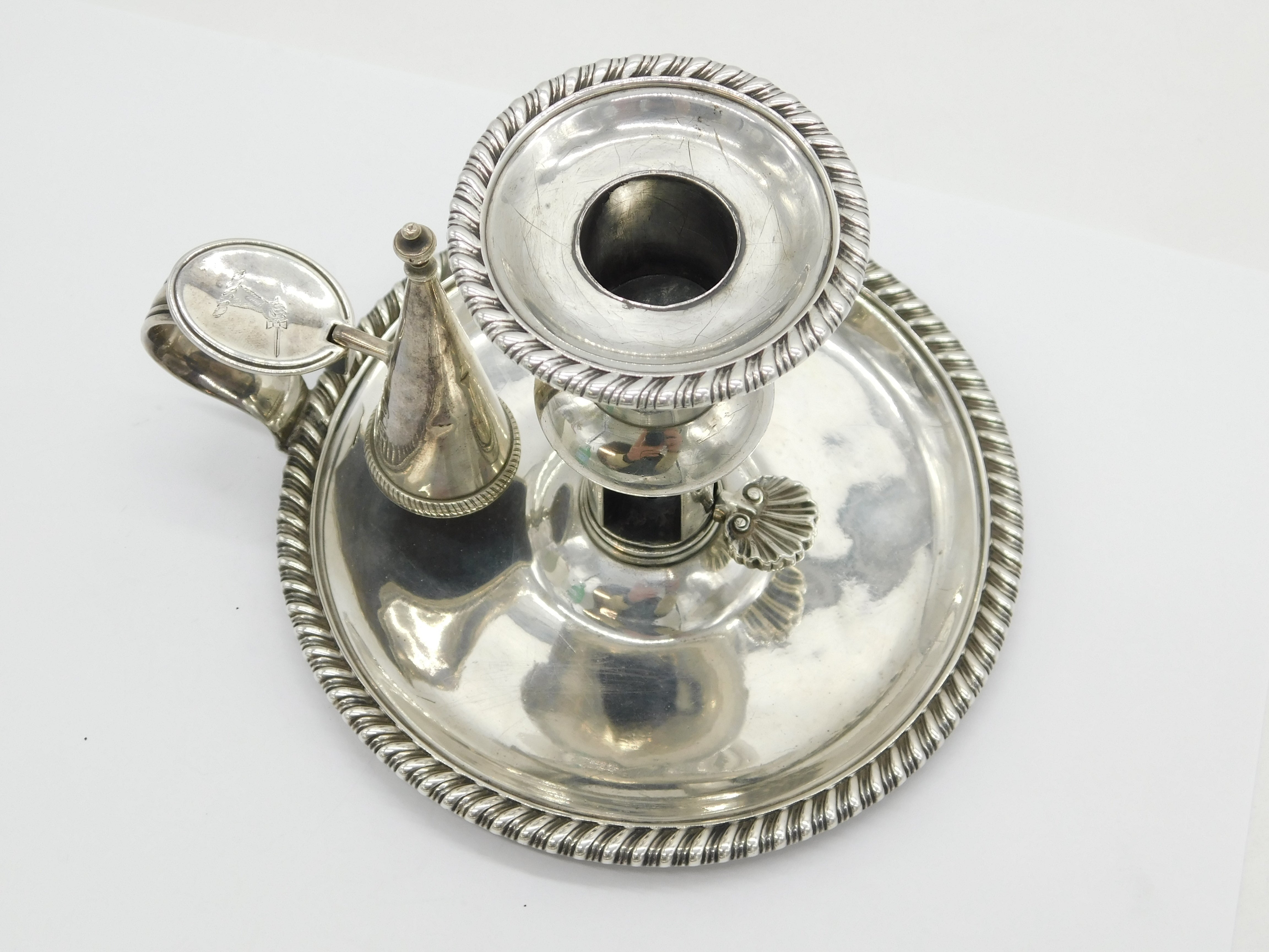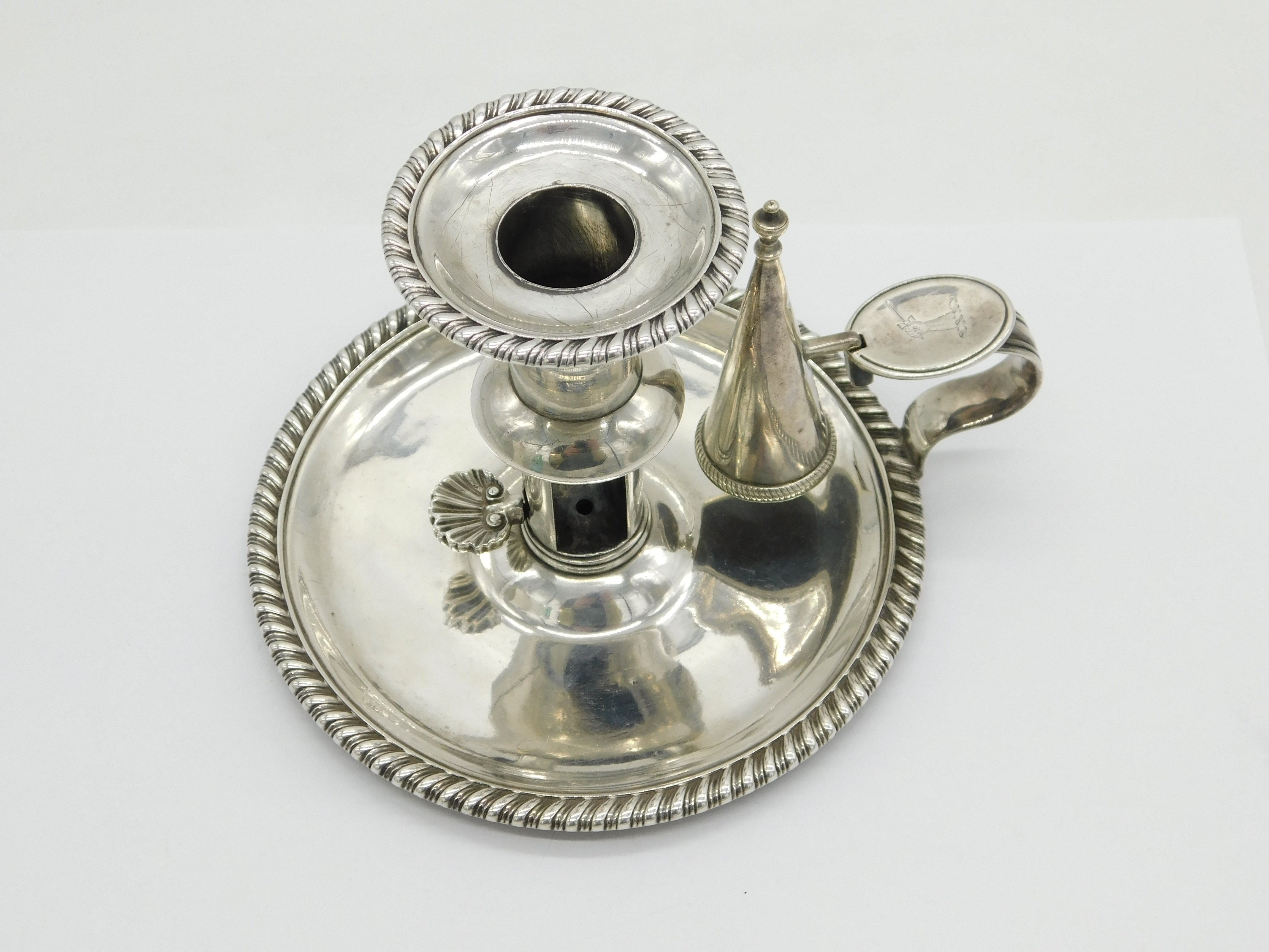 George IV Sterling Silver Crested Candle Chamberstick Antique 1822 London