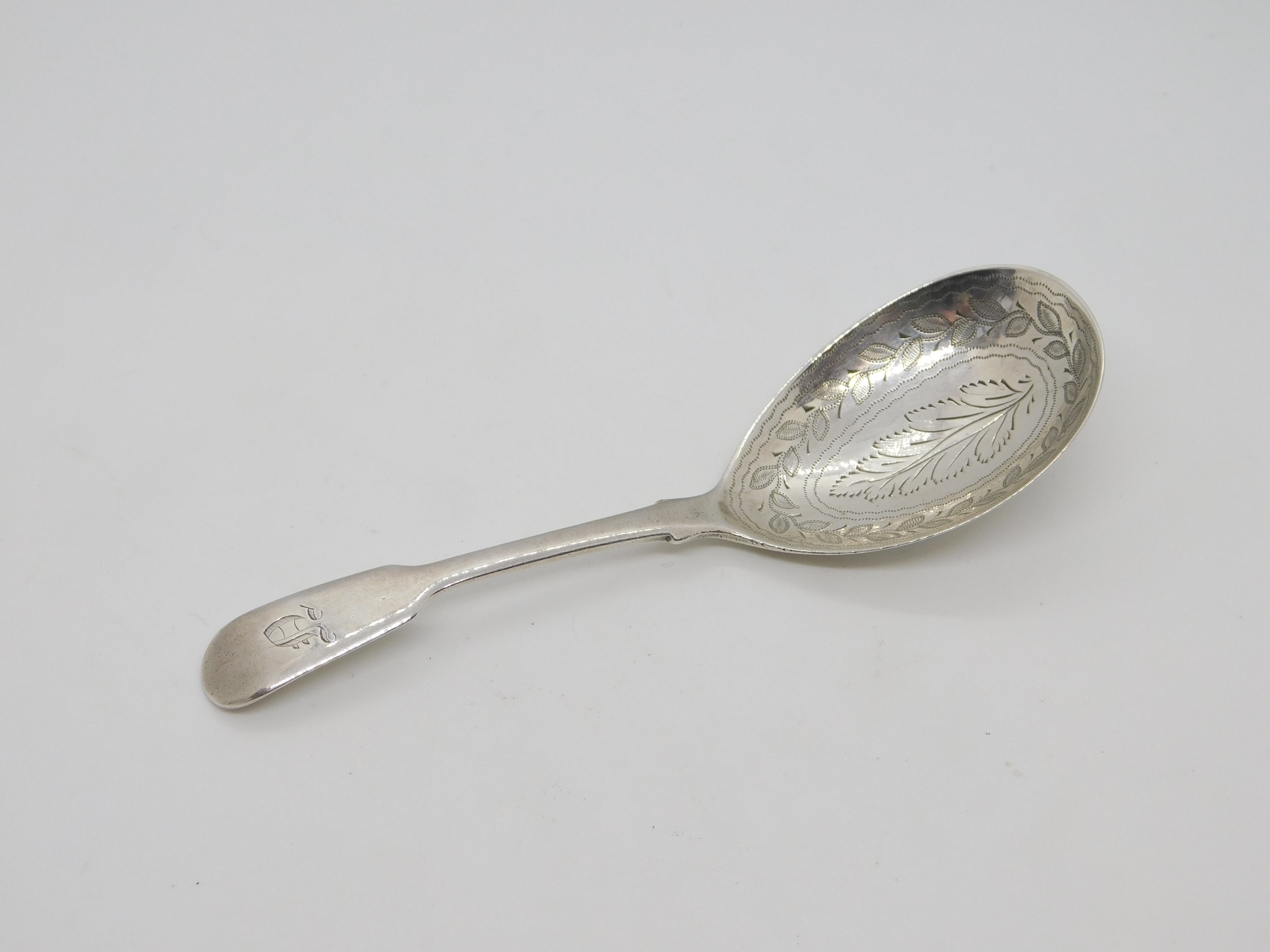 George IV Sterling Silver Leaf Pattern Tea Caddy Spoon Antique 1822 London