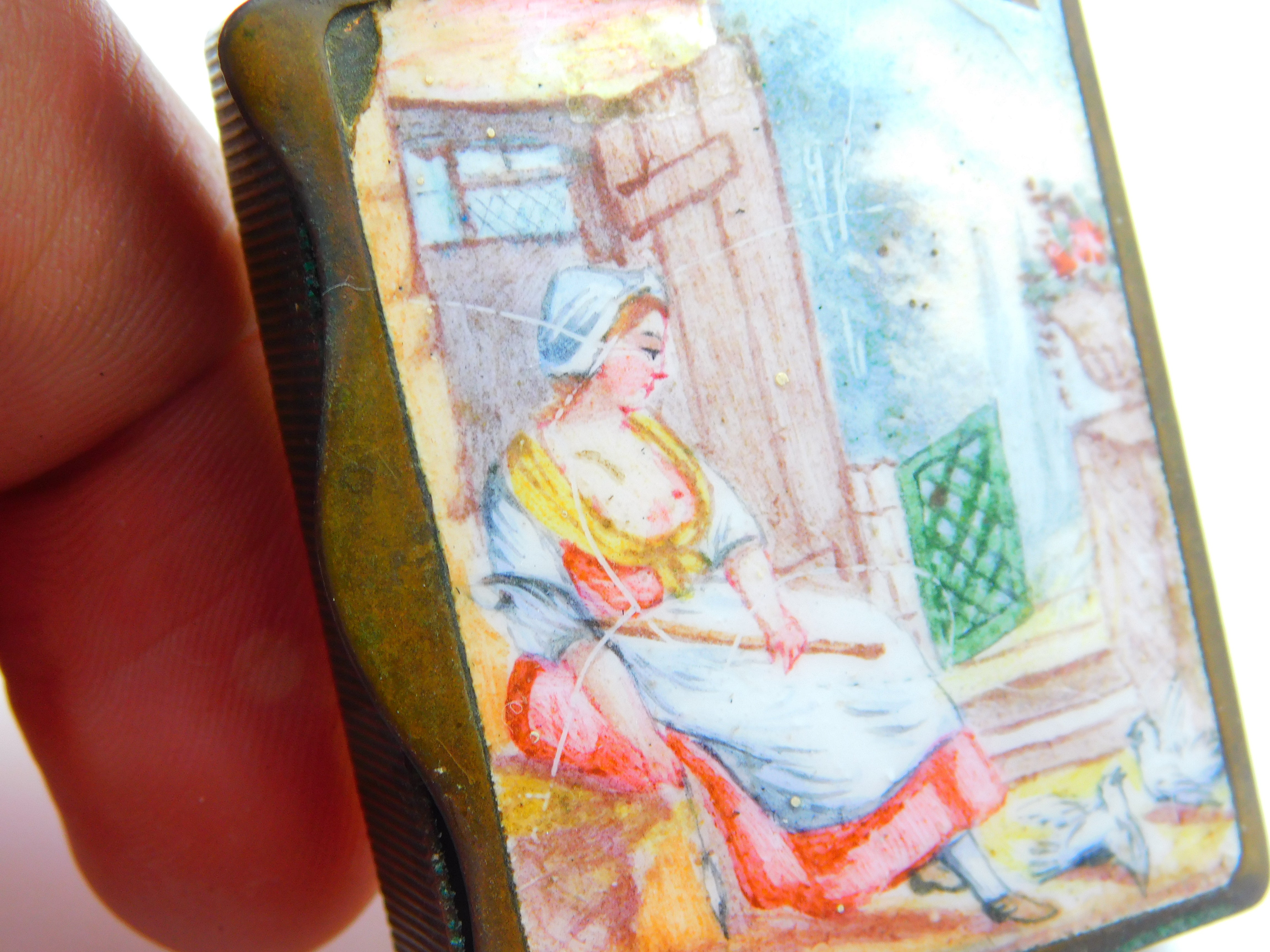 Georgian Bilston Enamel & Base Metal Erotic Scene Vesta Case c1820 Antique AF