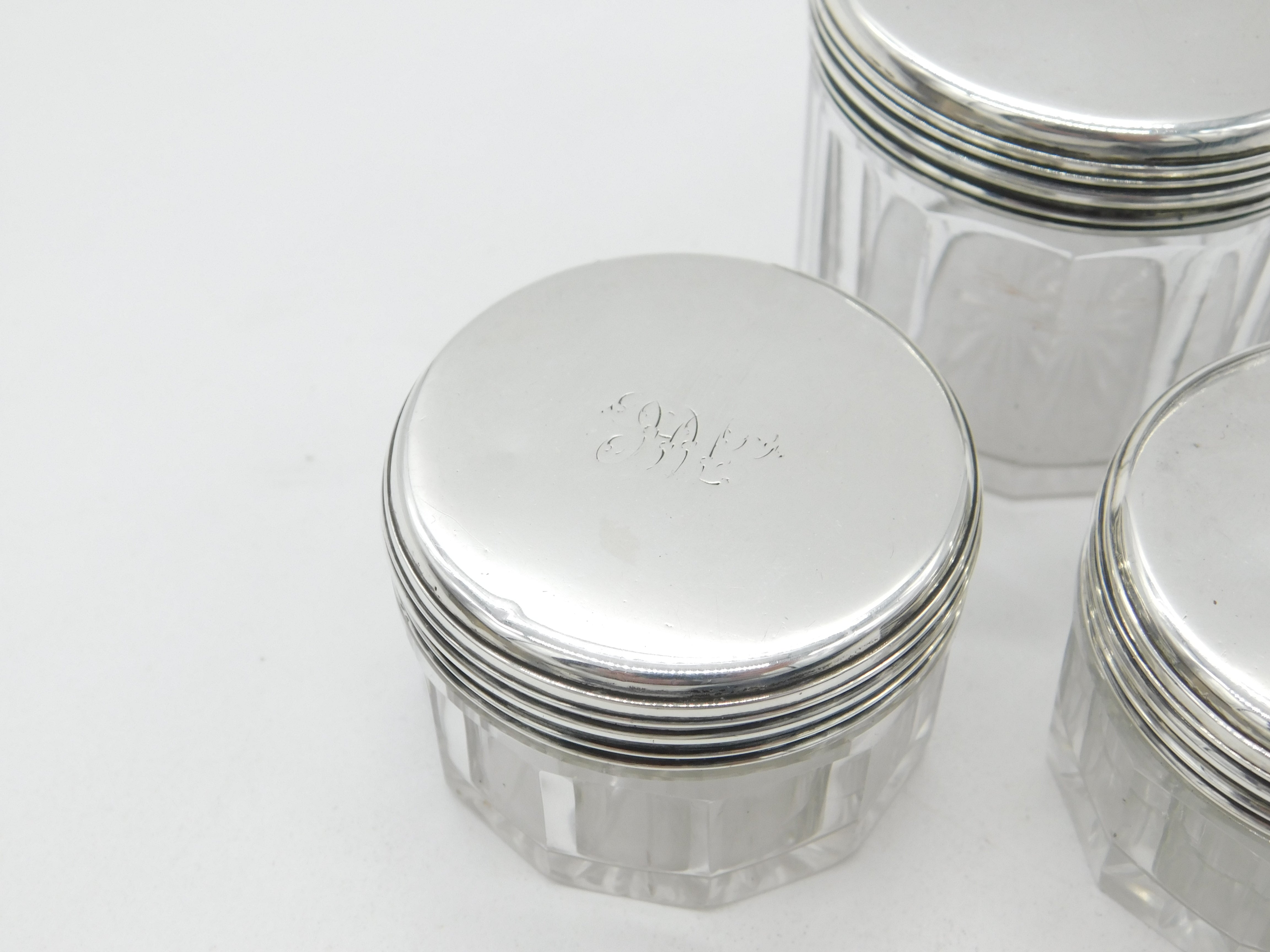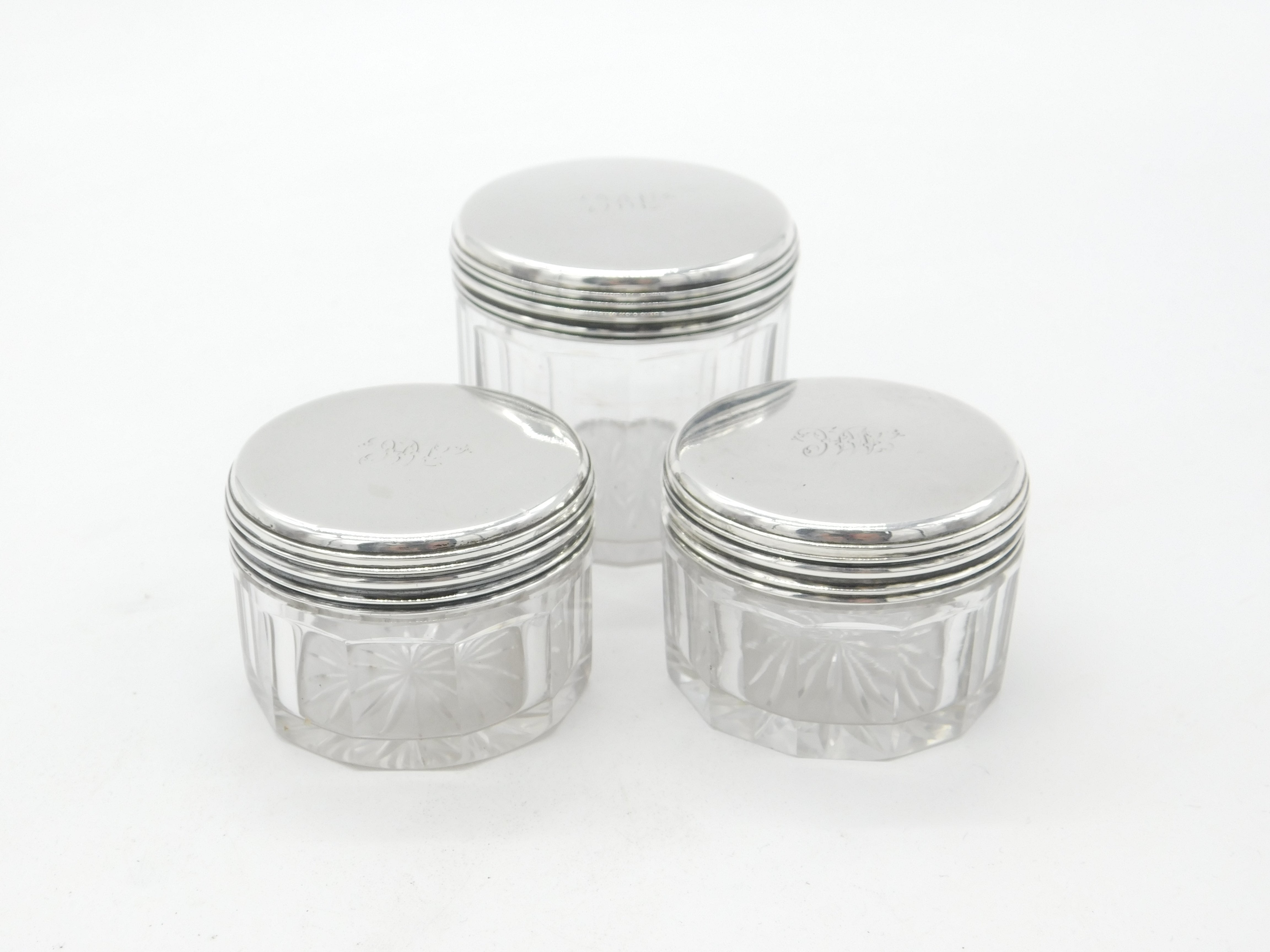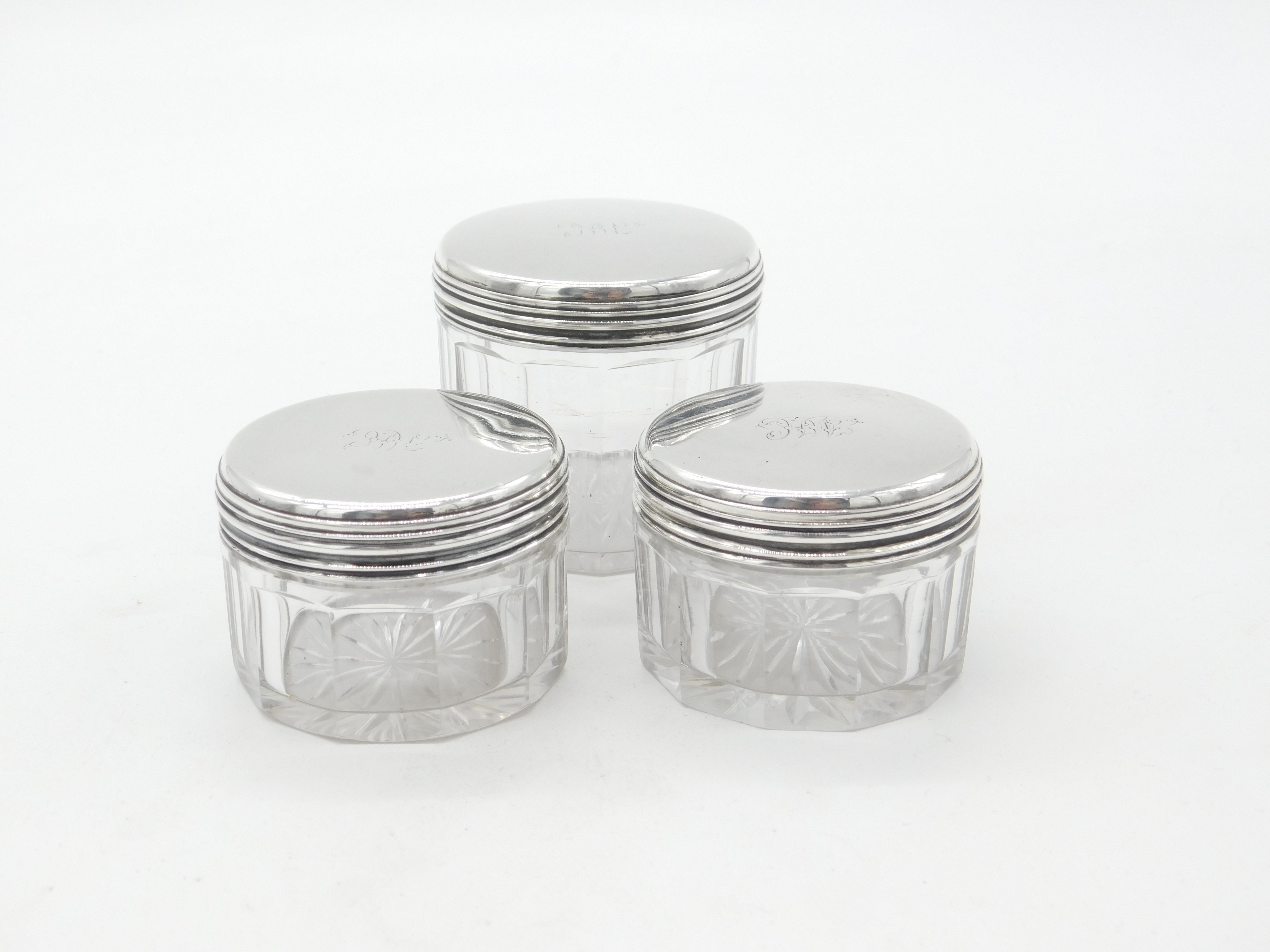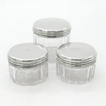 Georgian Set of 3 Sterling Silver Vanity Jars Antique 1836 London F. Douglas