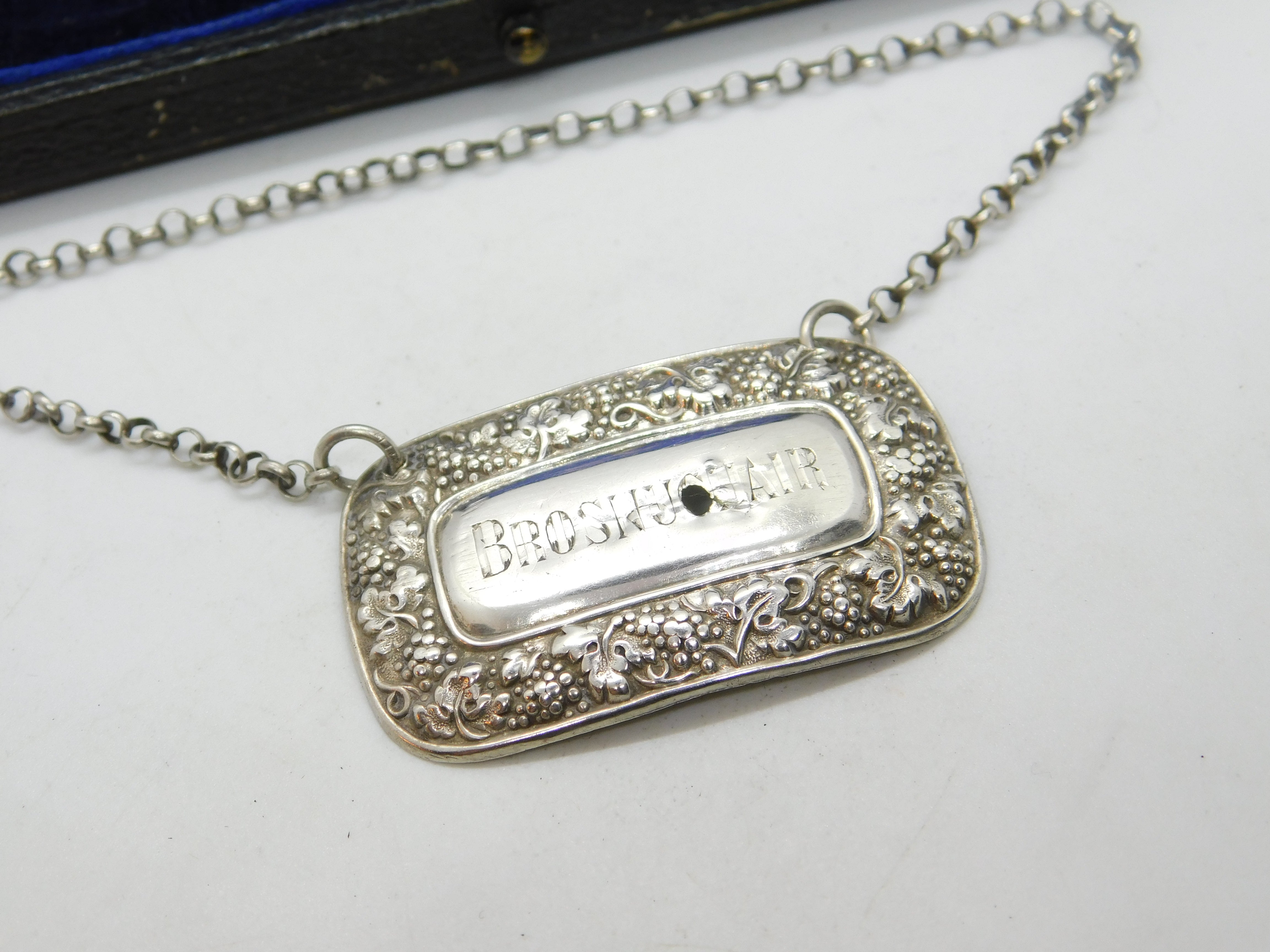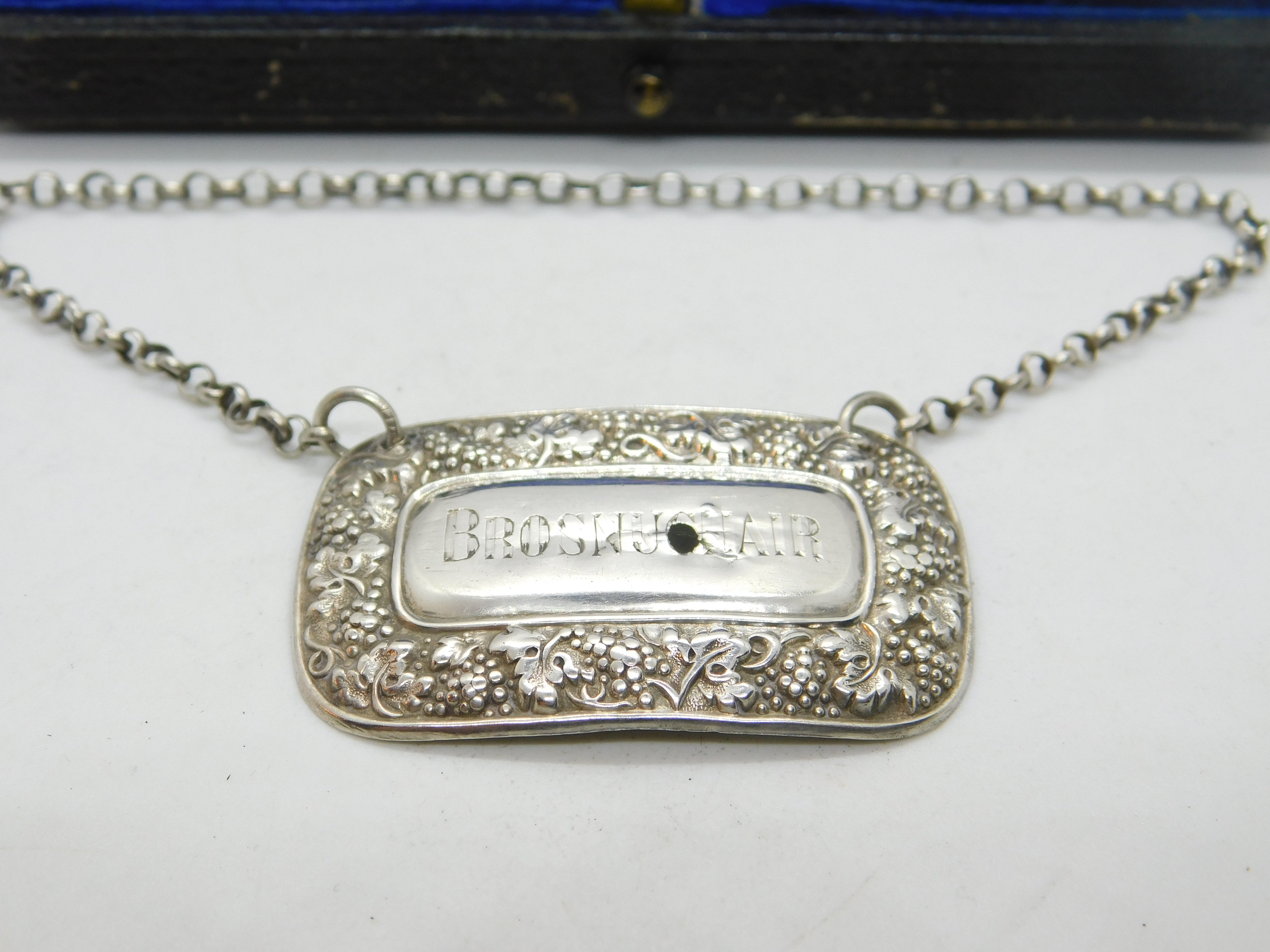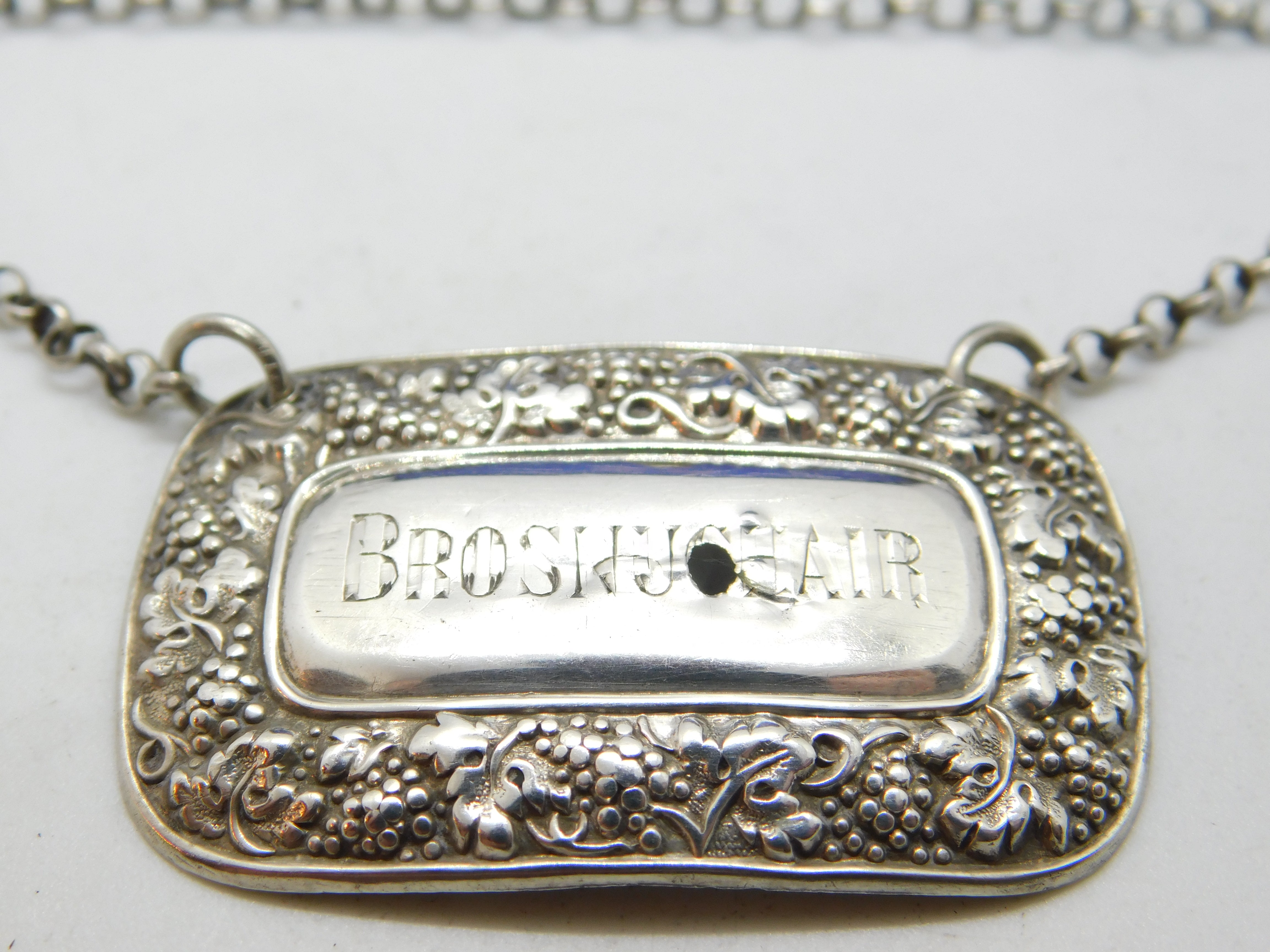 Georgian Sterling Silver 'Brosnuchair' Decanter Label Antique 1824 Birmingham