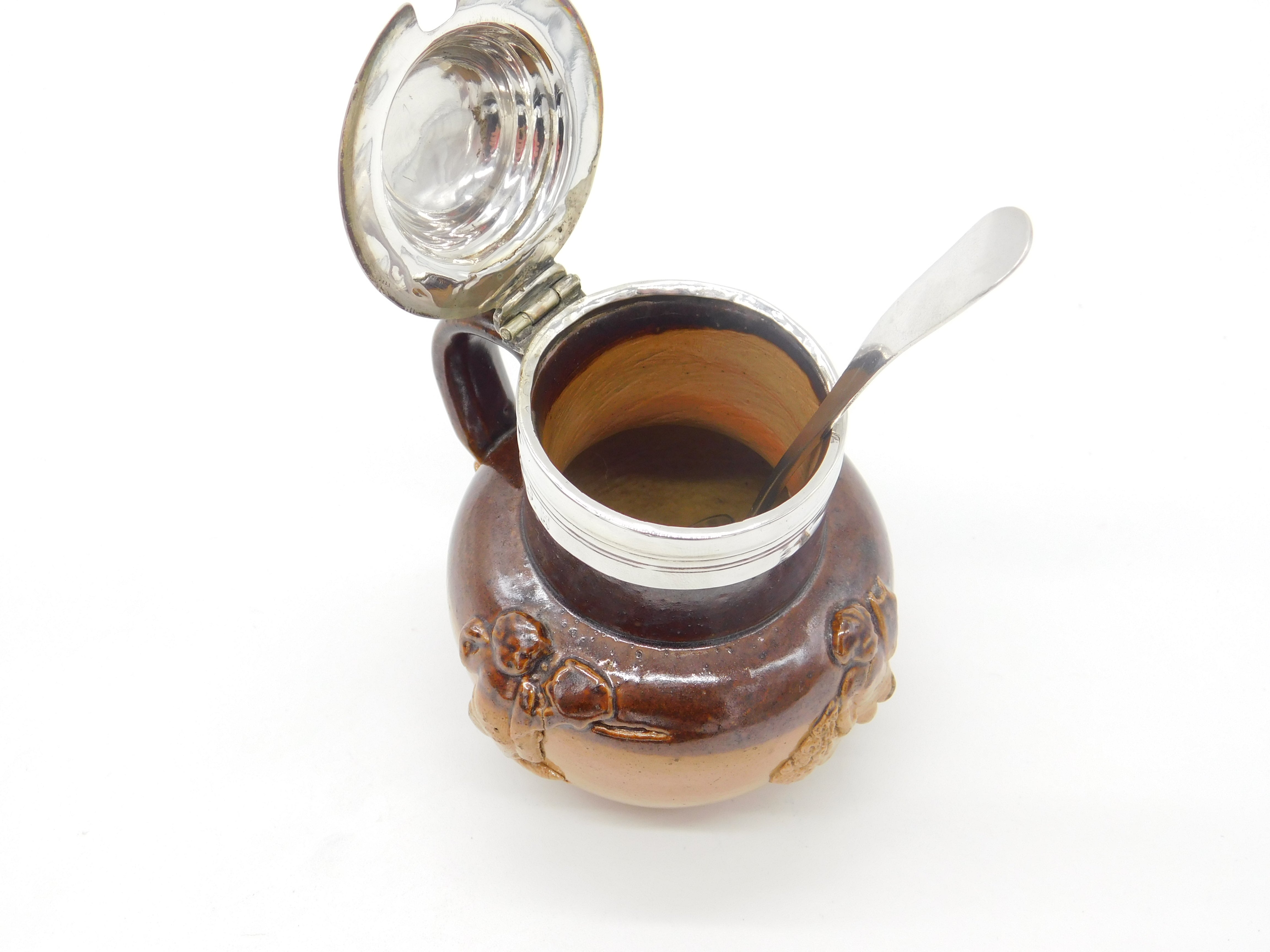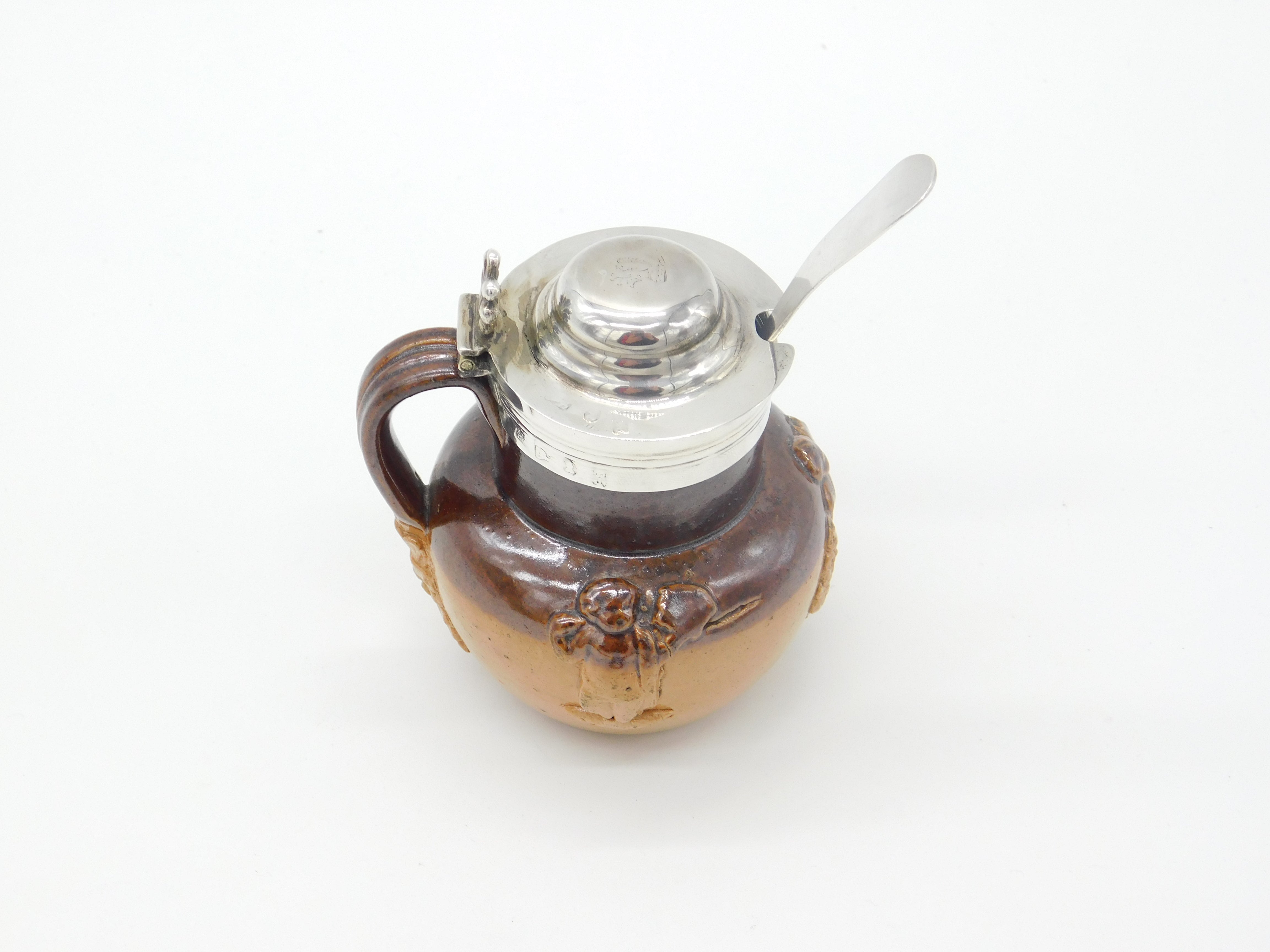 Georgian Sterling Silver Doulton Stoneware Mustard Pot Antique 1824 Sheffield