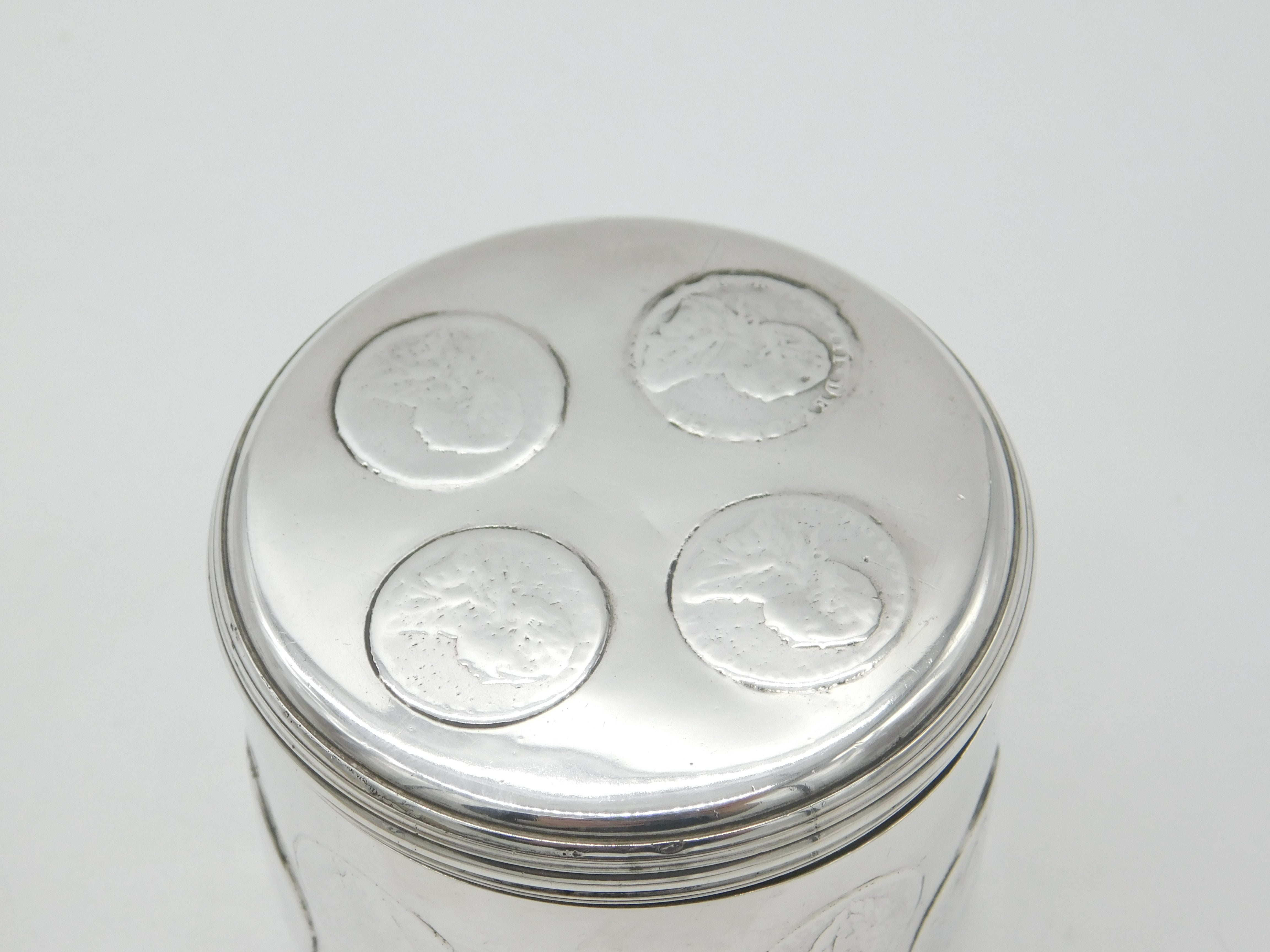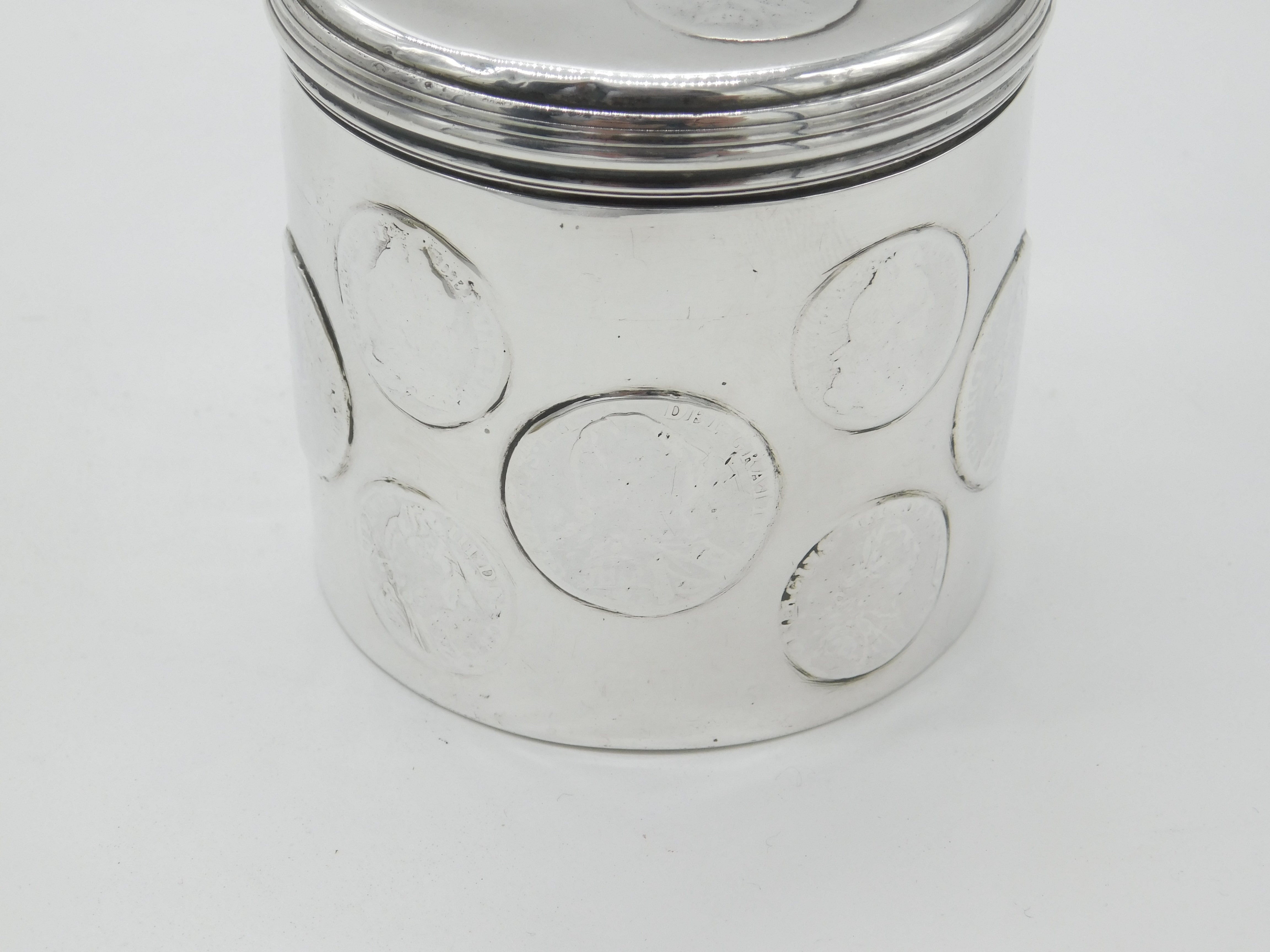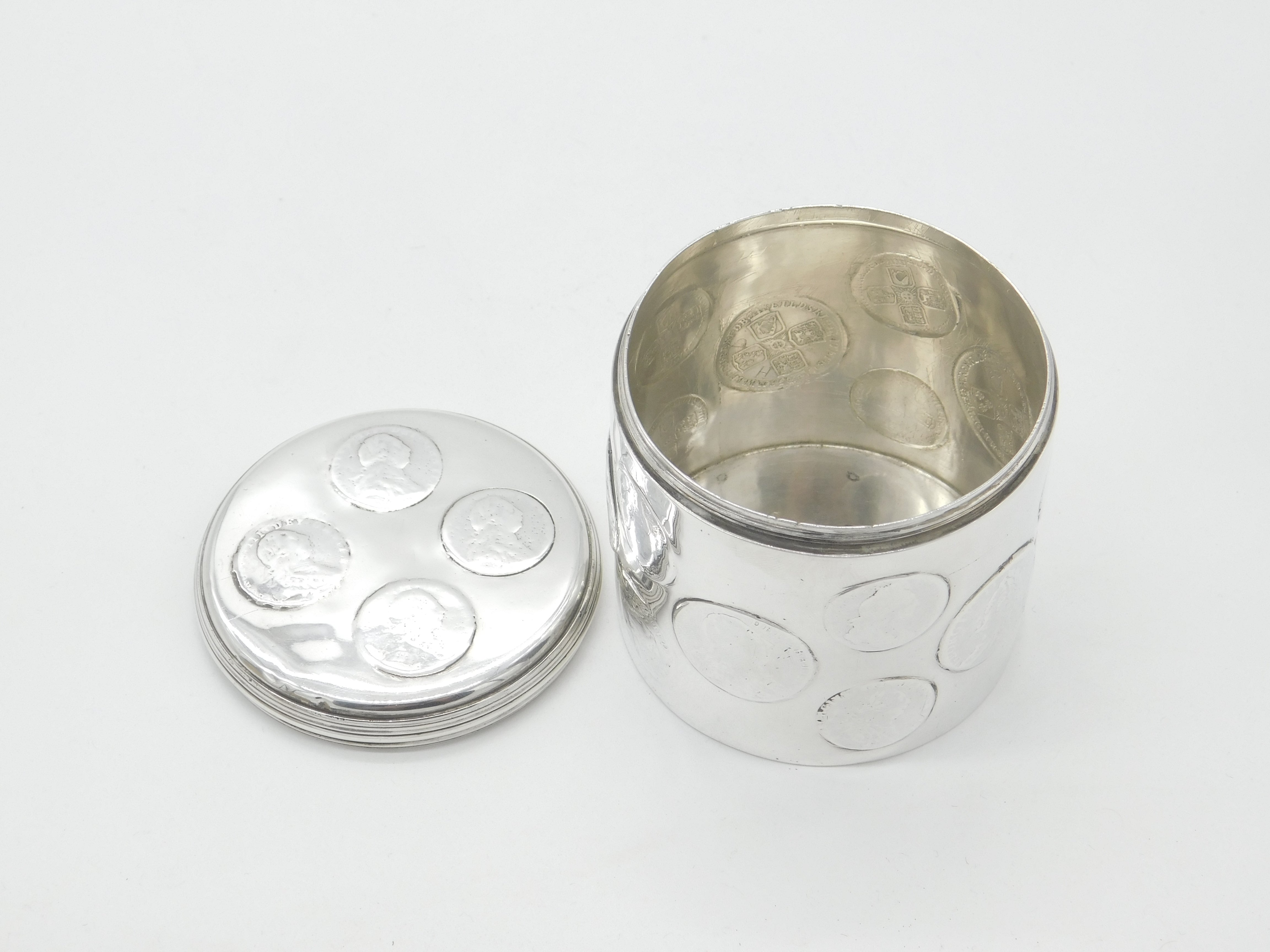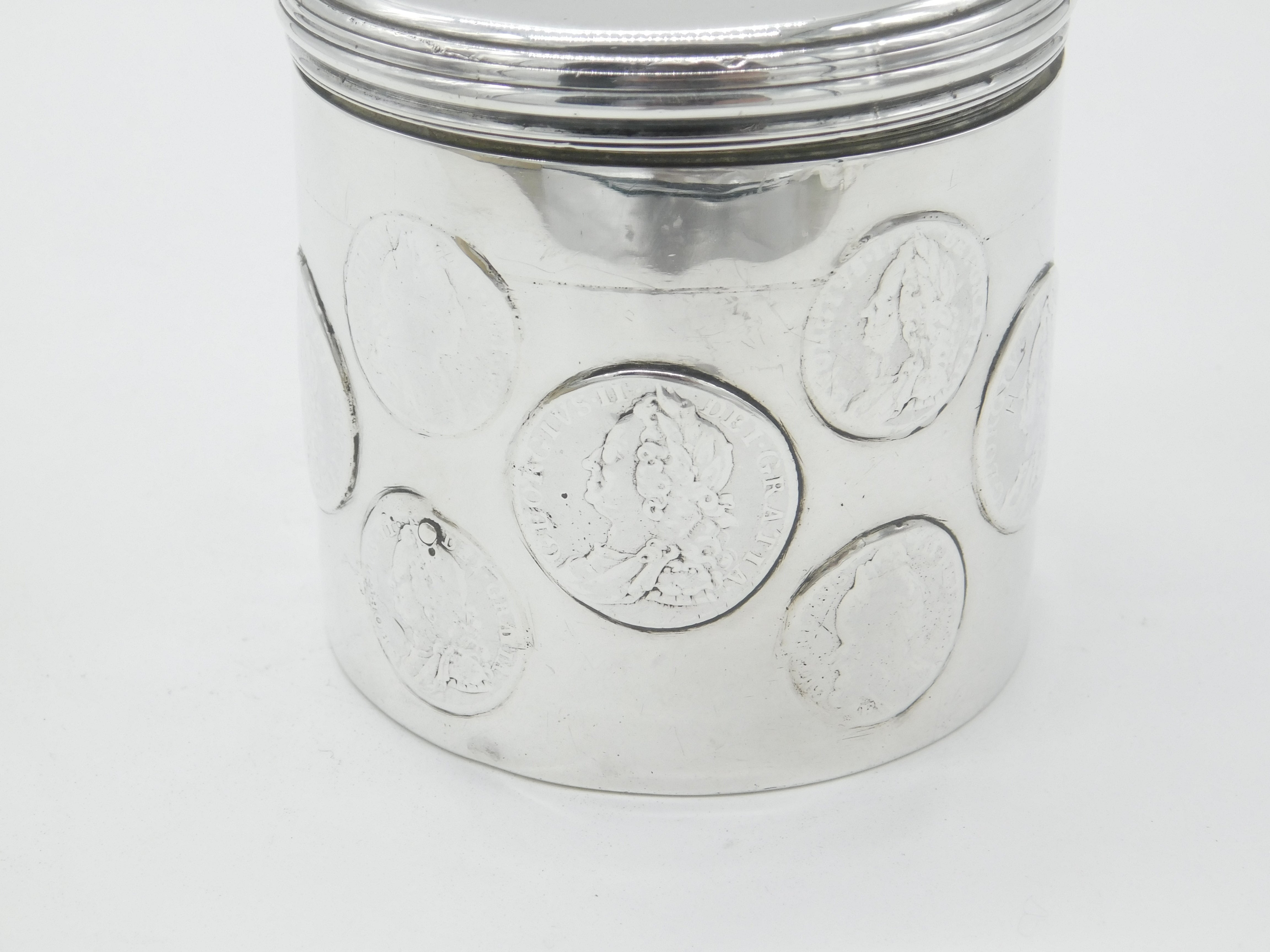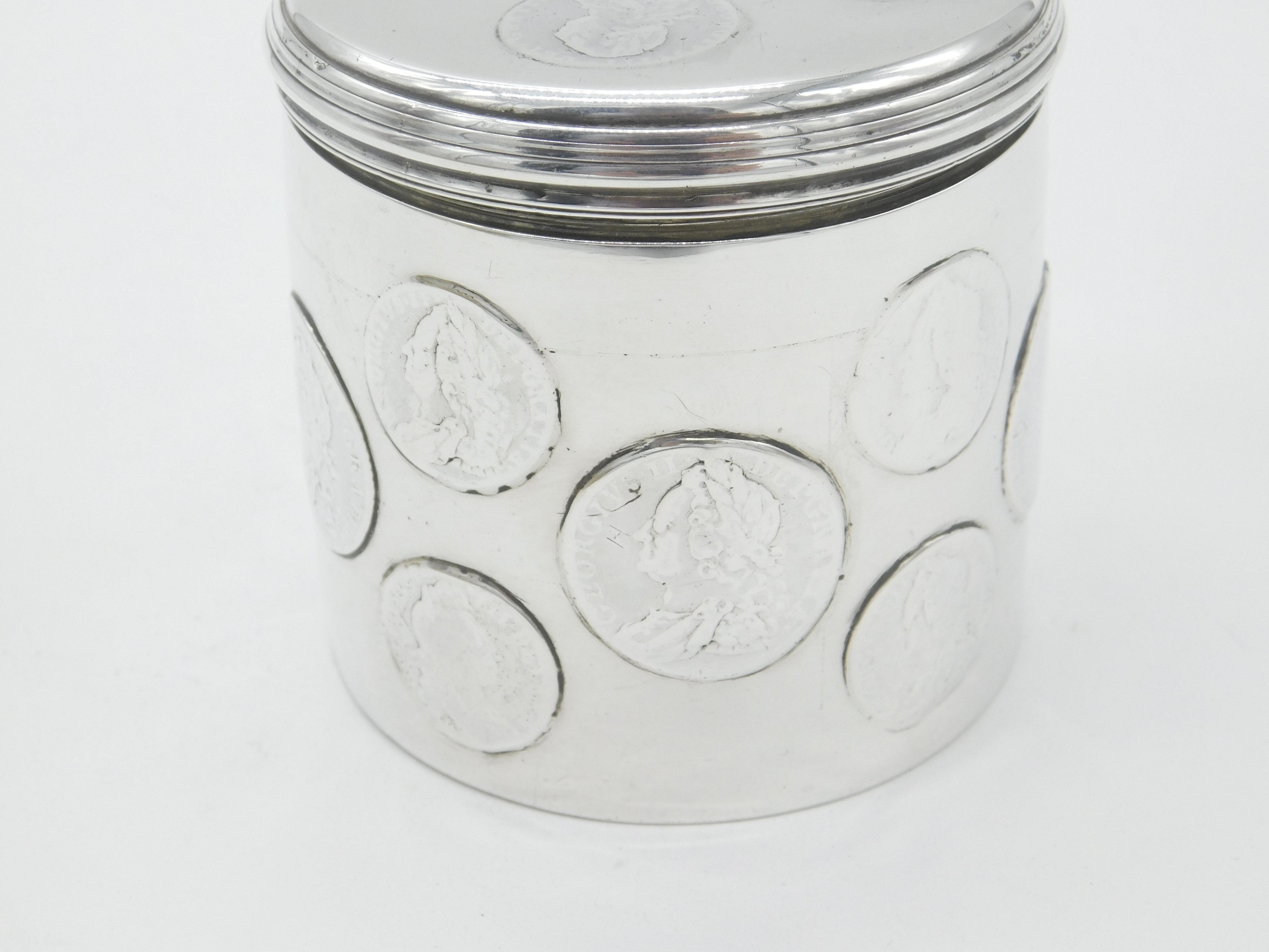 Details: A fantastic and wonderfully designed antique Georgian sterling silver money box or trinket box with stunning detailing to include coins inlaid throughout including William III, George I, II & III hallmarked London 1826 to the base. This is a wonderful item that would make a perfect gift or addition to any collection. The BOX pictured is for PRESENTATION ONLY and is NOT included in the listings but used to frame the pictures unless specifically stated otherwise.