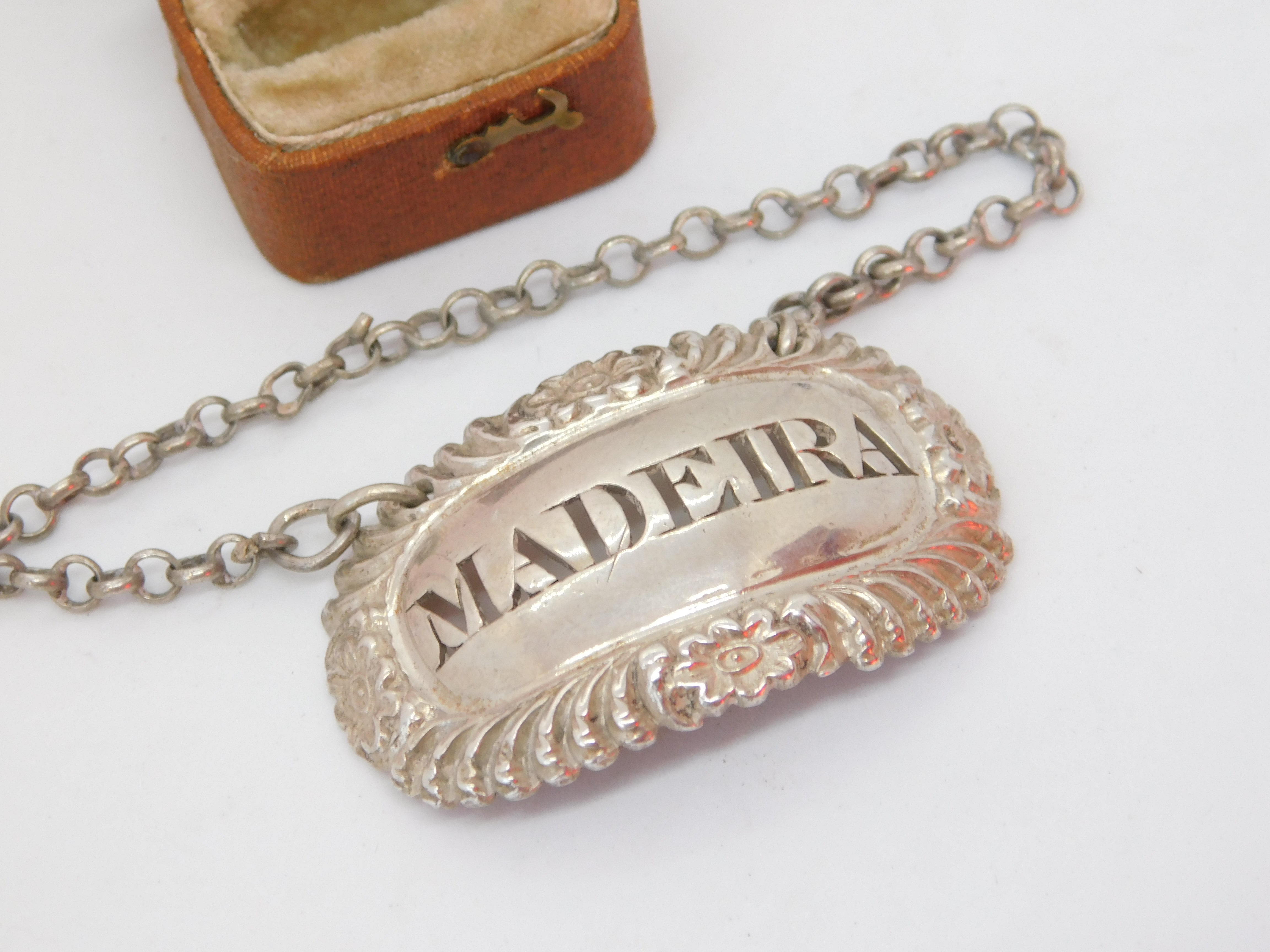 Georgian Sterling Silver Floral Madeira Decanter Label 1781 London Antique