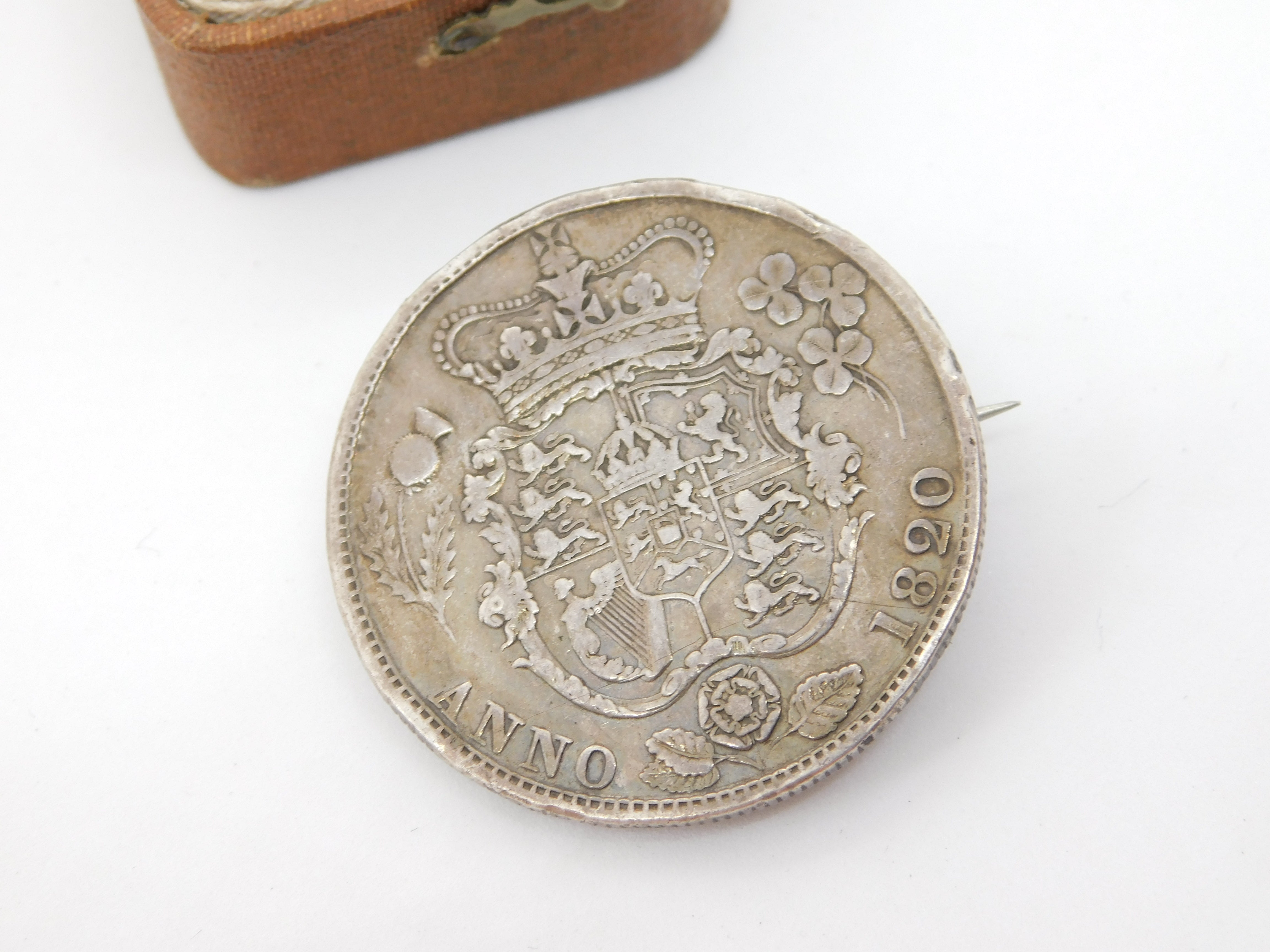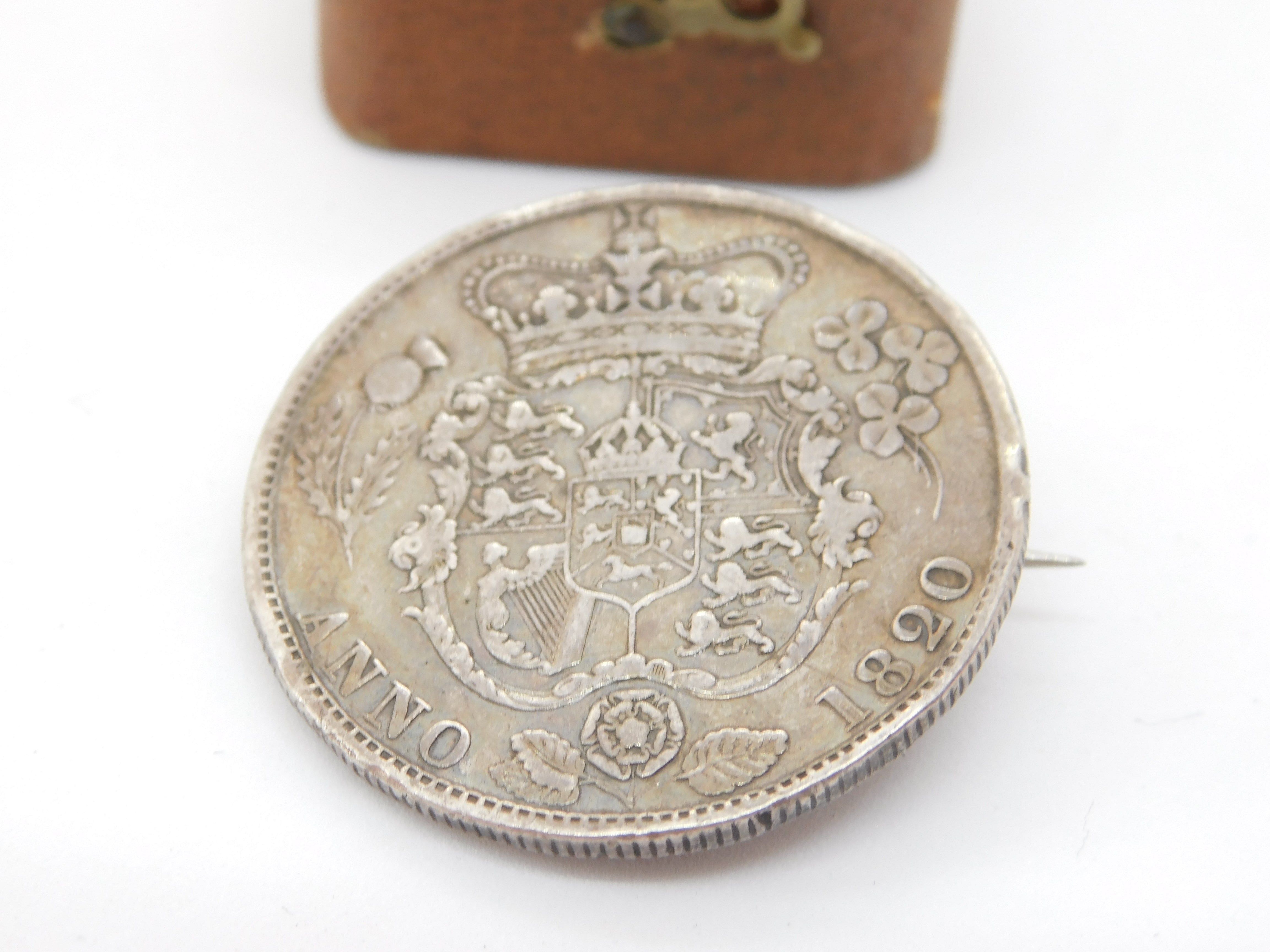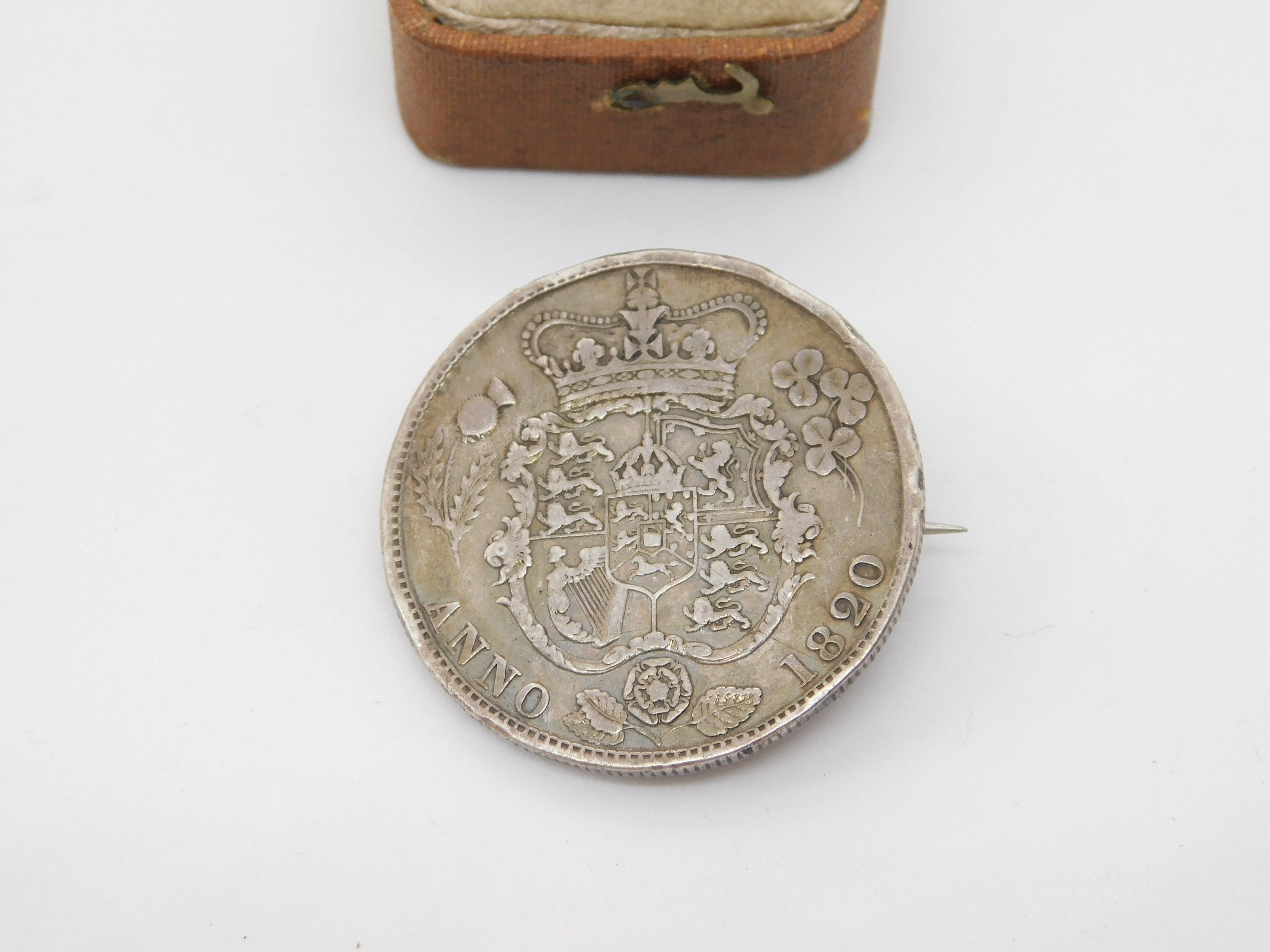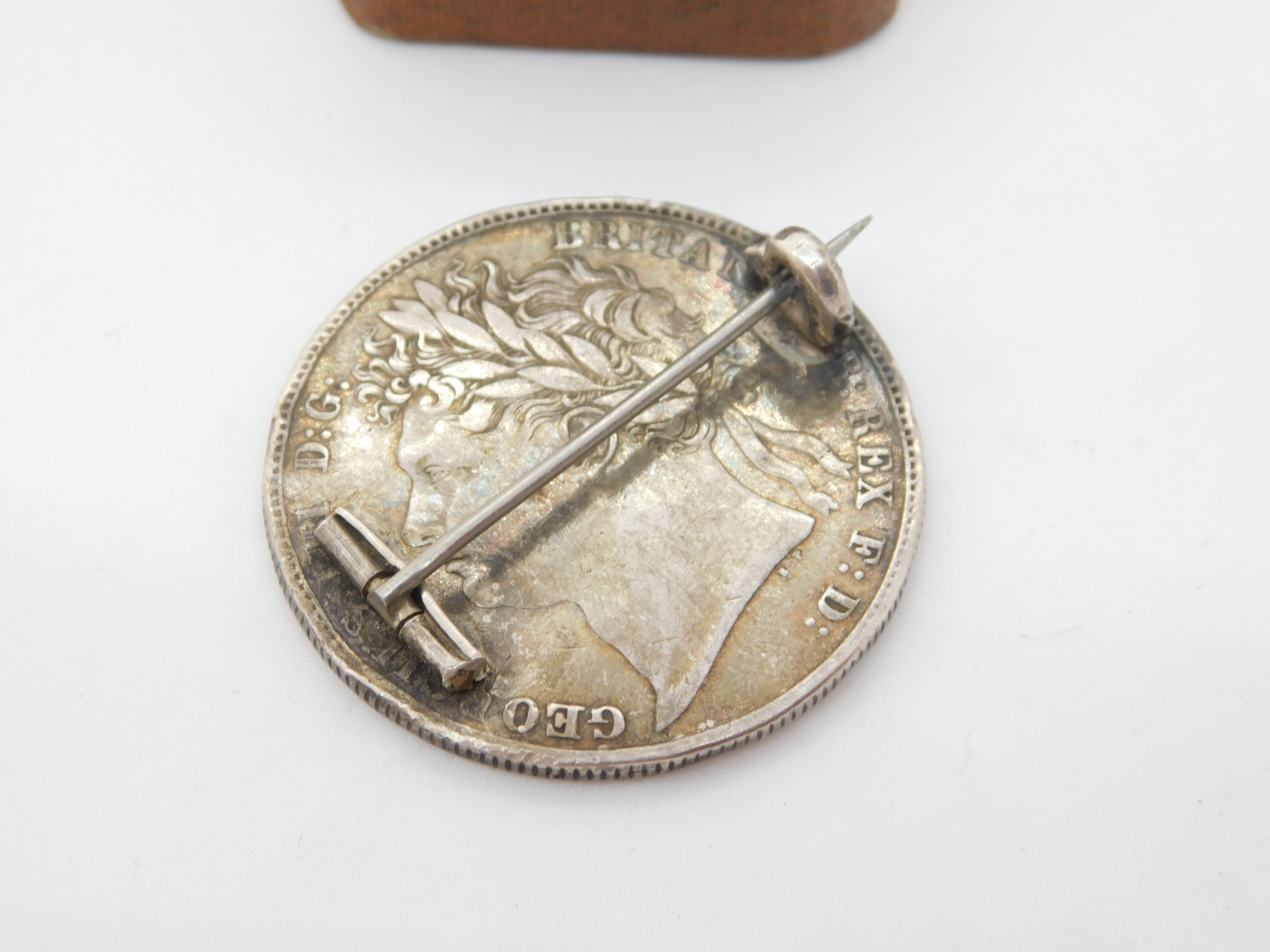 Georgian Sterling Silver Half Crown Coin Brooch 1820 Antique King George IV
