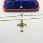 Details: A fantastic and wonderfully designed vintage gold on sterling silver celtic cross pendant necklace, the pendant adorned with green enamel set with mystic topaz hallmarked to the reverse c1970. This is a wonderful item that would make a perfect gift or addition to any collection. The BOX pictured is for PRESENTATION ONLY and is NOT included in the listings but used to frame the pictures unless specifically stated otherwise.