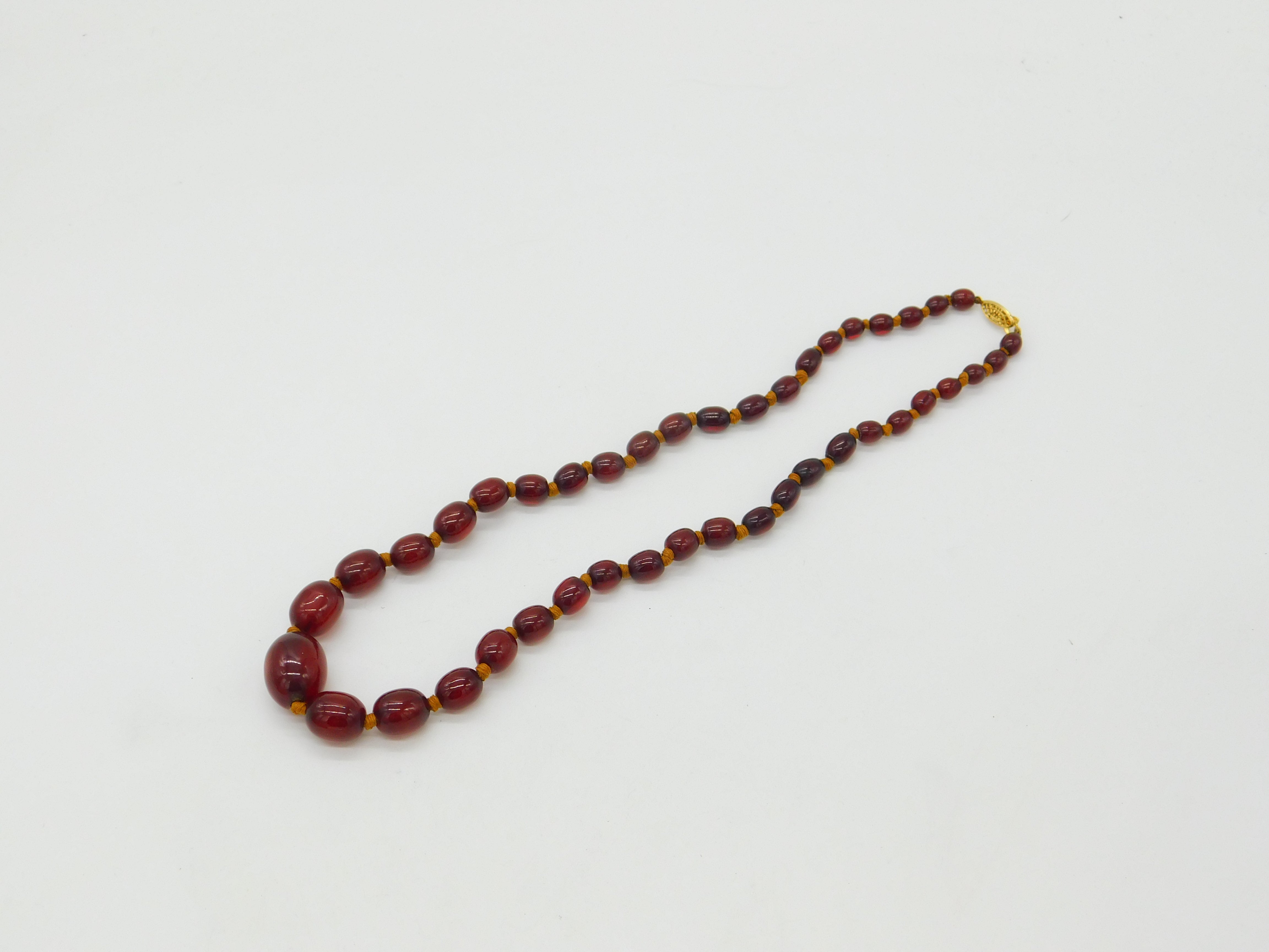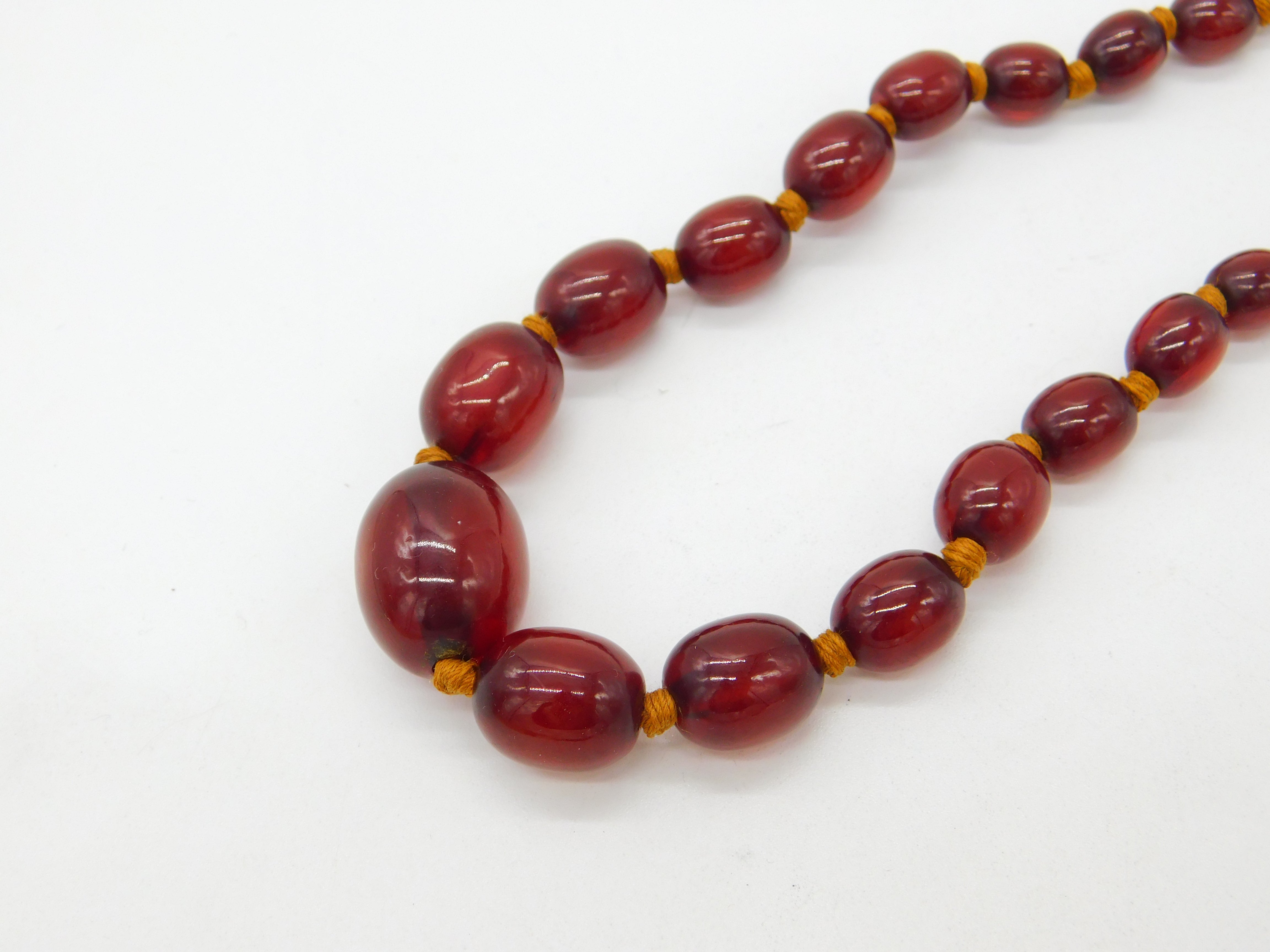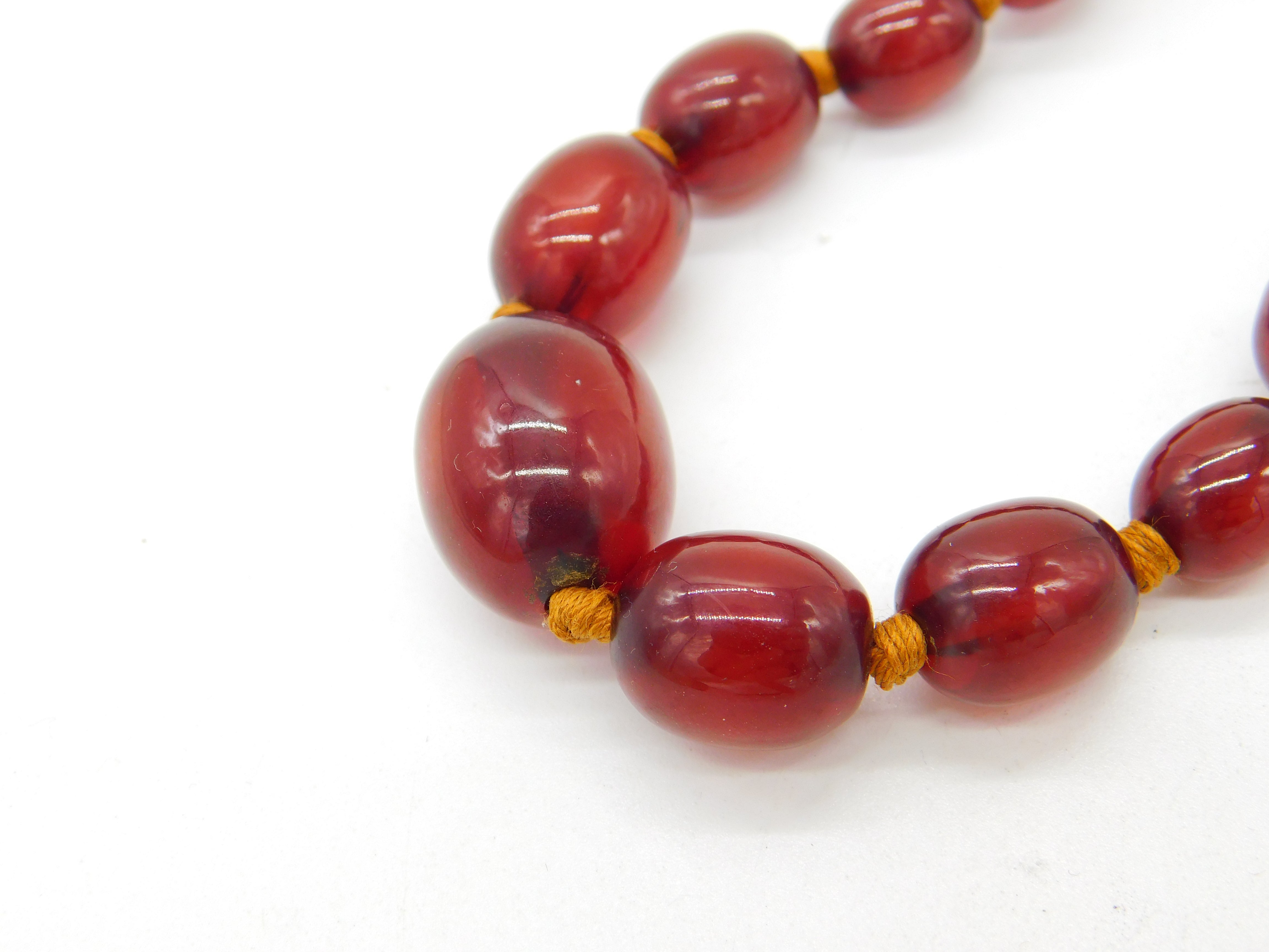 Graduated Cherry Amber Bakelite Necklace Sterling Silver Clasp 20" Length