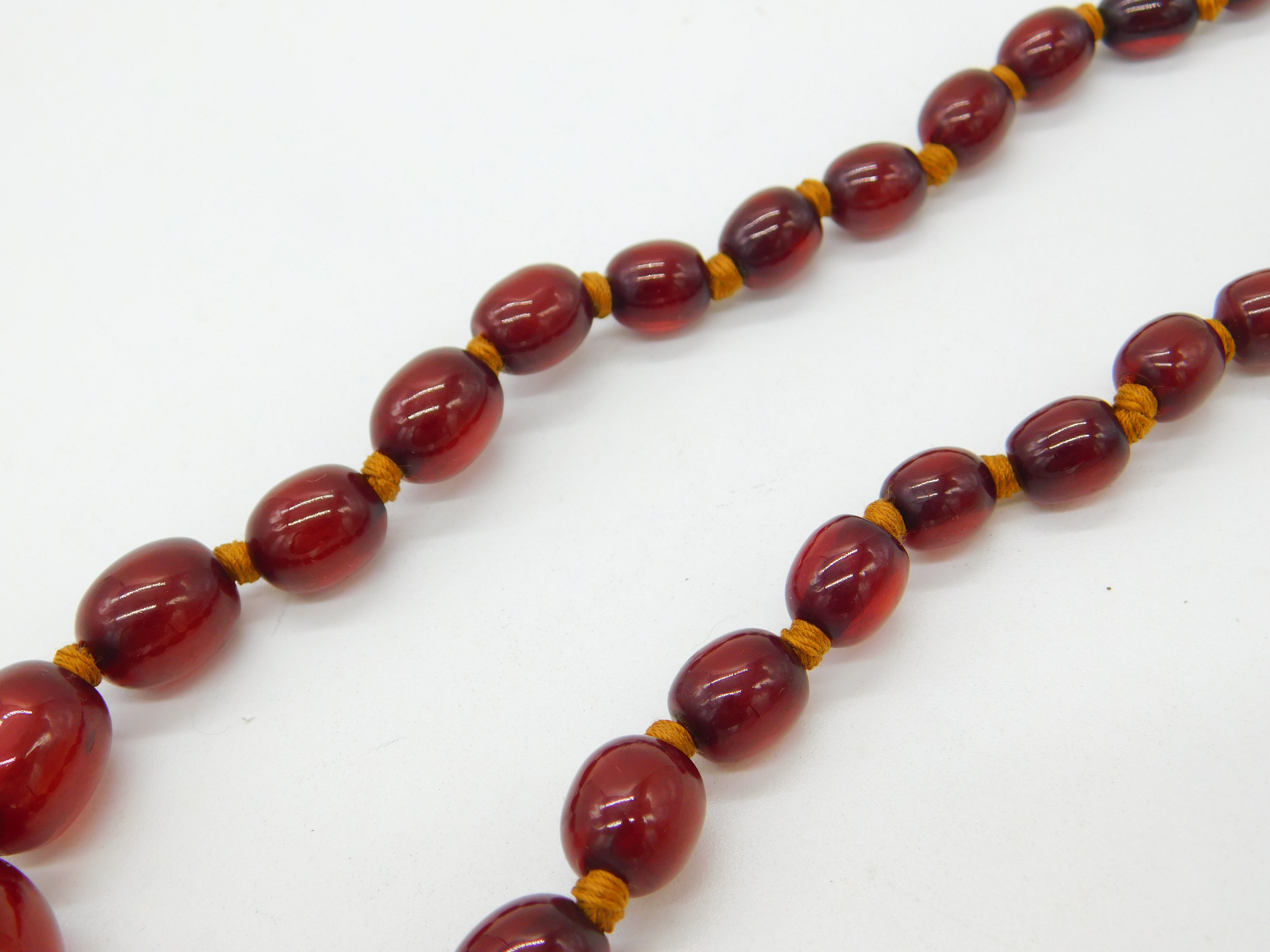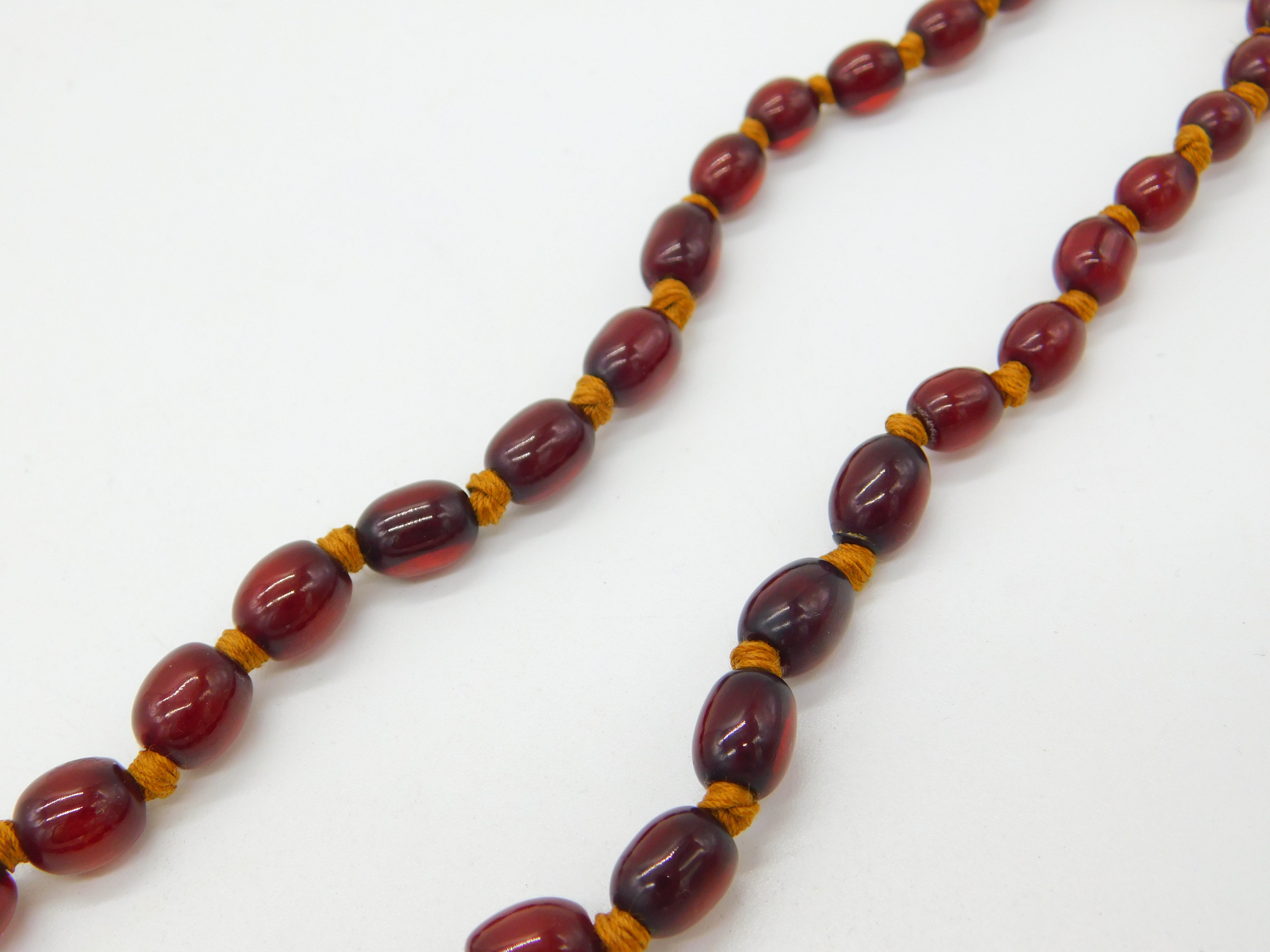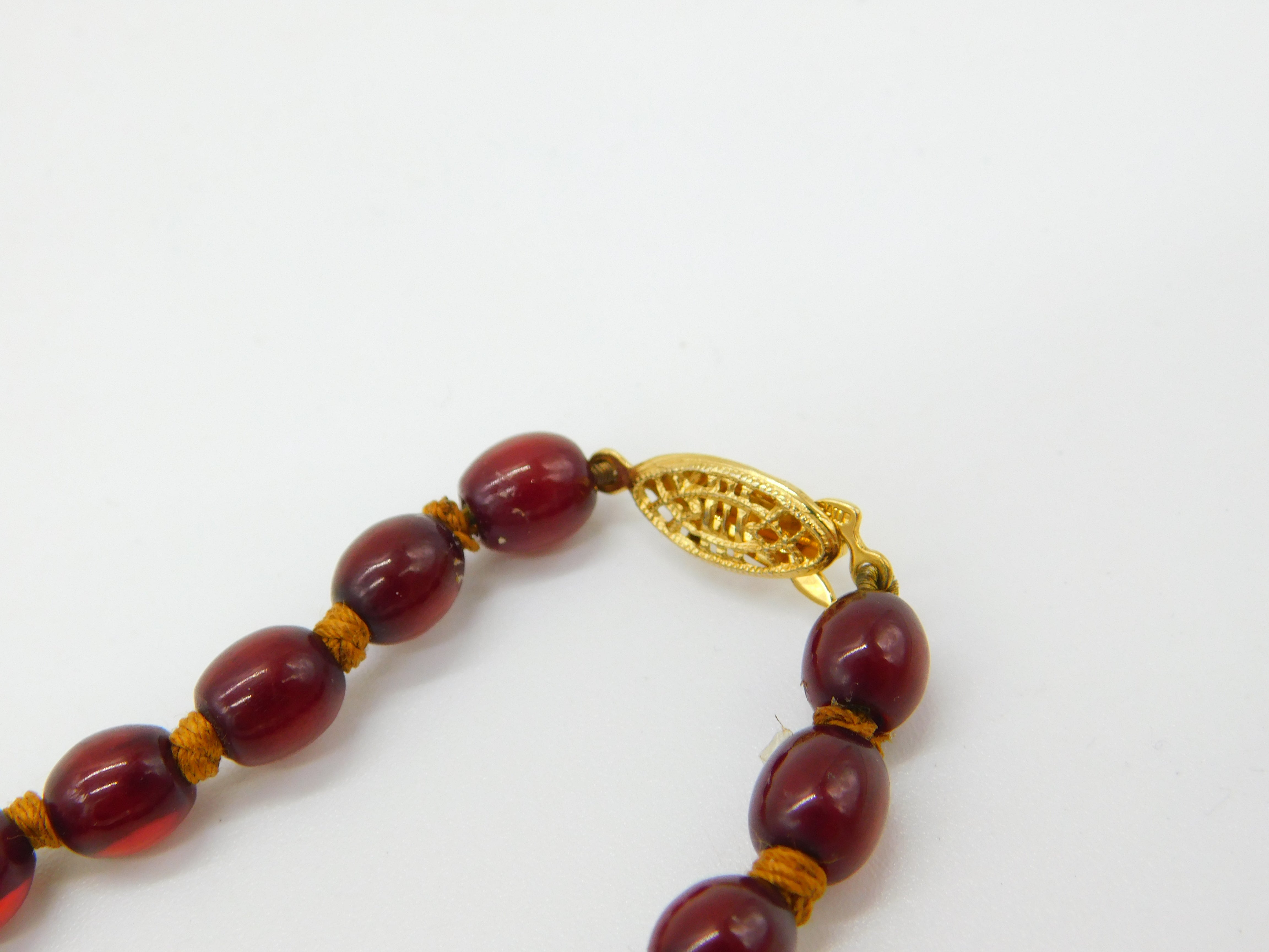 Graduated Cherry Amber Bakelite Necklace Sterling Silver Clasp 20" Length