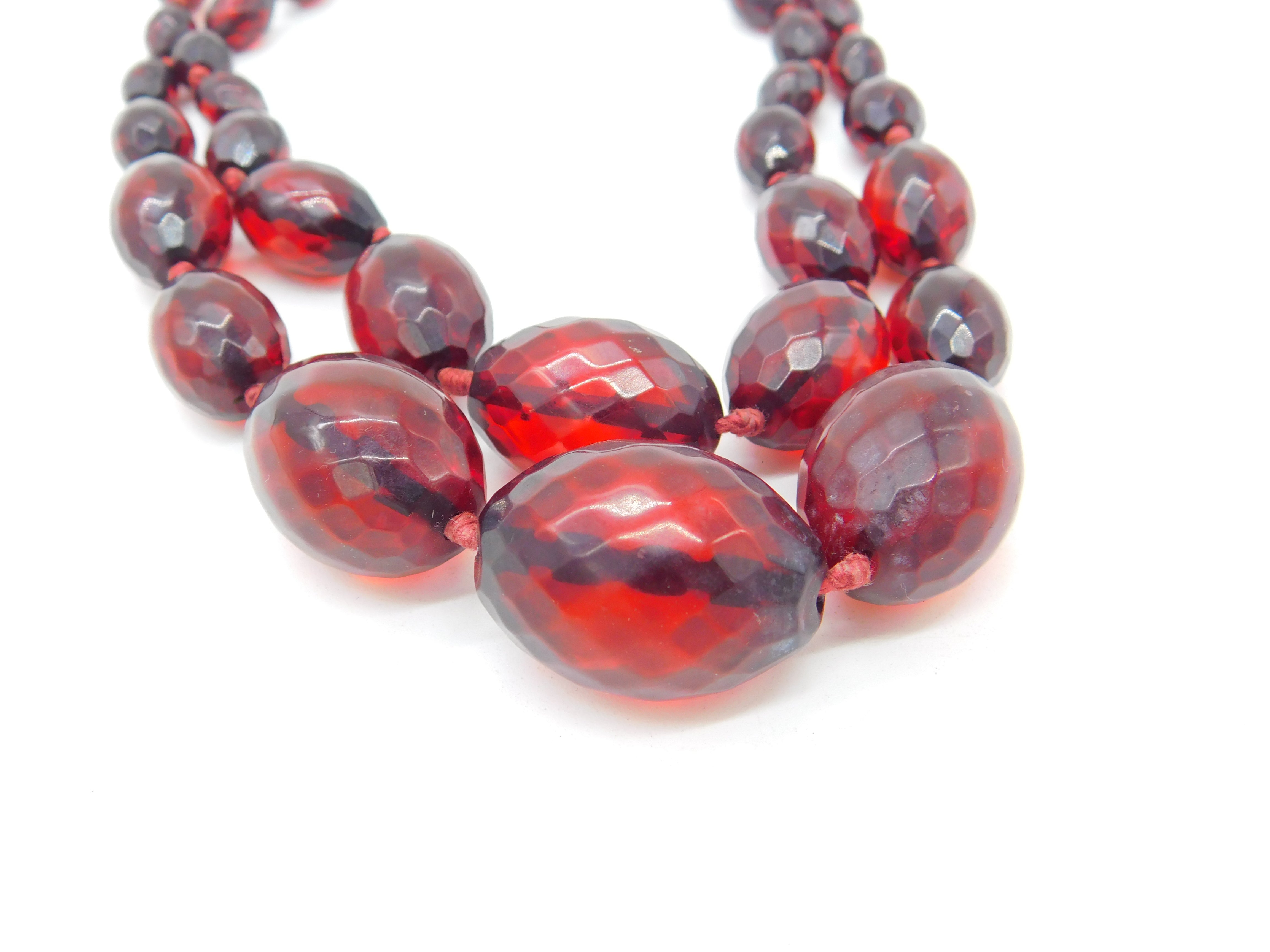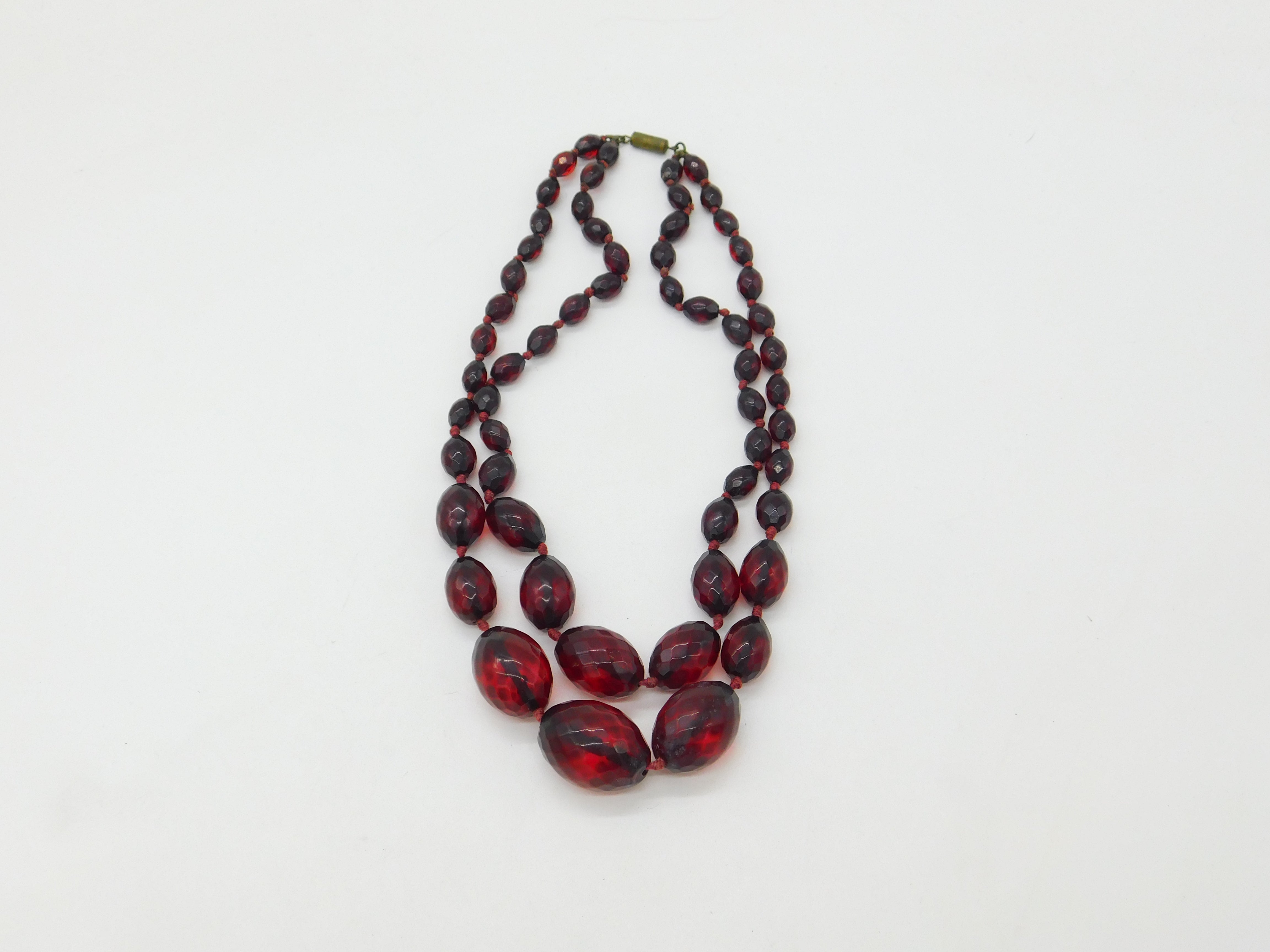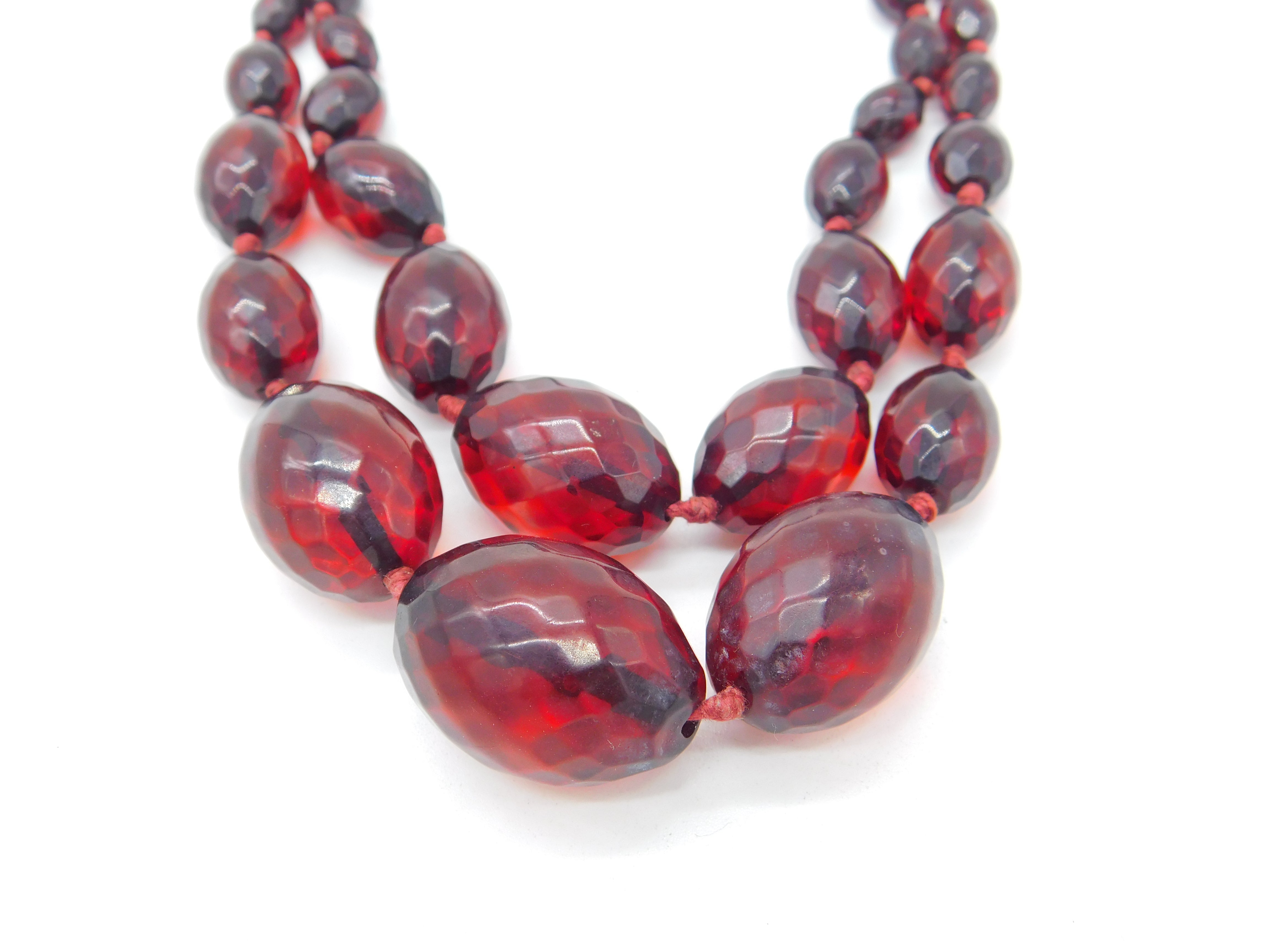 Graduated Faceted Cherry Amber Bakelite Double Strand Necklace Antique c1920