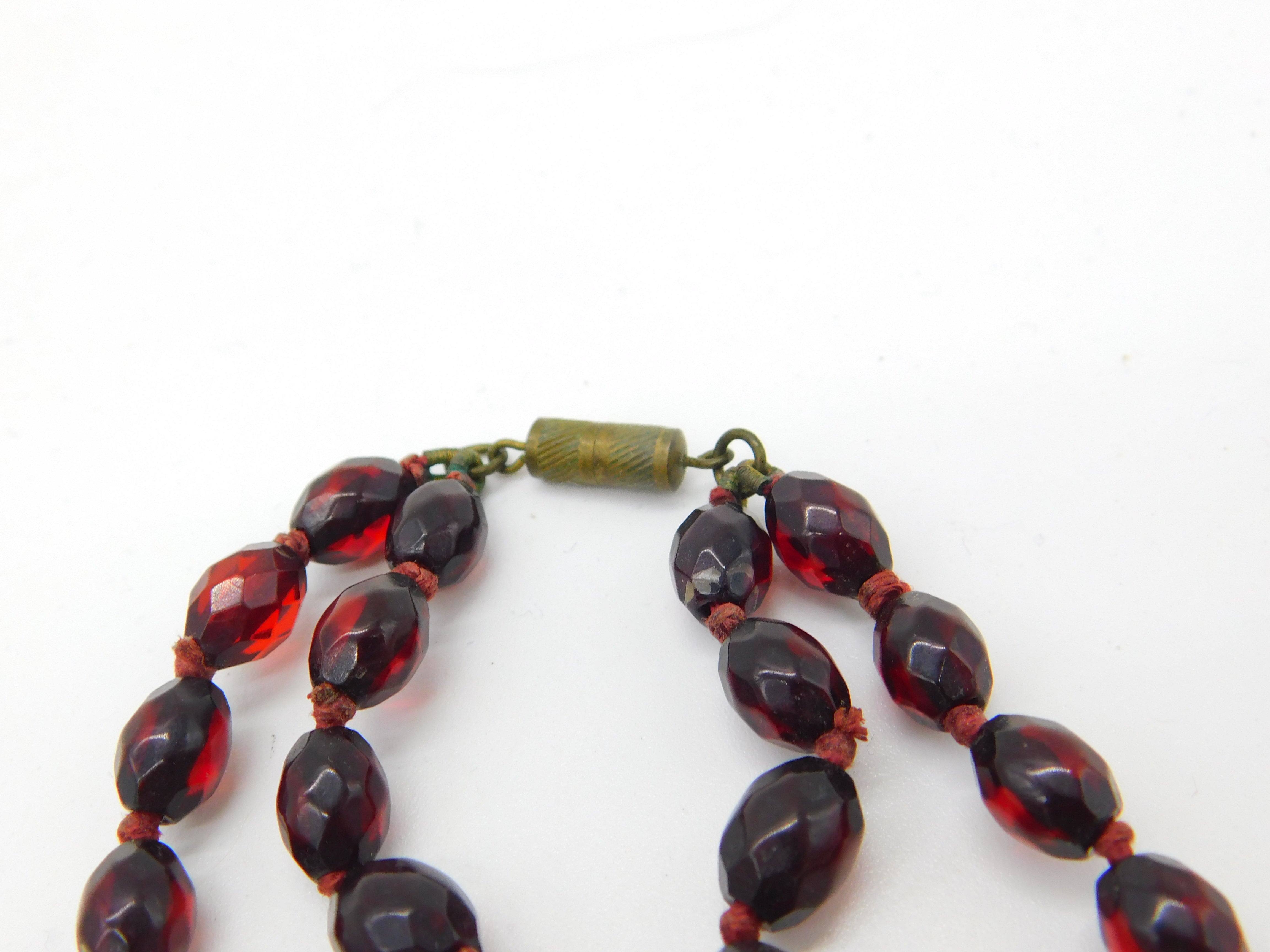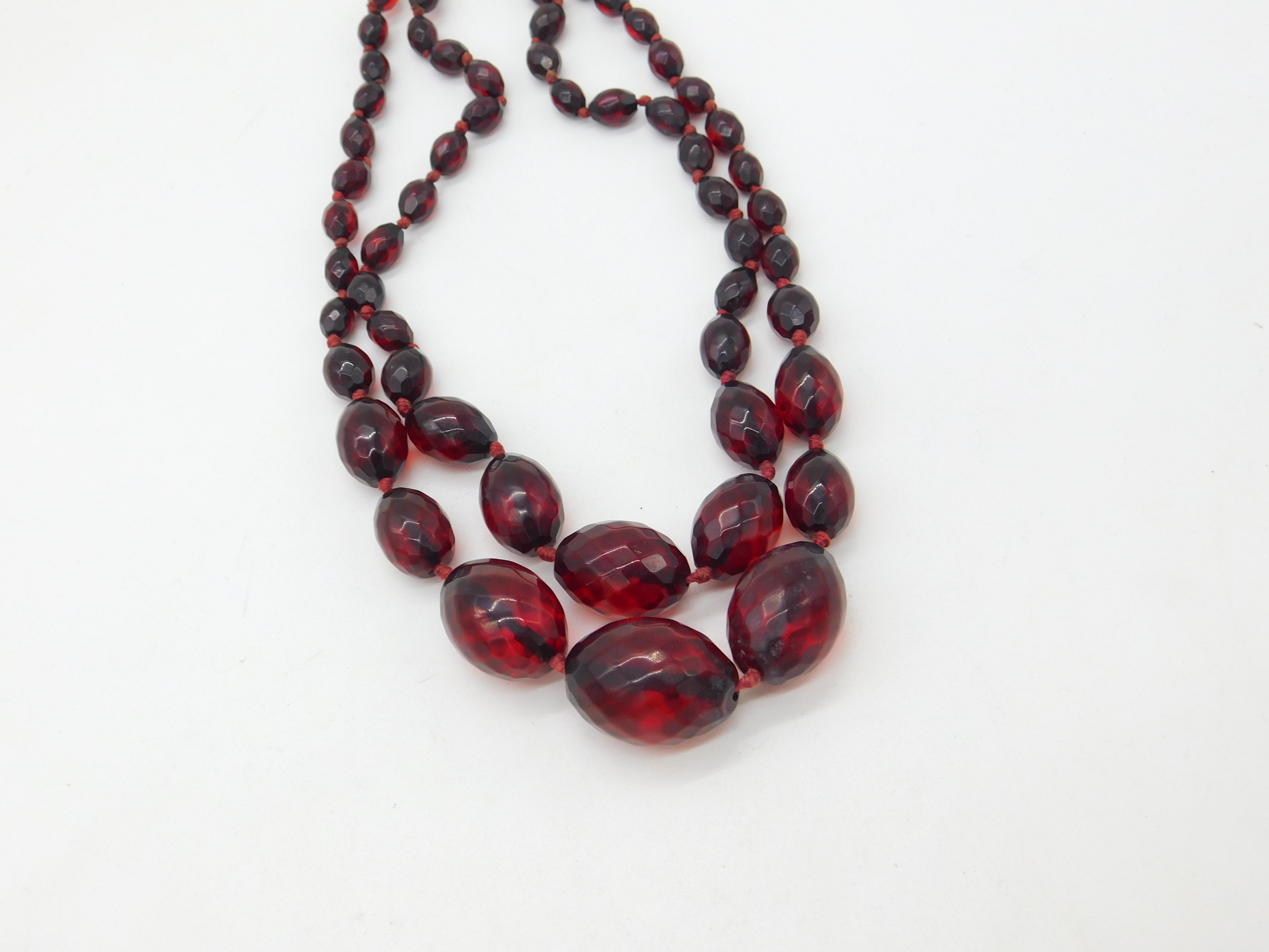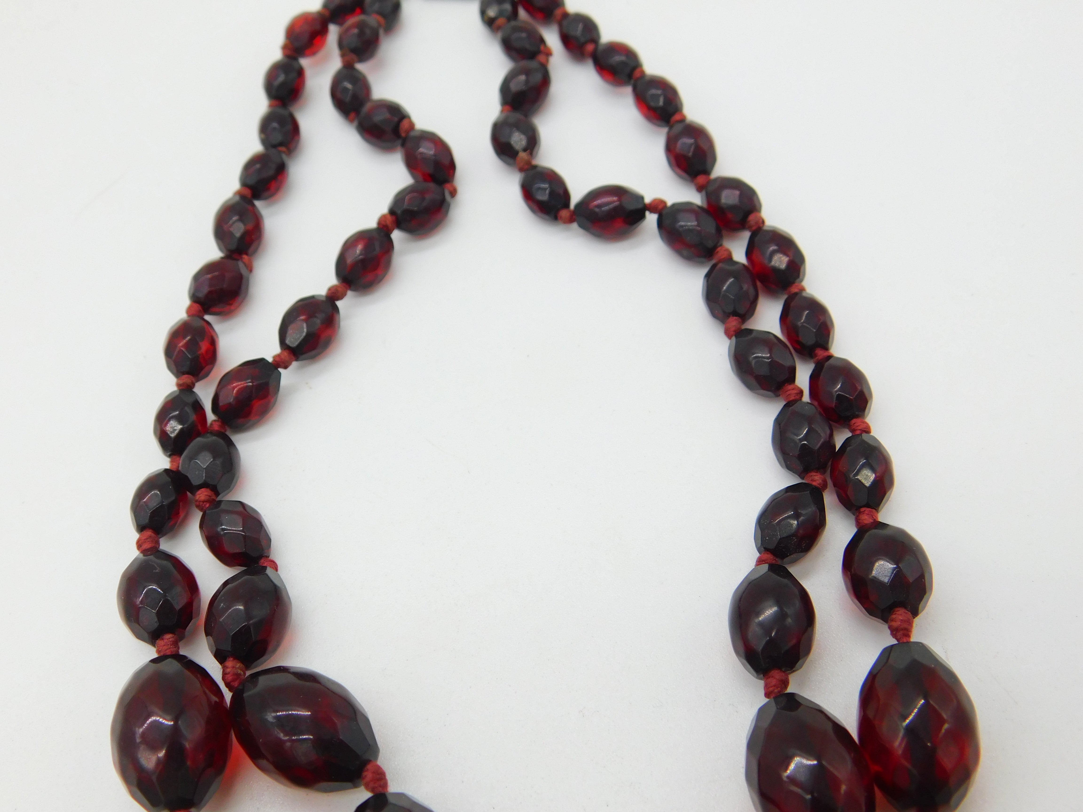 Graduated Faceted Cherry Amber Bakelite Double Strand Necklace Antique c1920