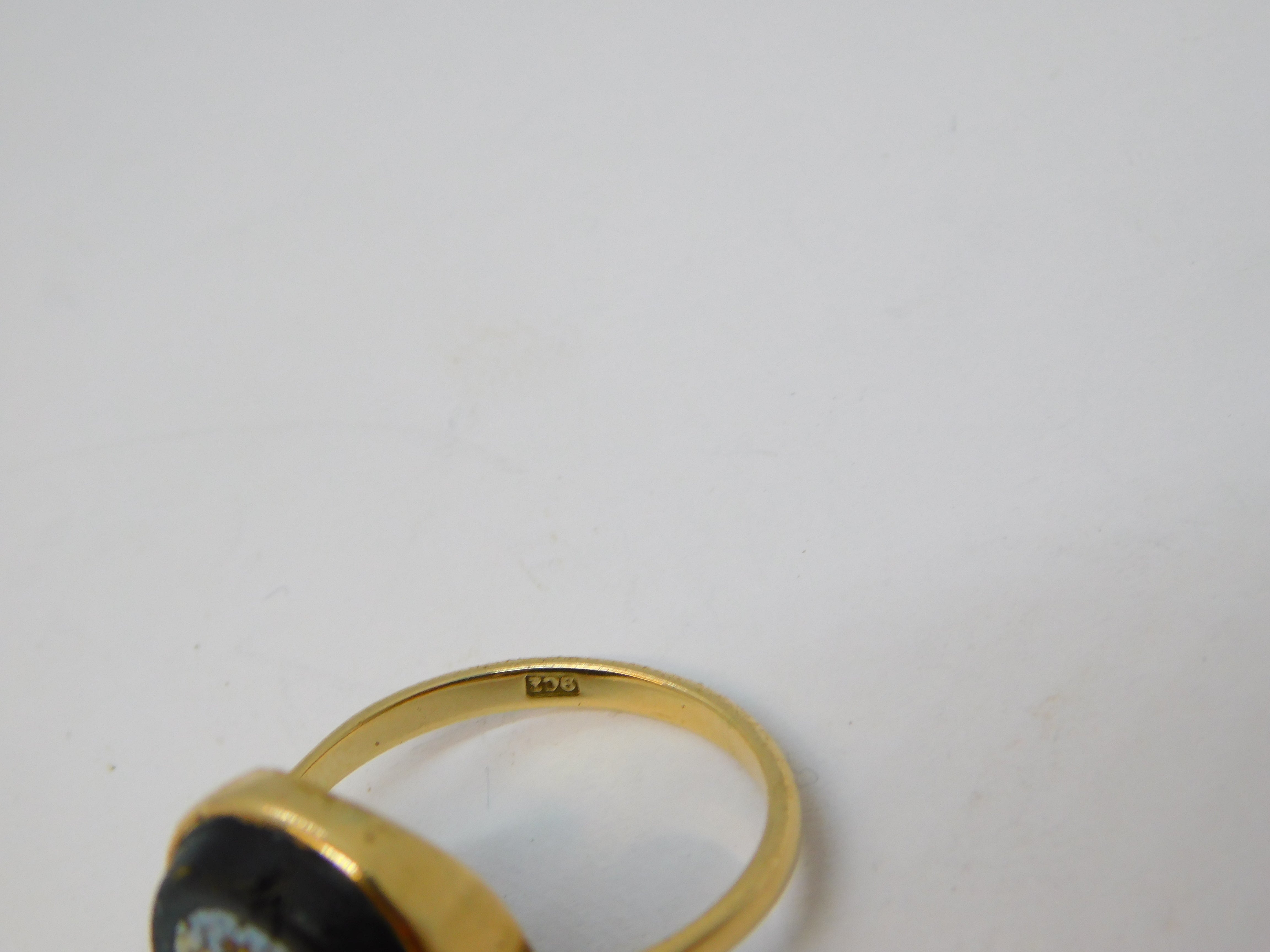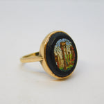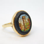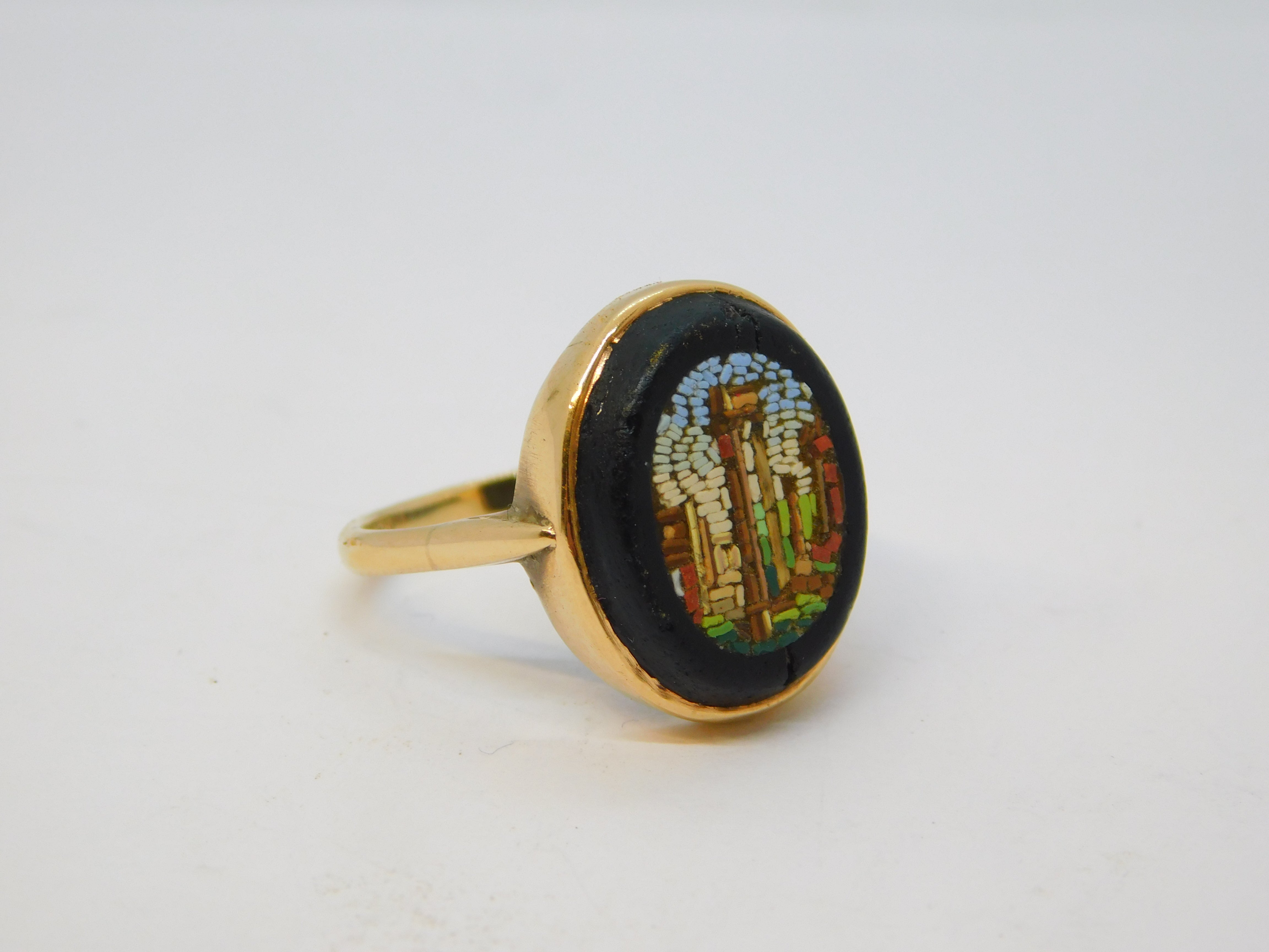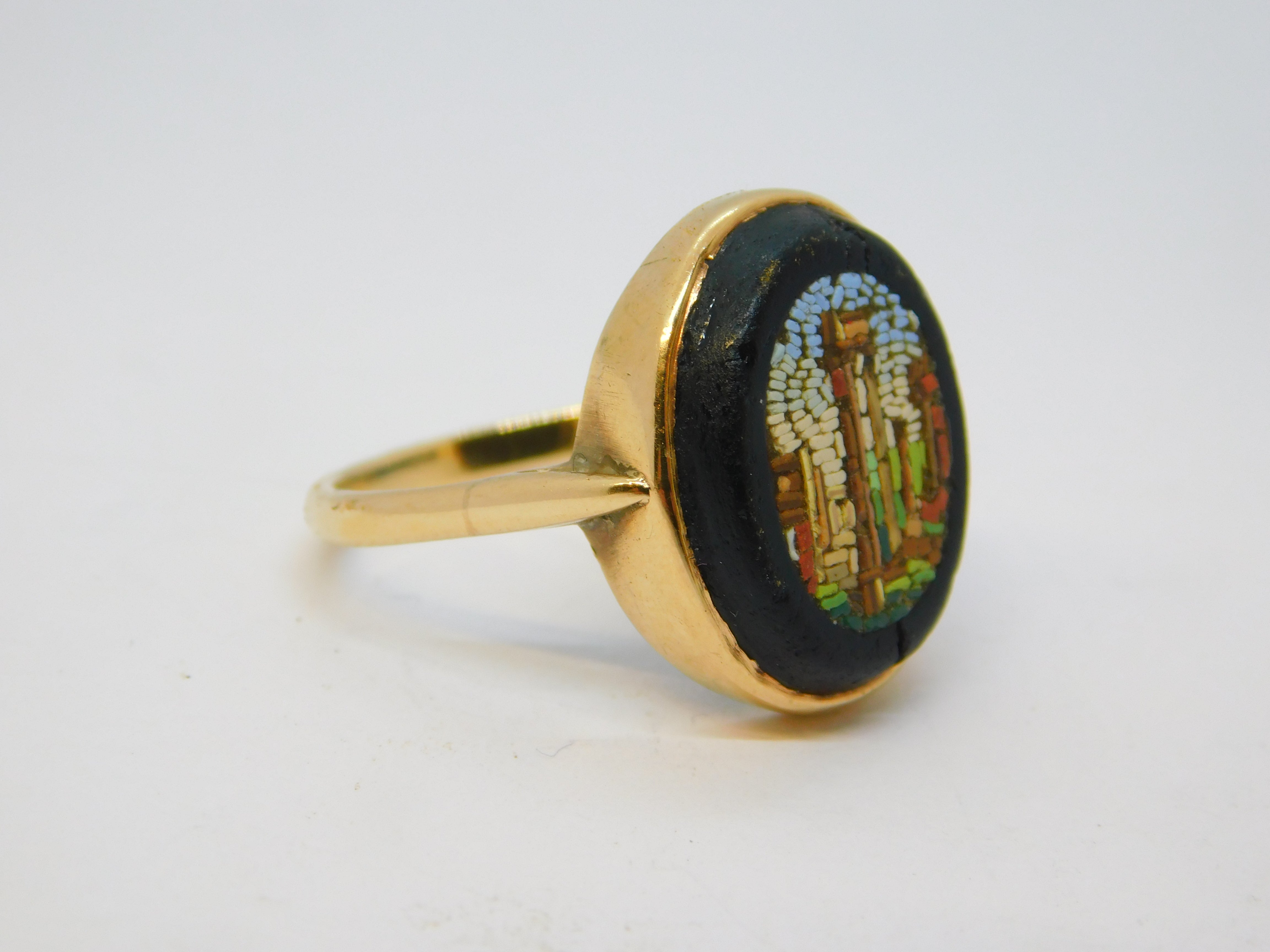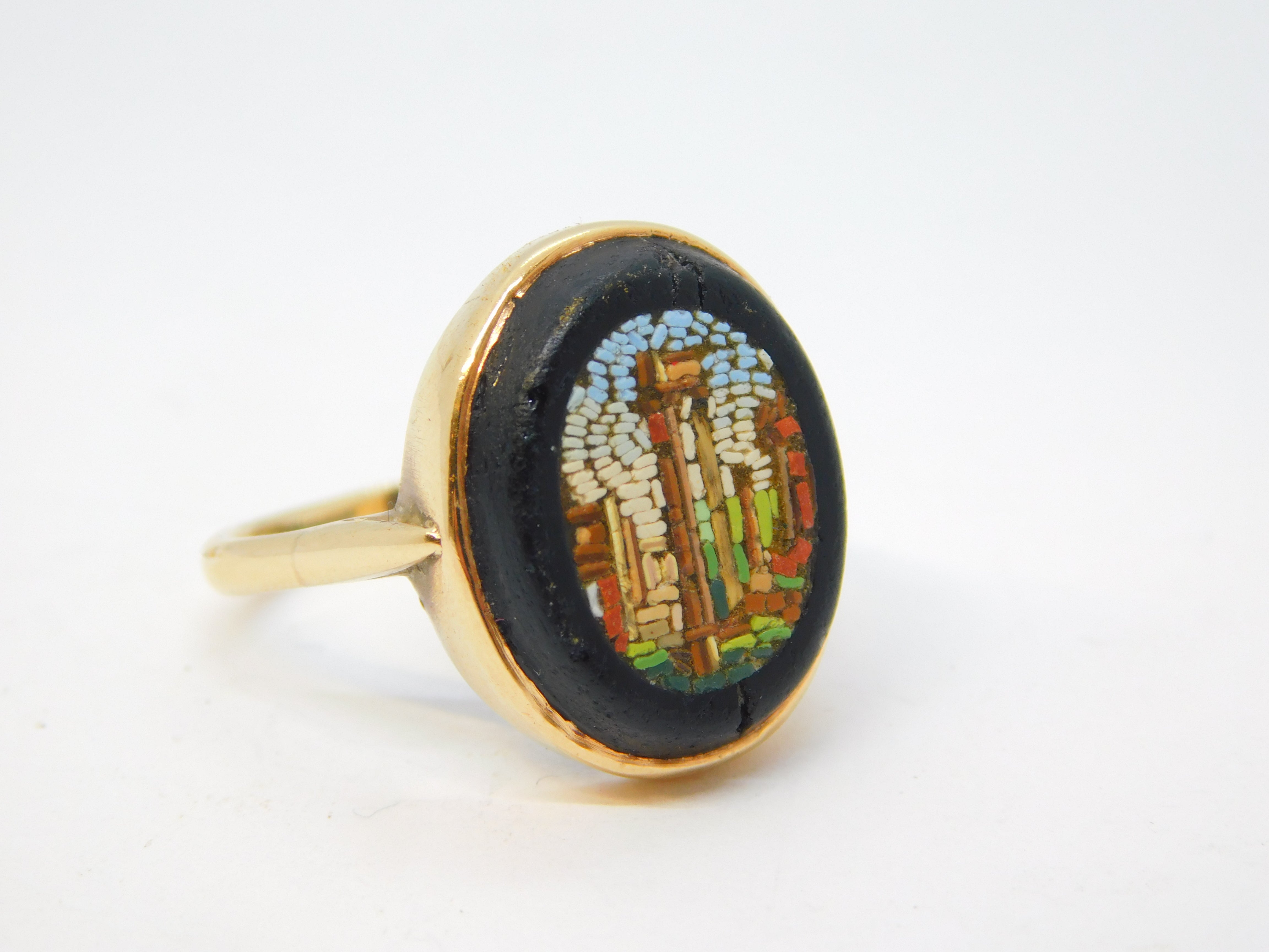 Grand Tour 9ct Gold Mounted Micro Mosaic Classical Scene Ring Antique c1830