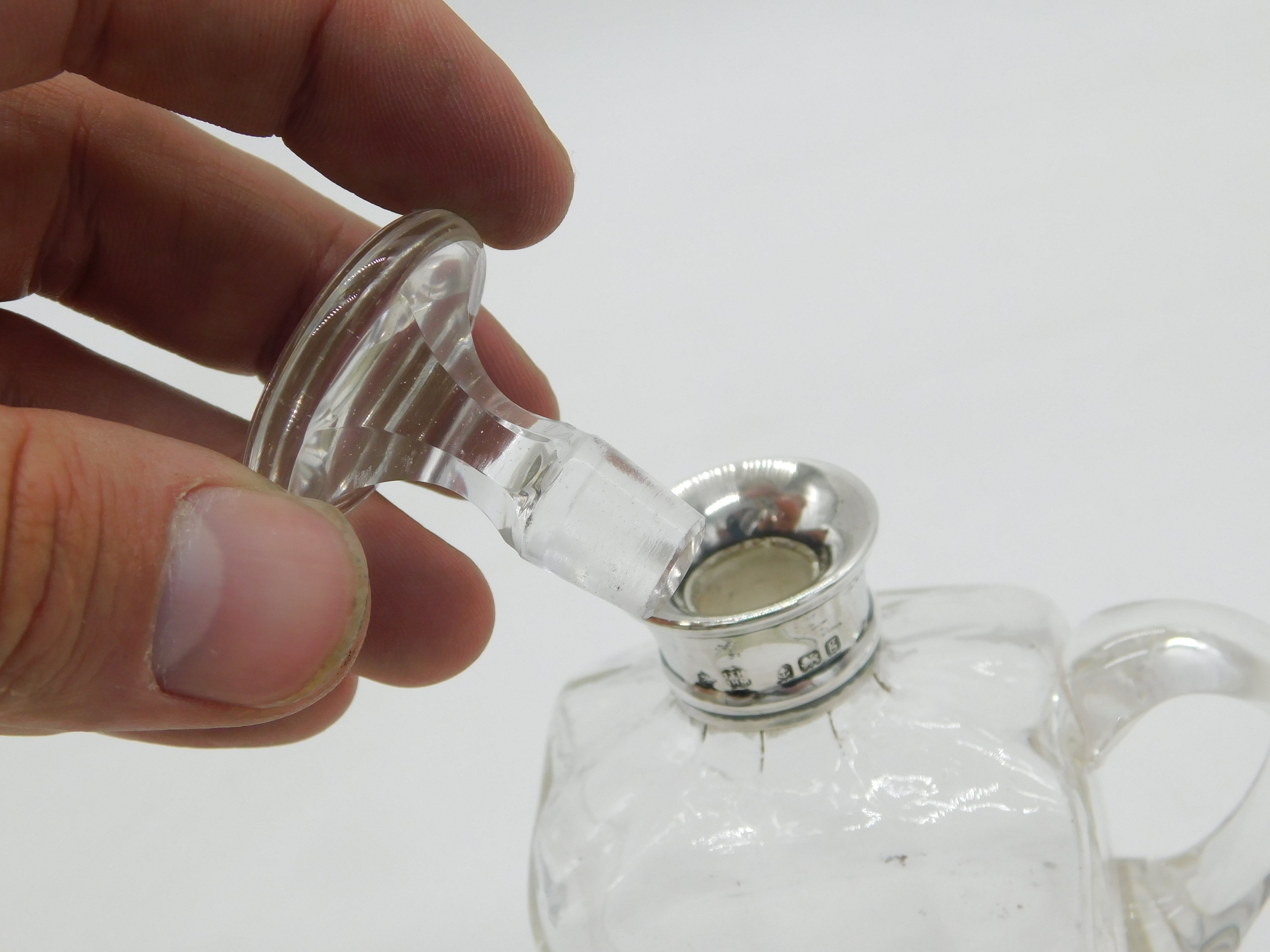 Hukin & Heath Edwardian Sterling Silver Mounted Brandy Bottle Antique 1906 Birmingham