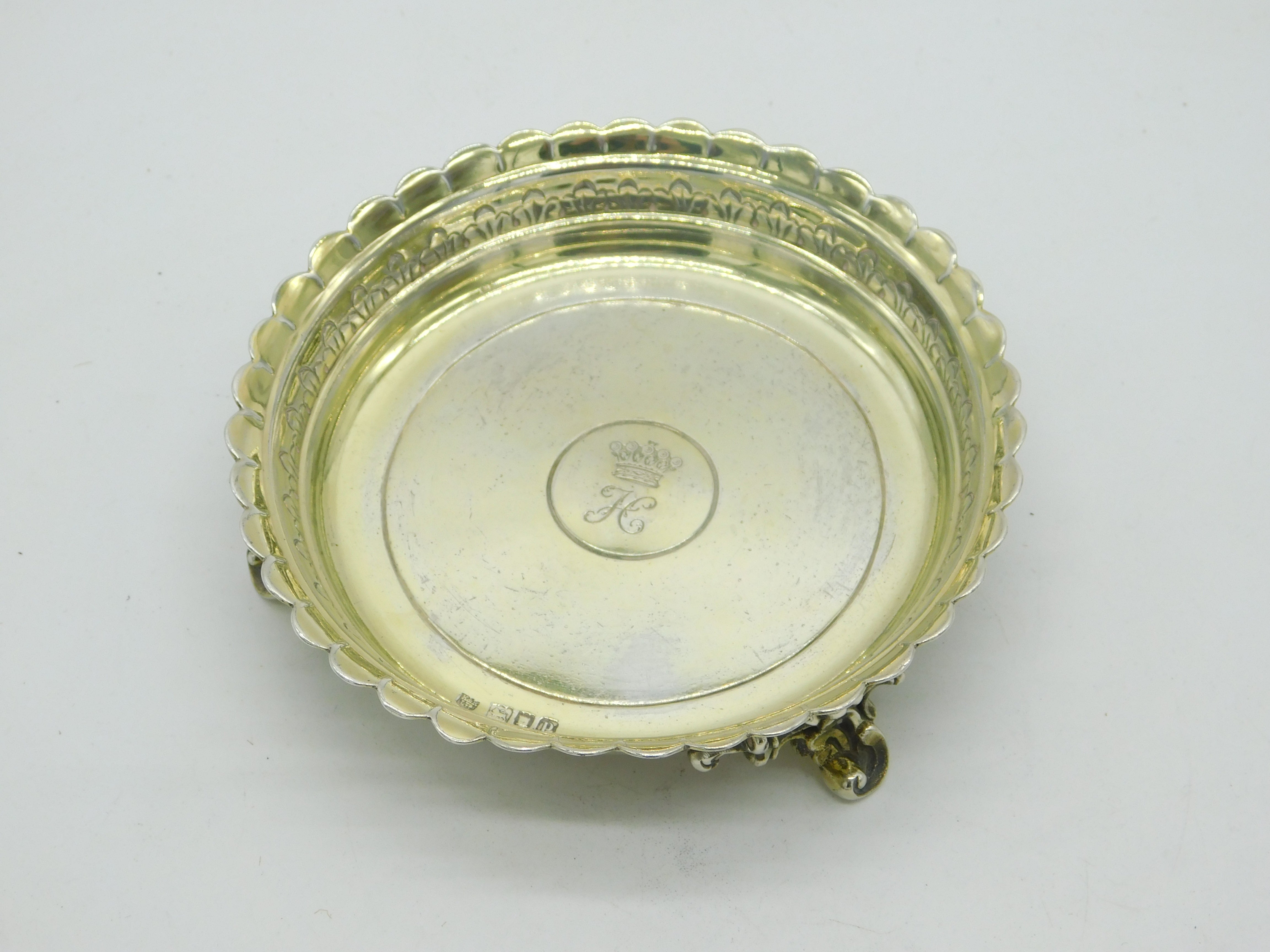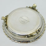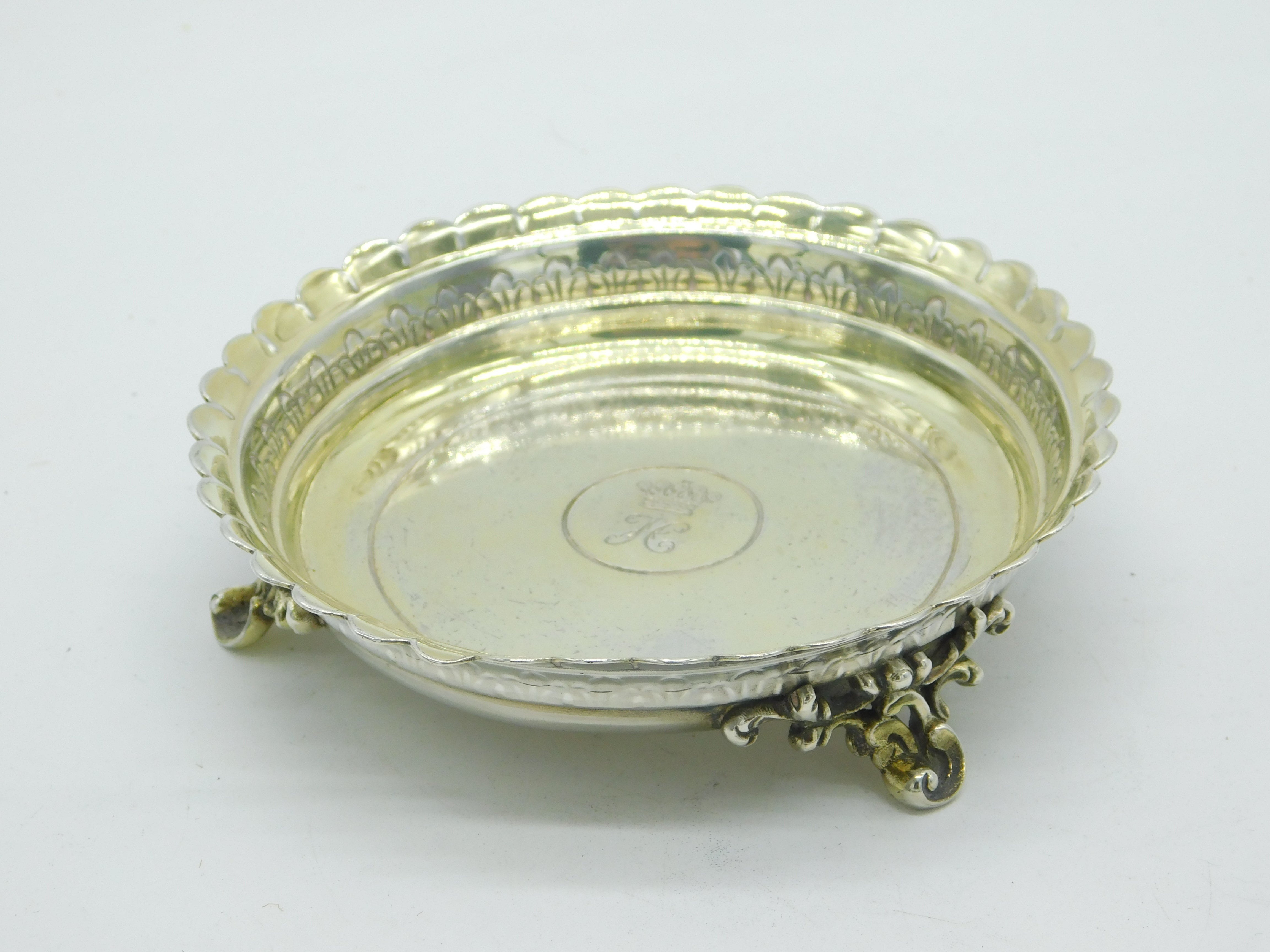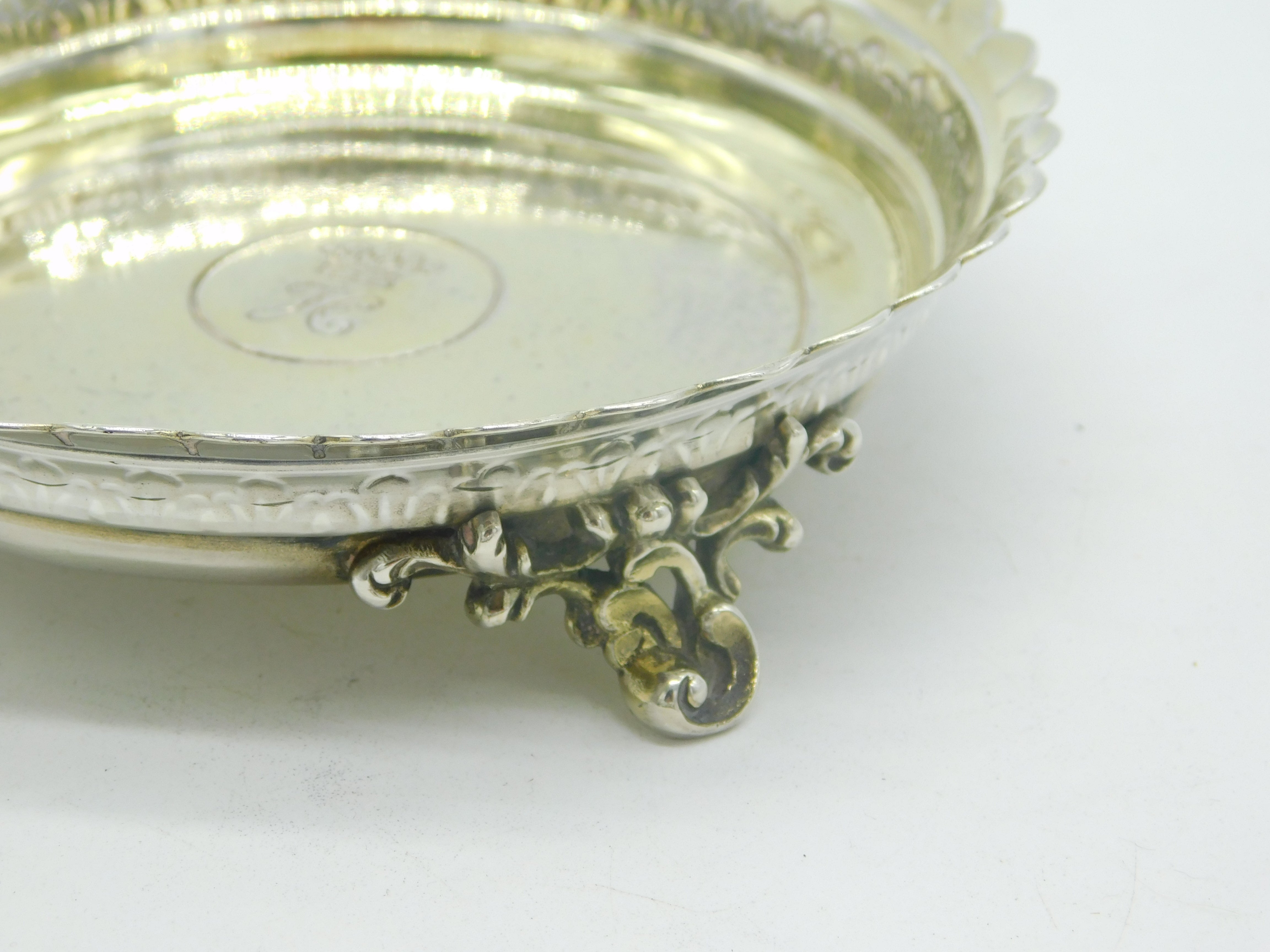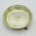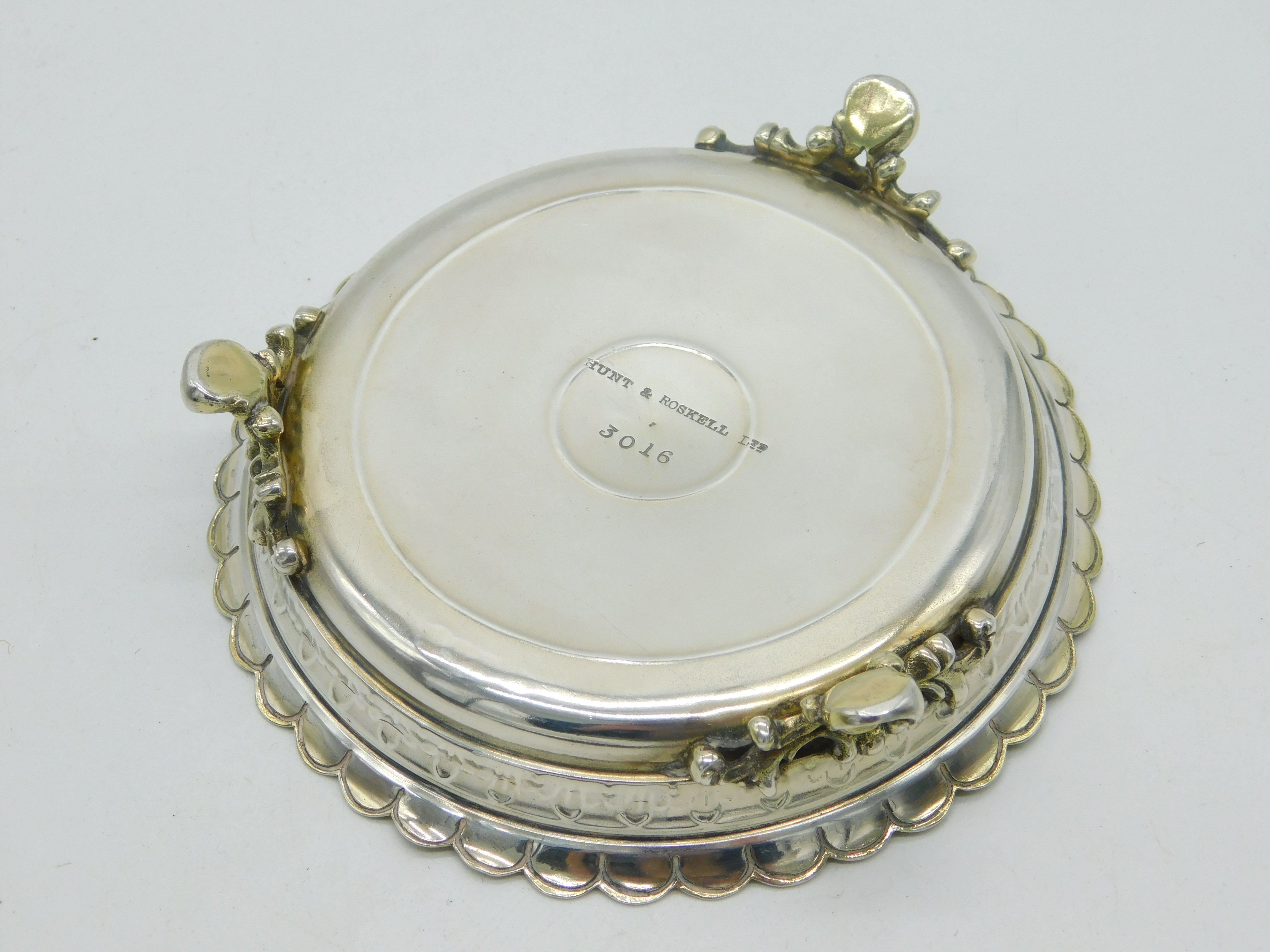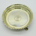Details: A fantastic and wonderfully designed antique Edwardian sterling silver gilded glass coaster dish with charming nouveau feet engraved with charming crest to the centre showing a coronet over H initial hallmarked London 1910 by Hunt & Roskell the prestigious silver manufacturers who bore the warrant of Queen Victoria for many years found by Paul Storr. This is a wonderful item that would make a perfect gift or addition to any collection. The BOX pictured is for PRESENTATION ONLY and is NOT included in the listings but used to frame the pictures unless specifically stated otherwise.
