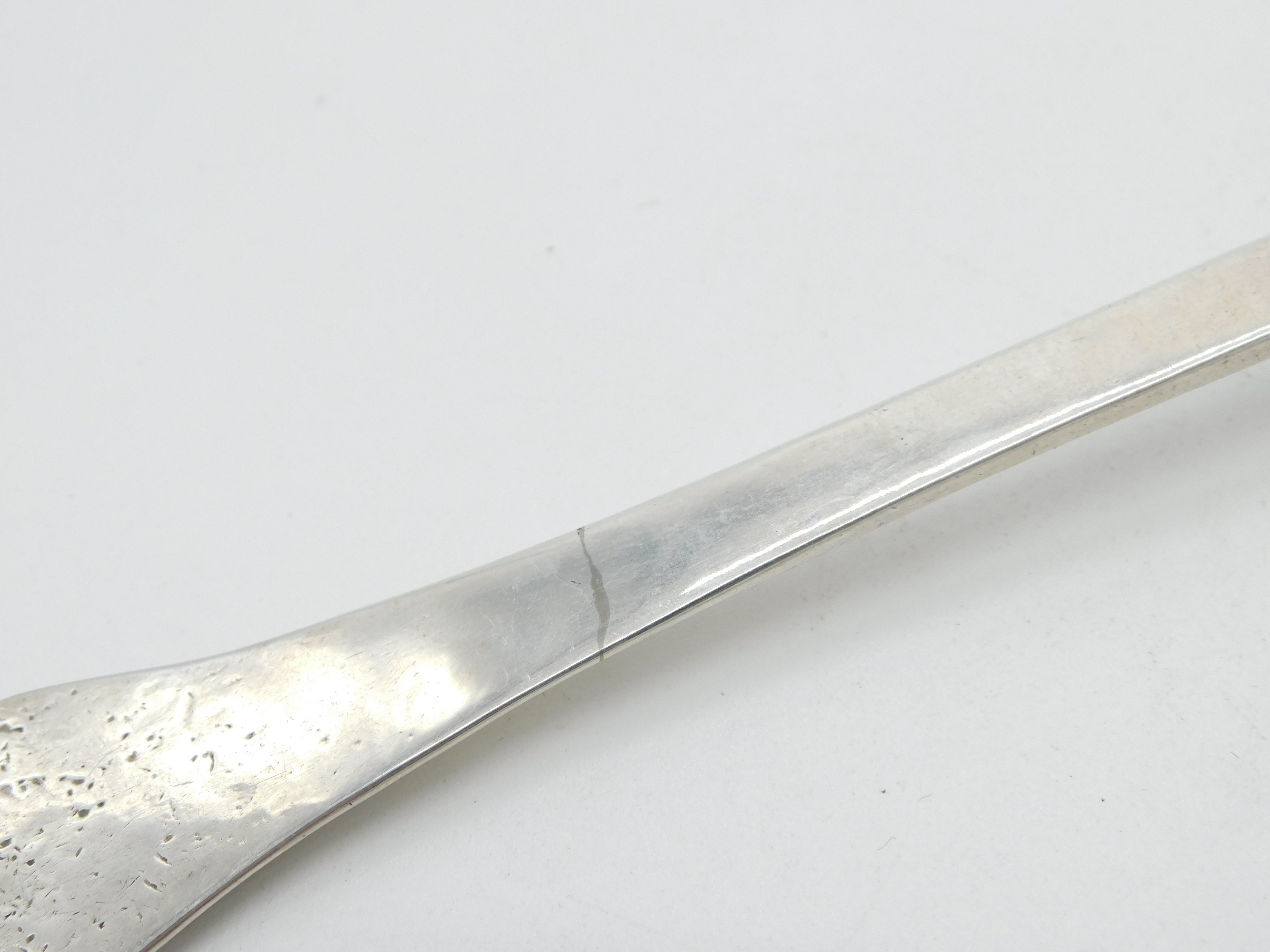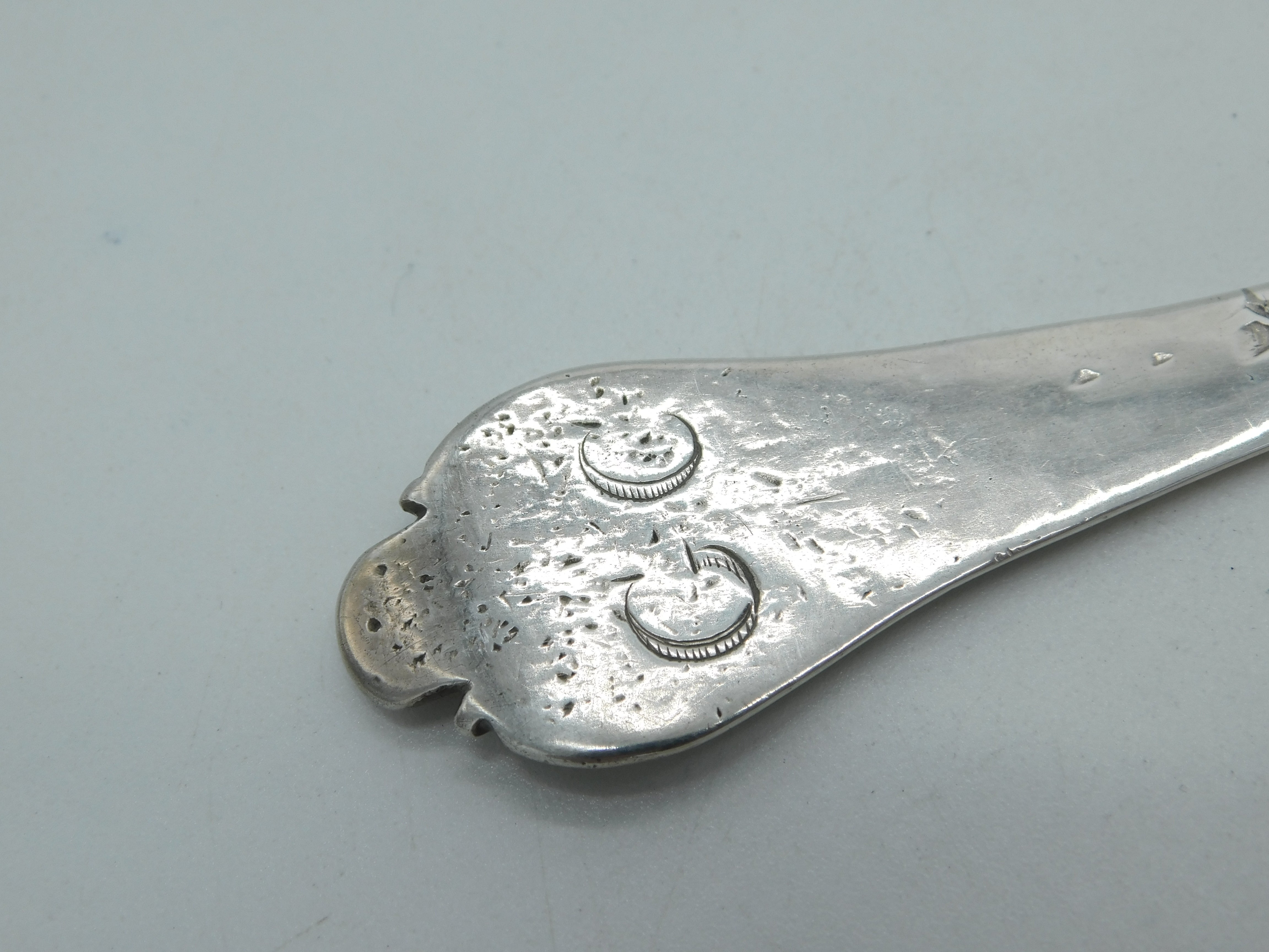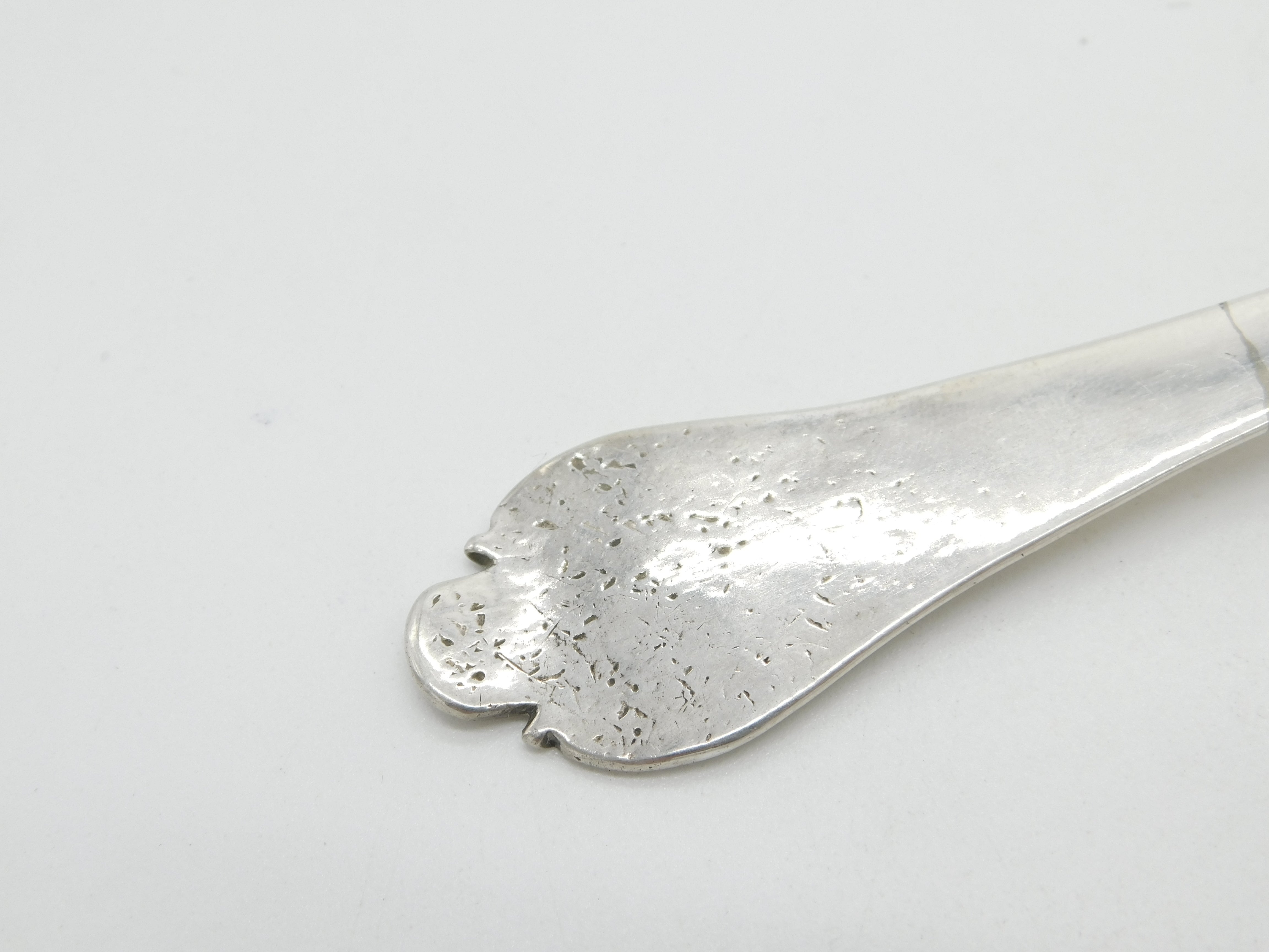 Details: A fantastic and wonderfully designed antique early King Charles II sterling silver dog nose trefid spoon with lovely planished bowl and bright cut initials 'GC' to the reverse of the terminal. The spoon is clearly hallmarked for London maker C.K believed to be Christopher Kemble (see. Mitchell) registered 1666. The date letter for 1679 can be partially observed. The spoon has a repair through the stem next to the date letter and marks to the terminal where it has been chewed over 350 years of use. Possible repair to the bowl as well although this is challenging to make out. This is a wonderful item that would make a perfect gift or addition to any collection. The BOX pictured is for PRESENTATION ONLY and is NOT included in the listings but used to frame the pictures unless specifically stated otherwise.