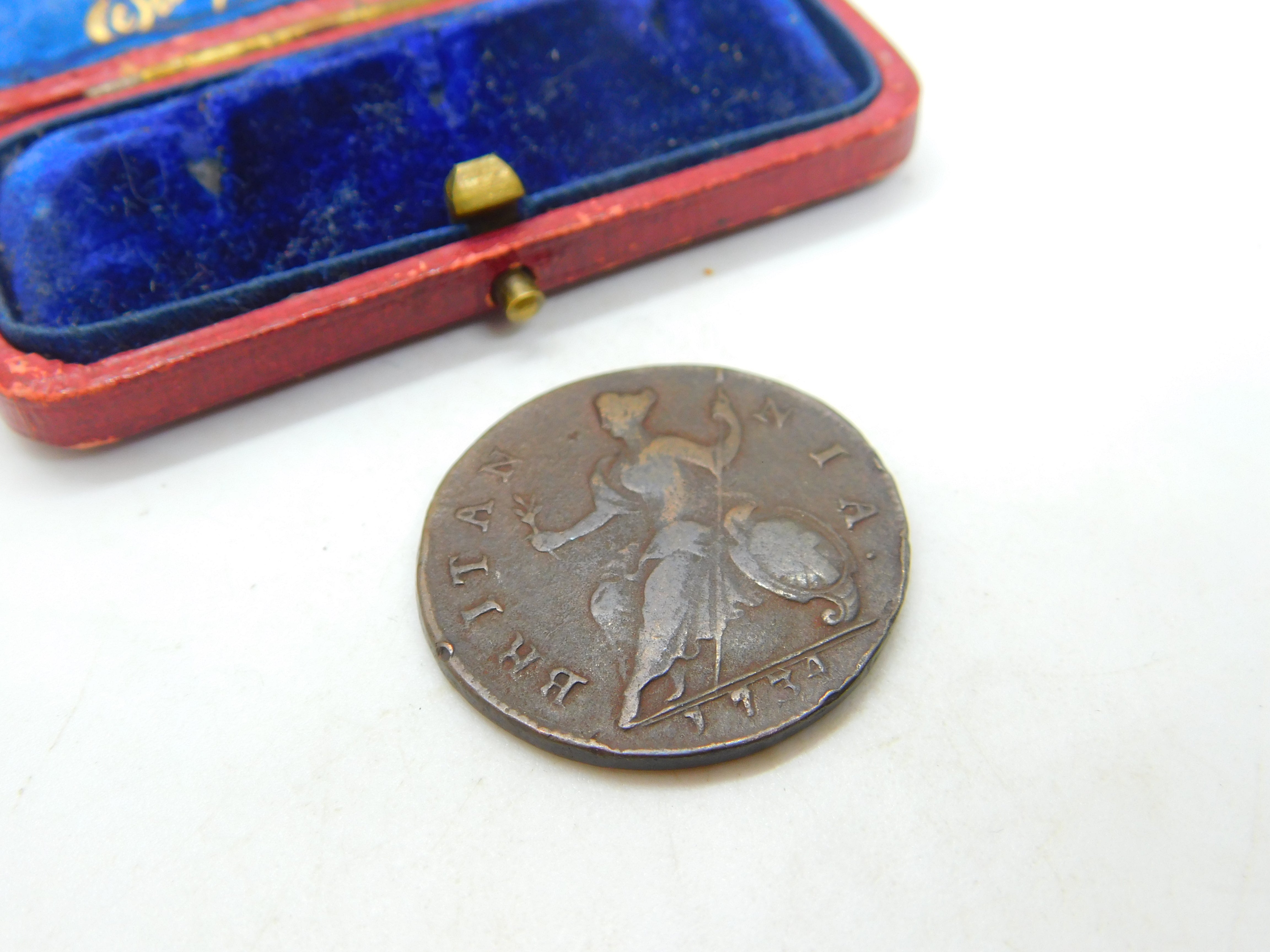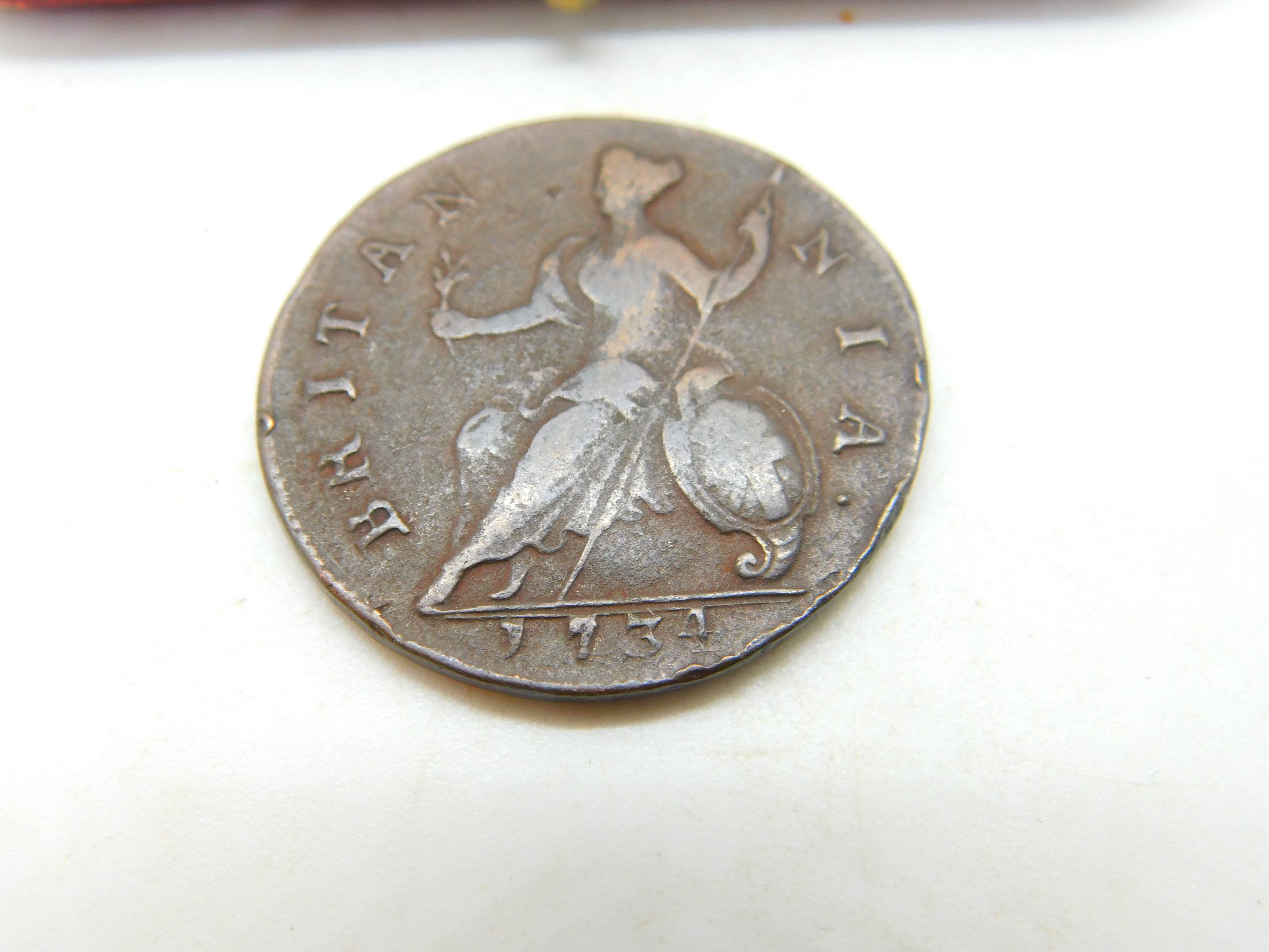 King George II Half Penny Coin 1734 Fine-Very Fine Antique Early Georgian