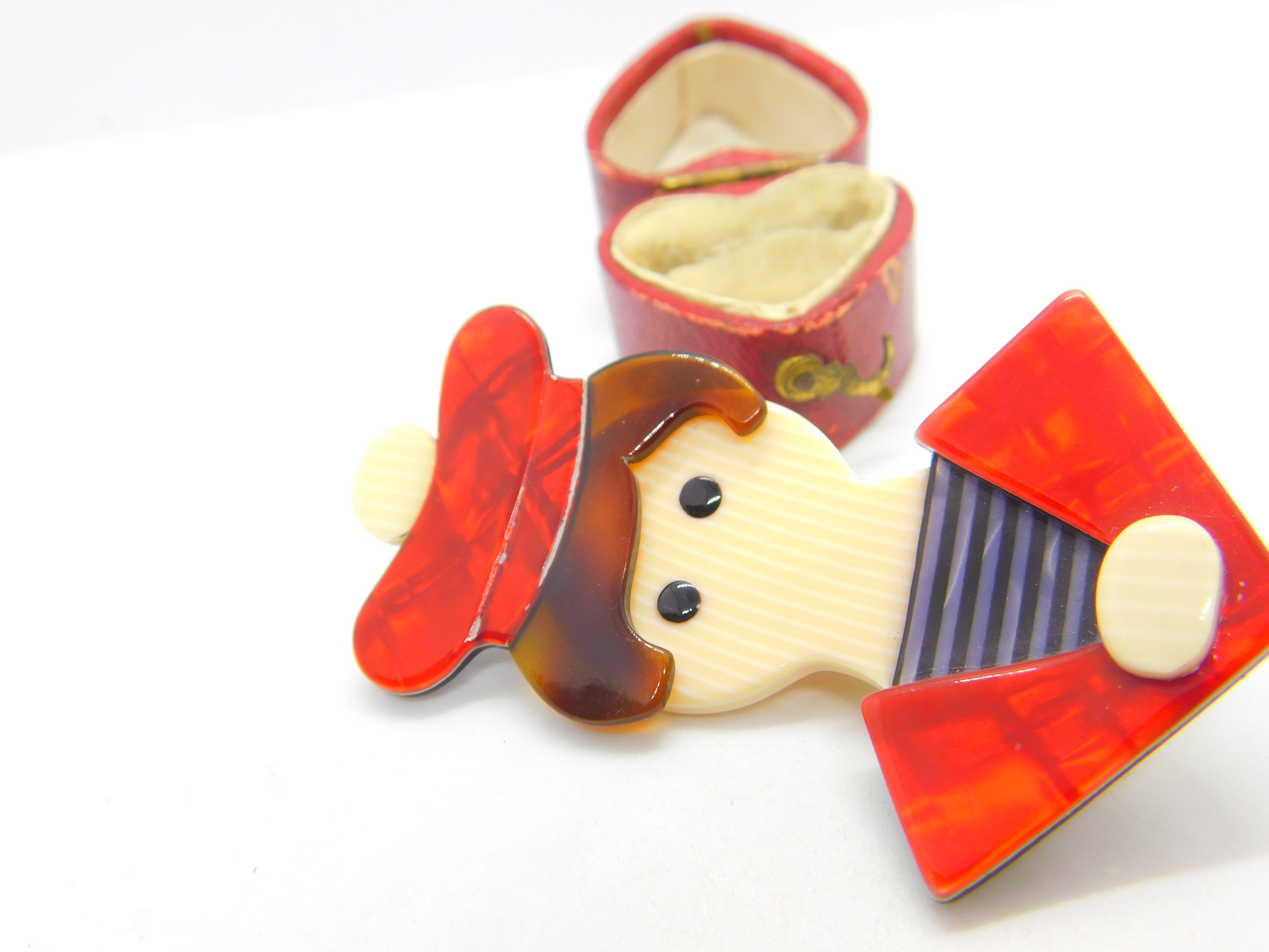 Simply iconic, this is a wonderful and very collectable Lea Stein of Paris brooch or pin of a lady in beret dating from the 1960's.