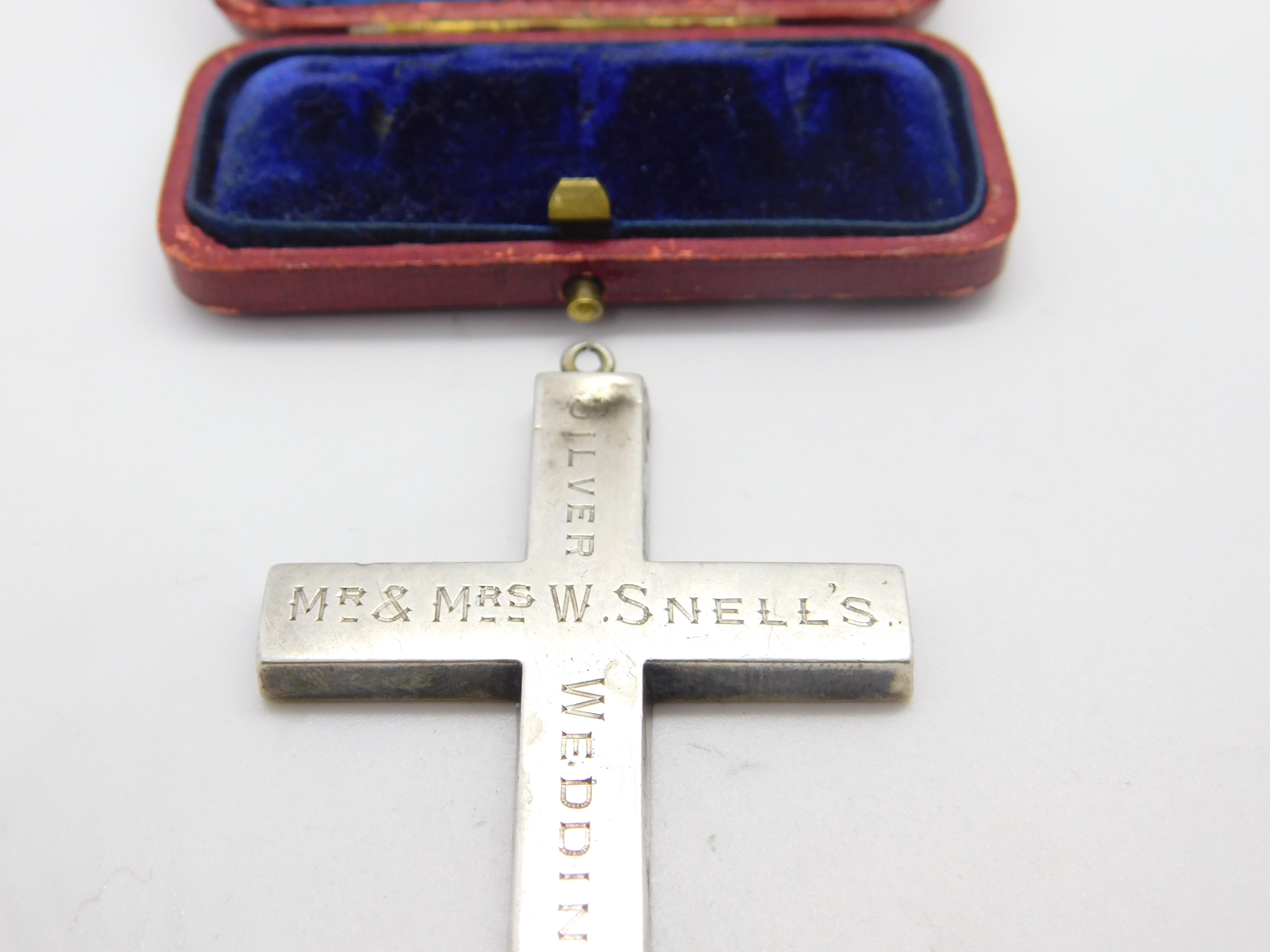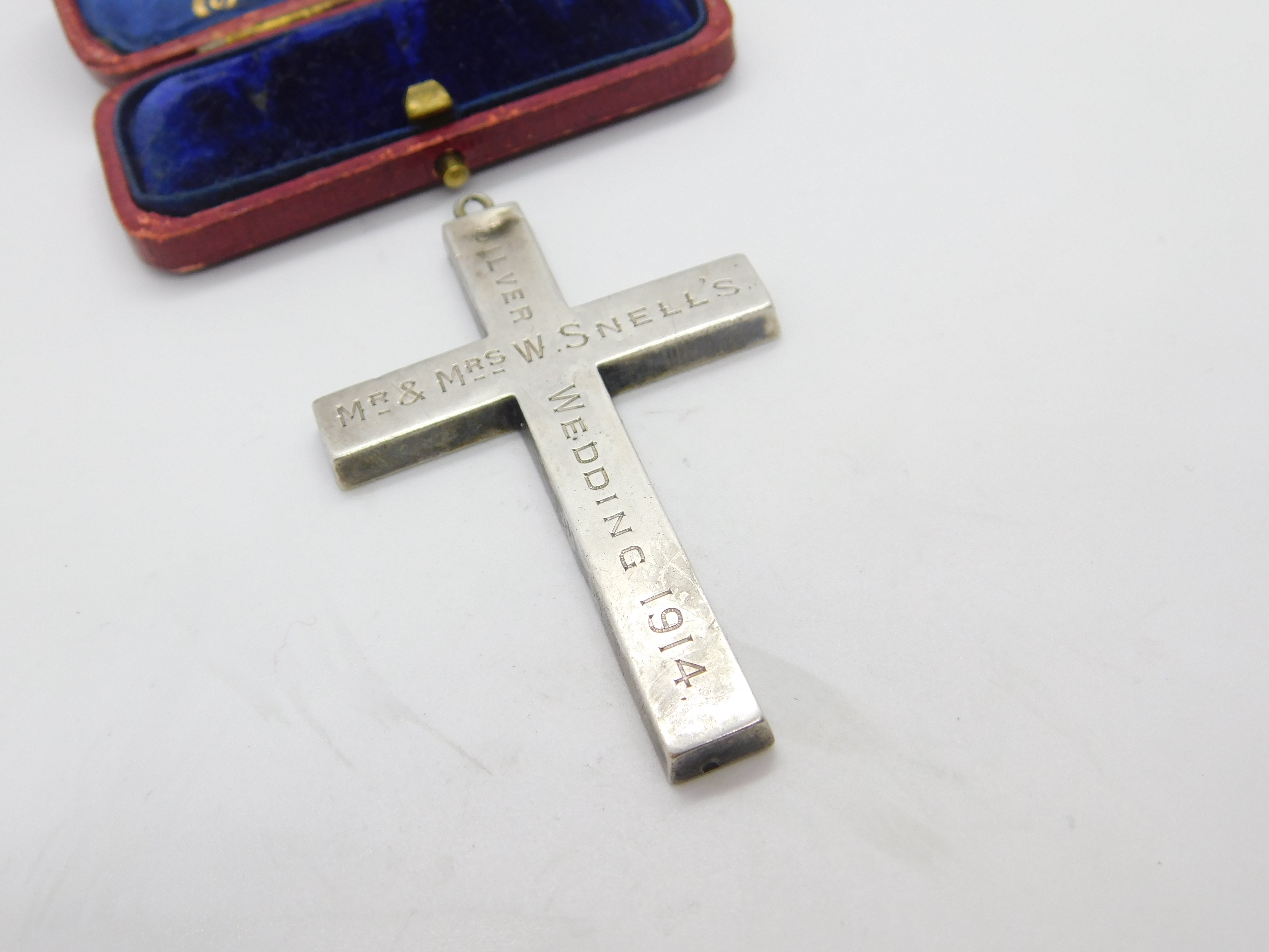 Large Sterling Silver 'Mr & Mrs W. Snell's Silver Wedding' Cross Pendant 1914