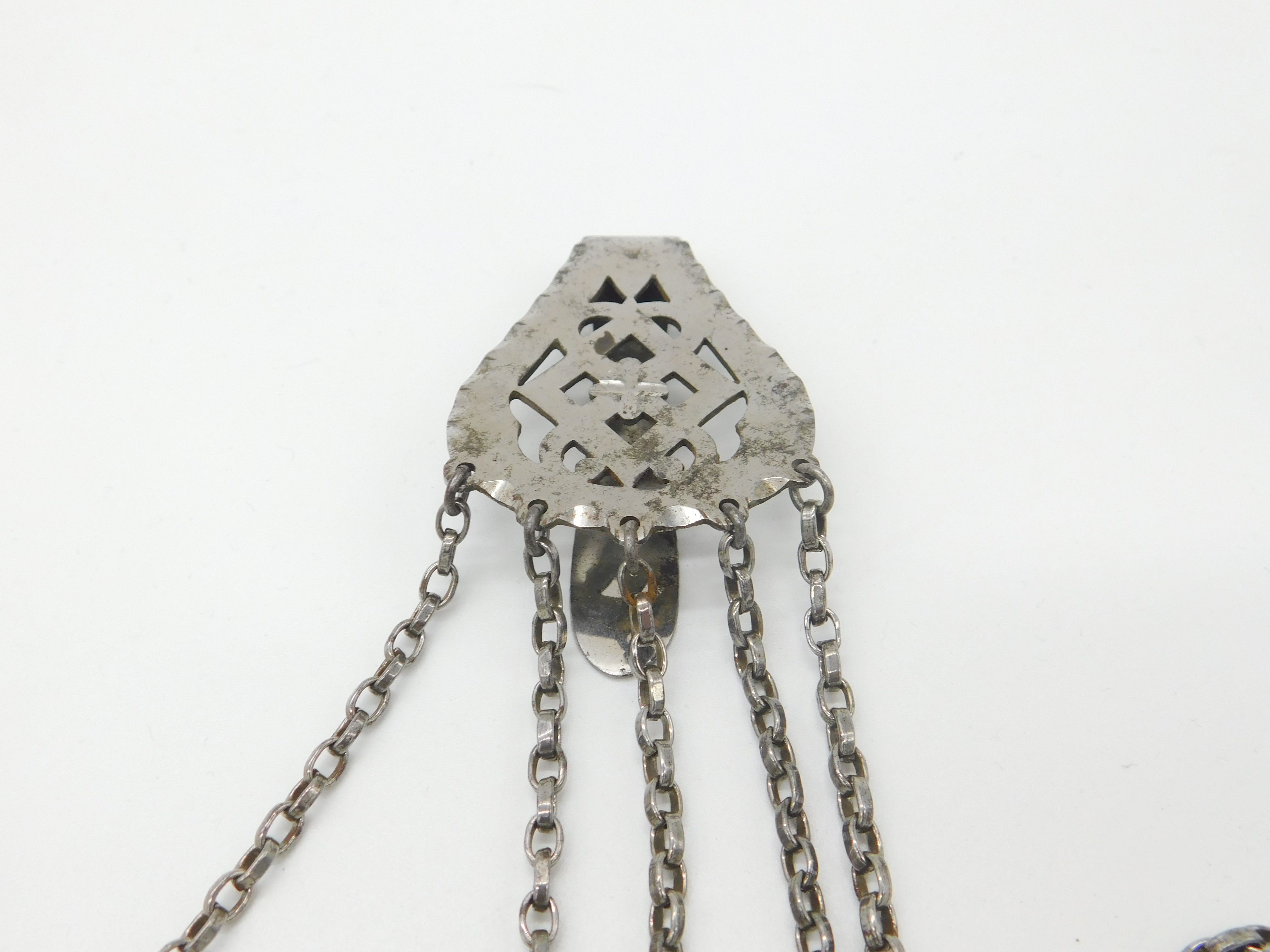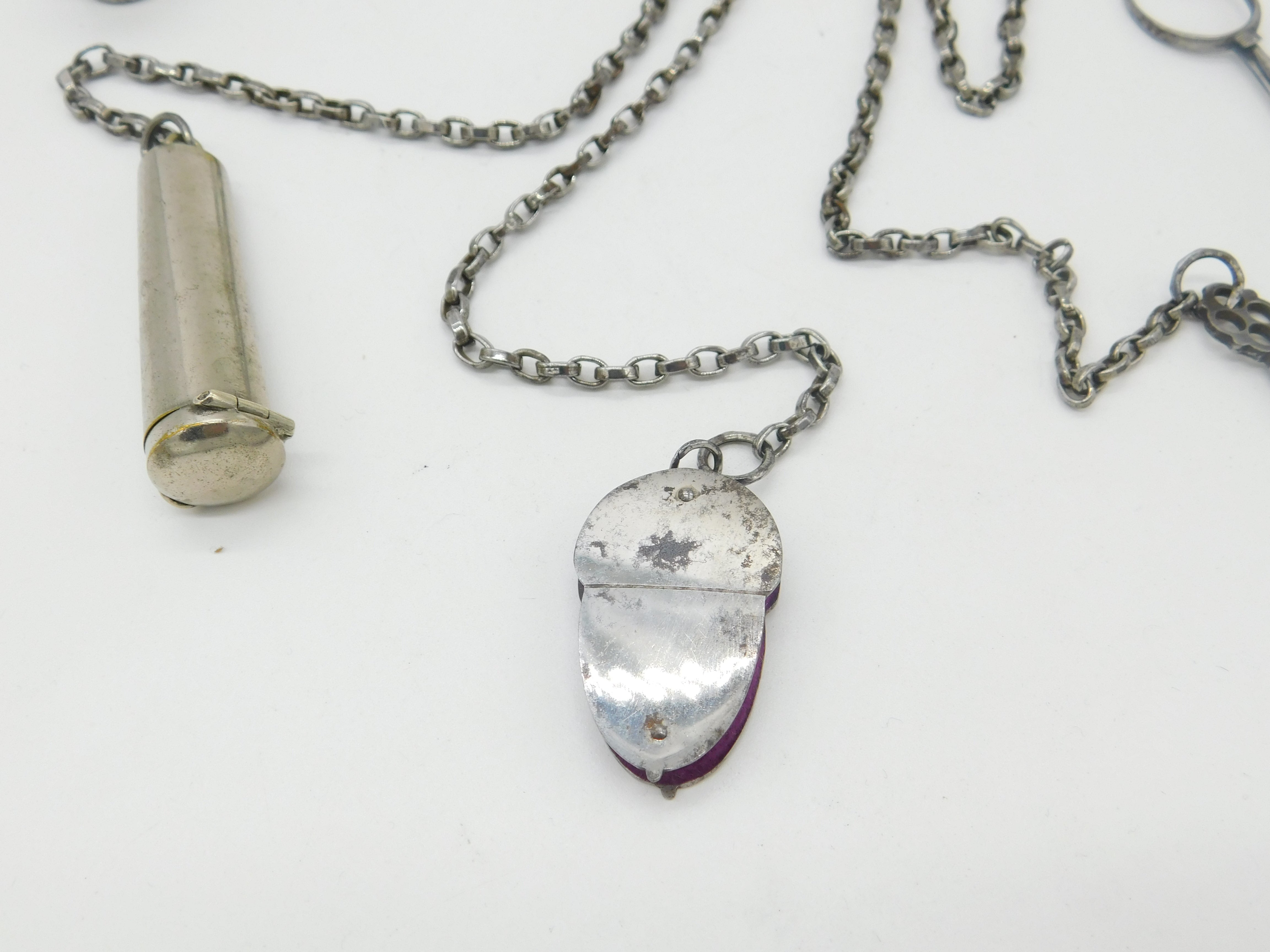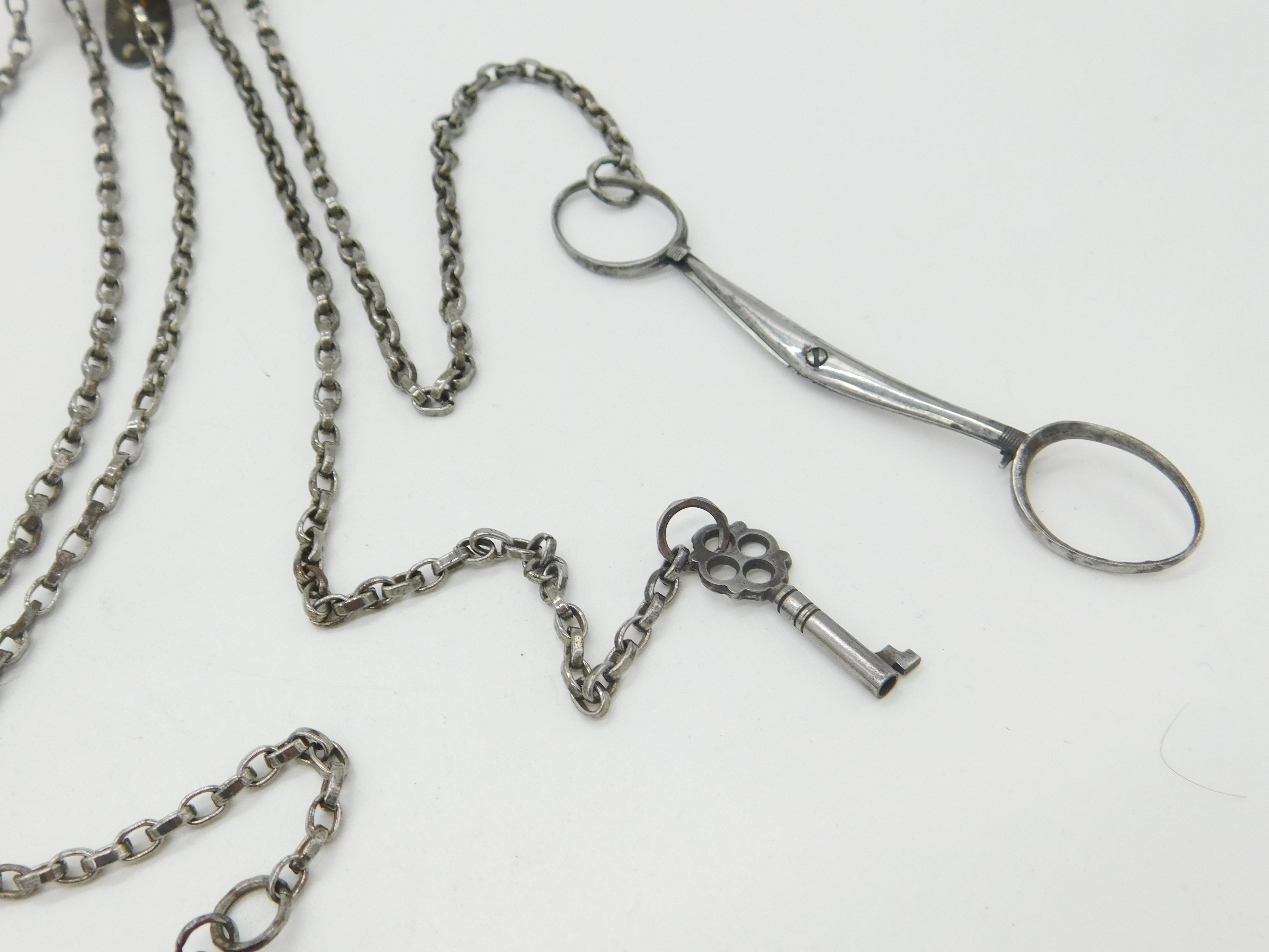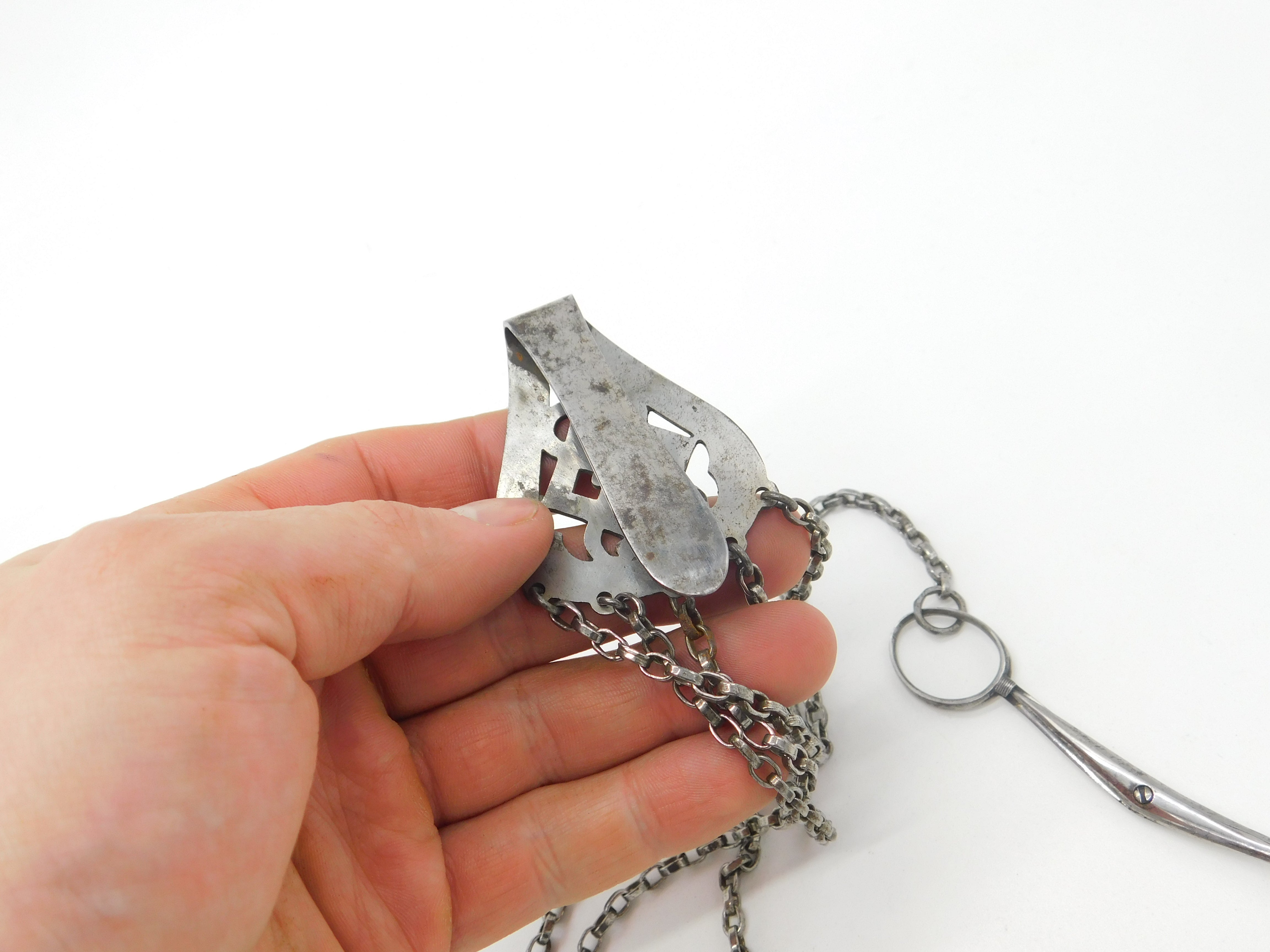 Large Victorian Cut Steel Sewing Chatelain with Multiple Tools Antique c1850
