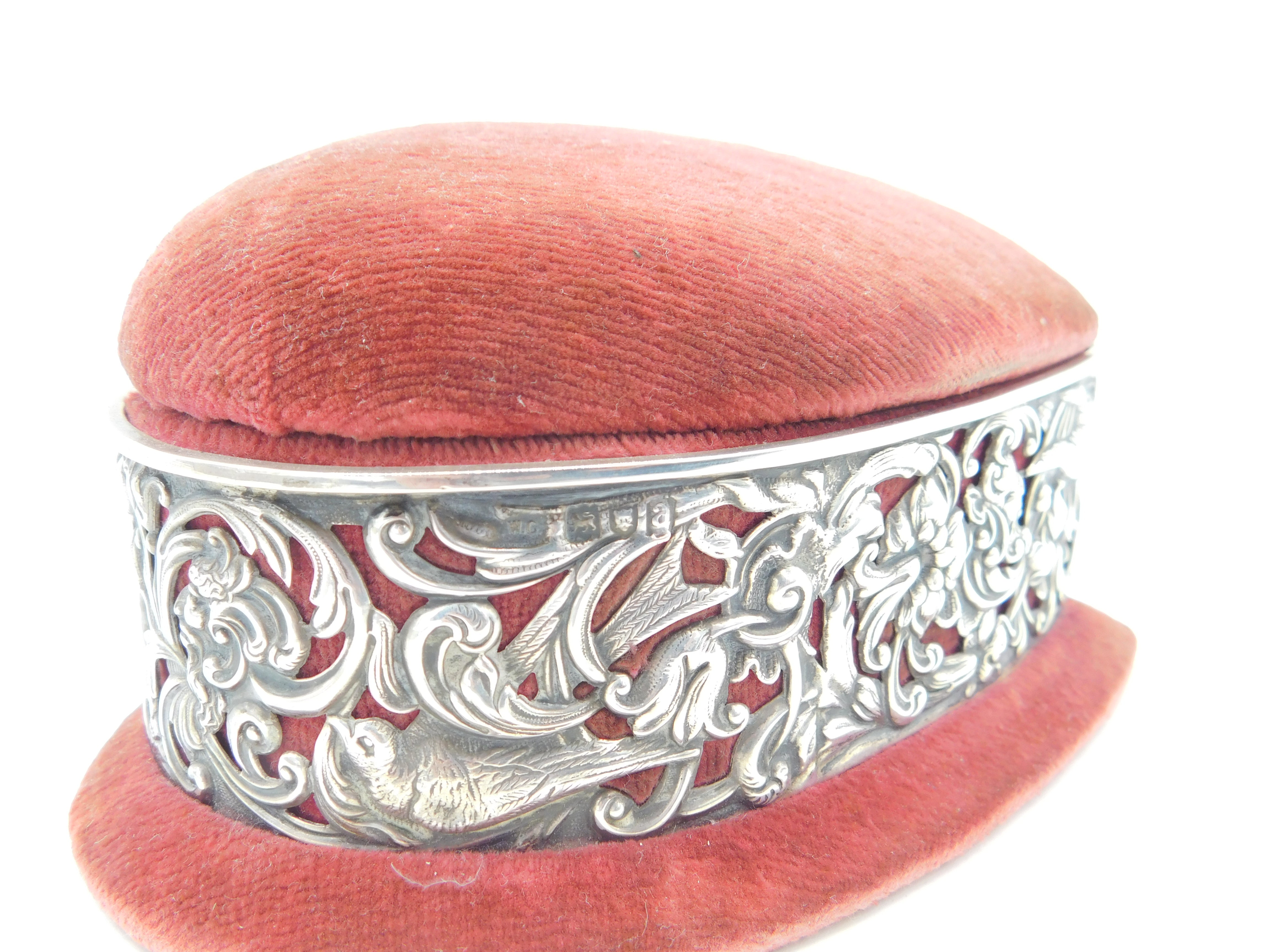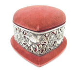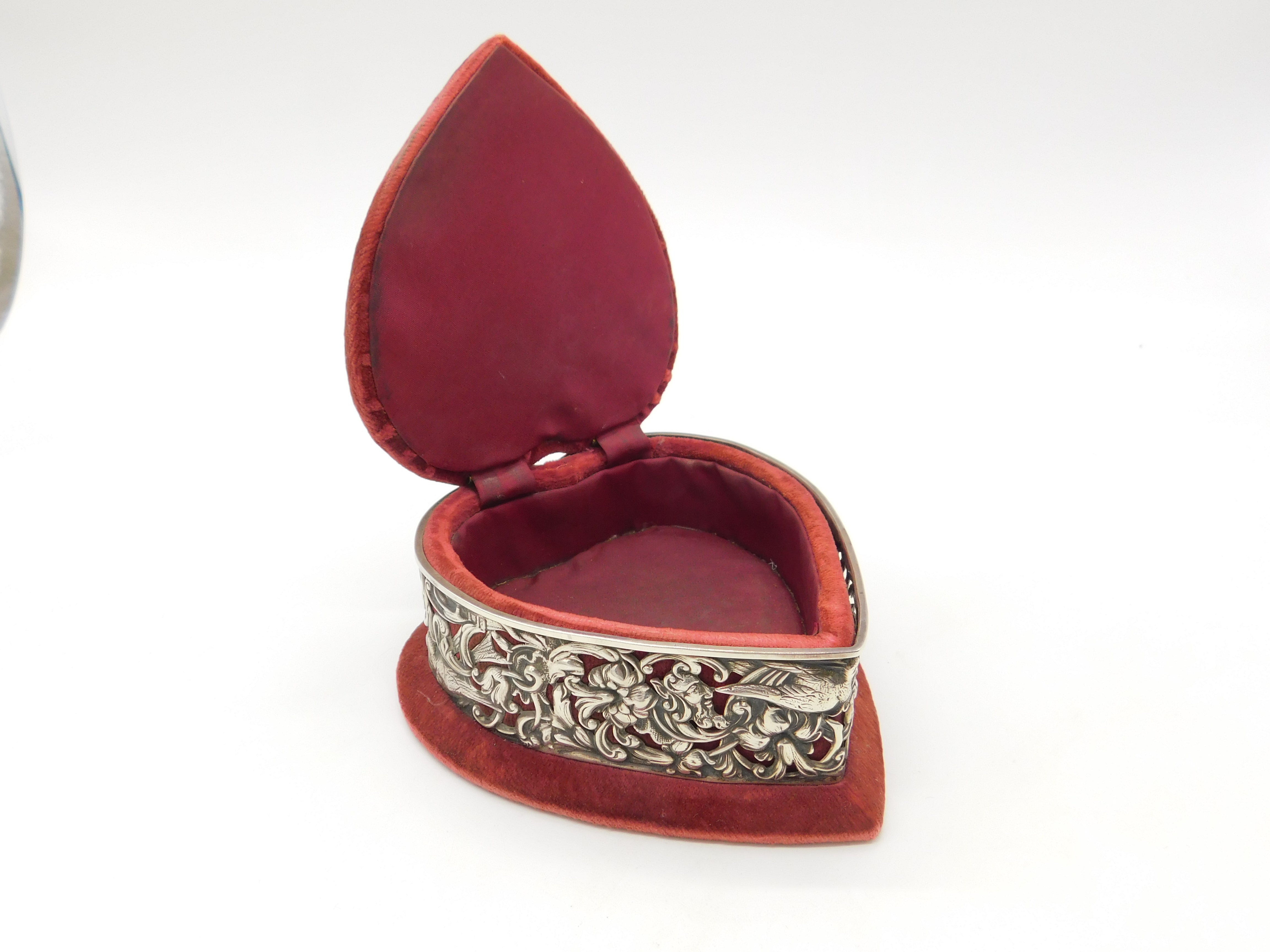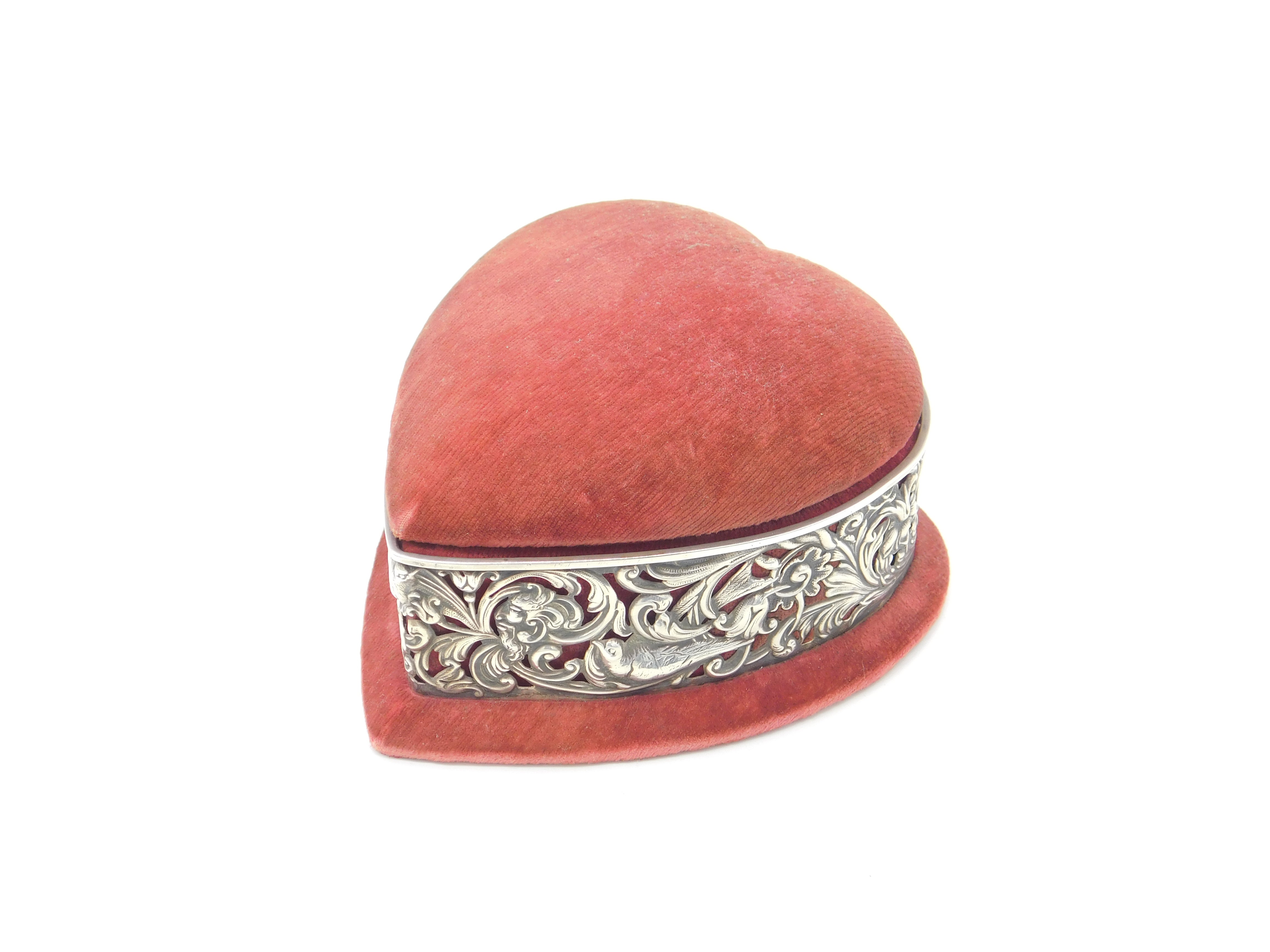 Large Victorian Sterling Silver Bird & Floral Pattern Heart Pin Cushion Box 1900 William Comyns