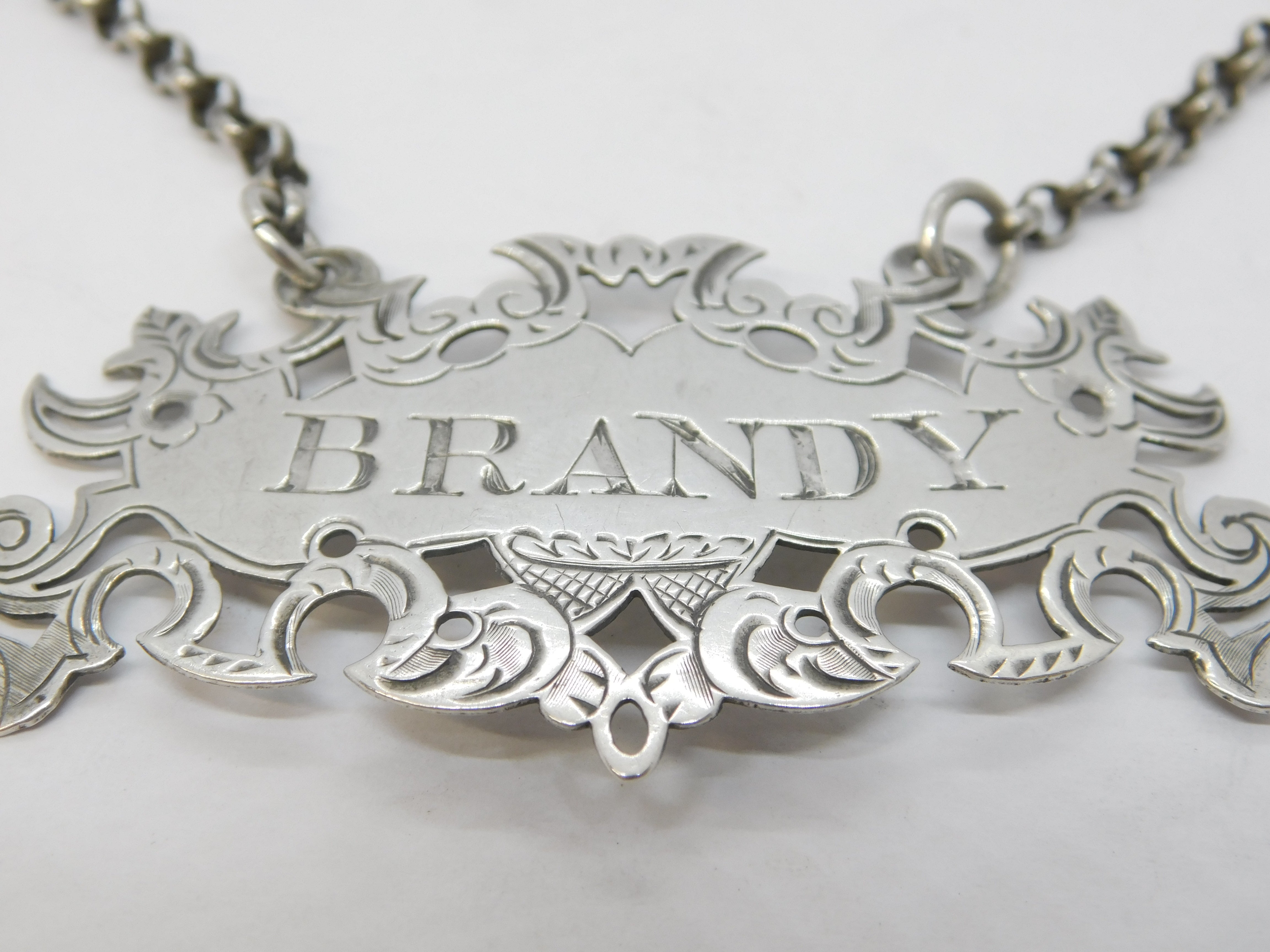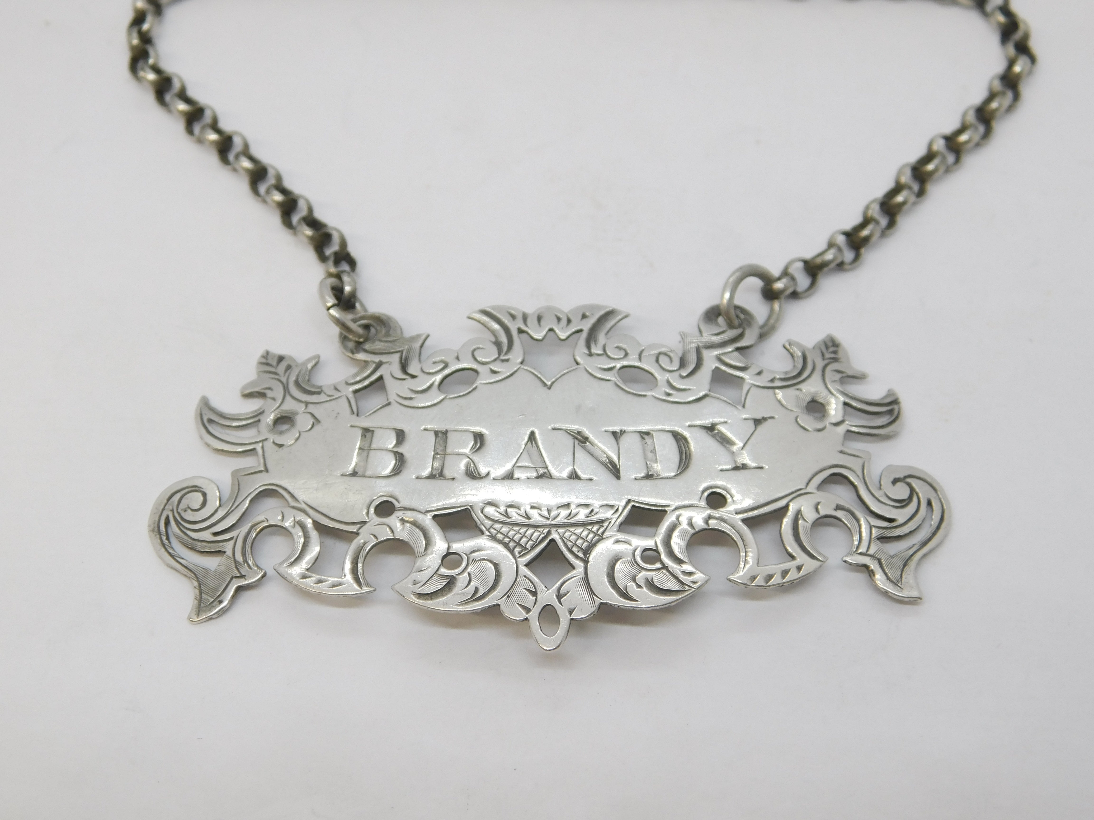 Details: A fantastic and wonderfully designed antique mid-Victorian sterling silver floral pattern Brandy decanter label hallmarked Birmingham 1852 by prestigious maker Nathaniel Mills. This is a wonderful item that would make a perfect gift or addition to any collection.