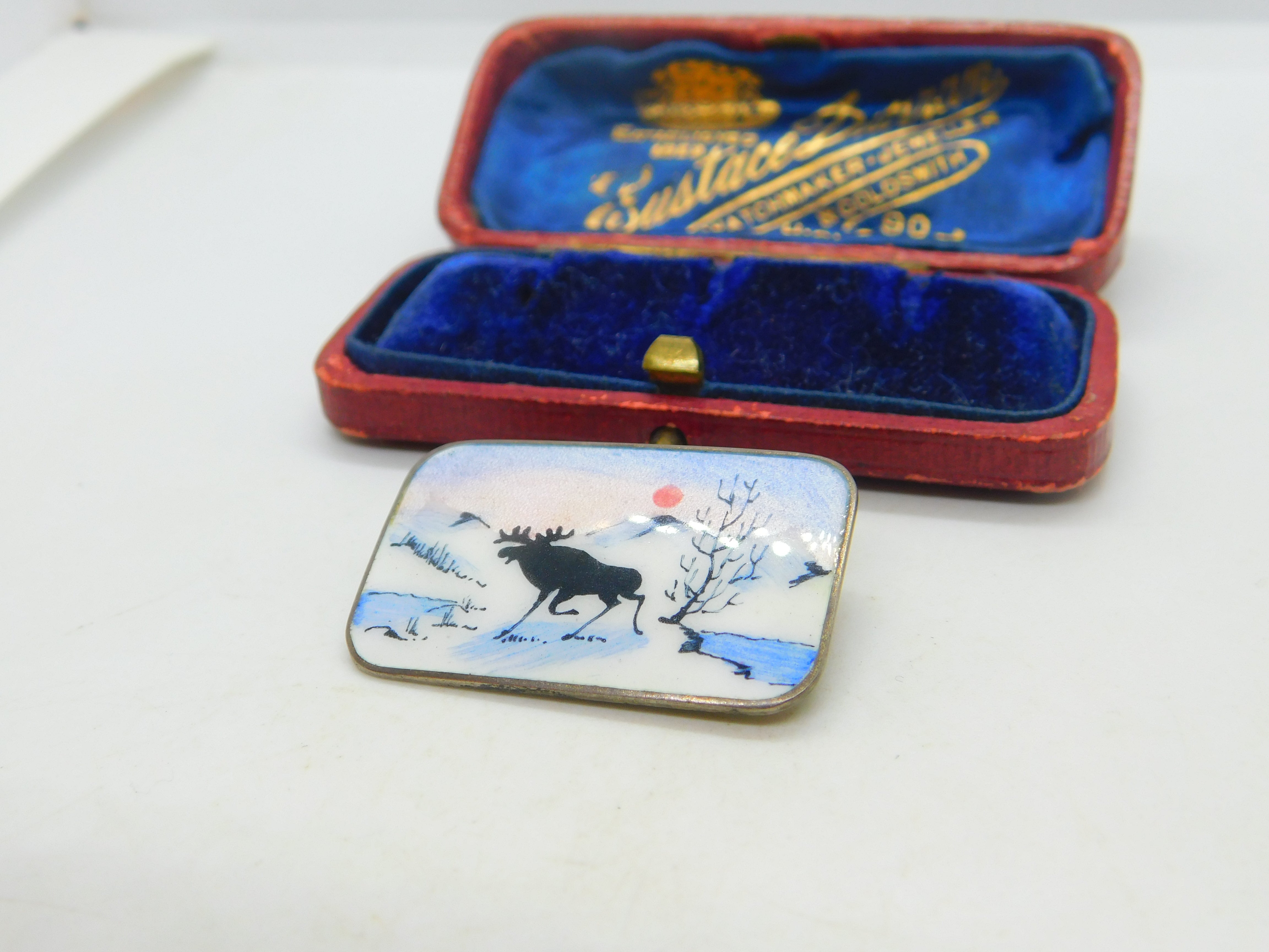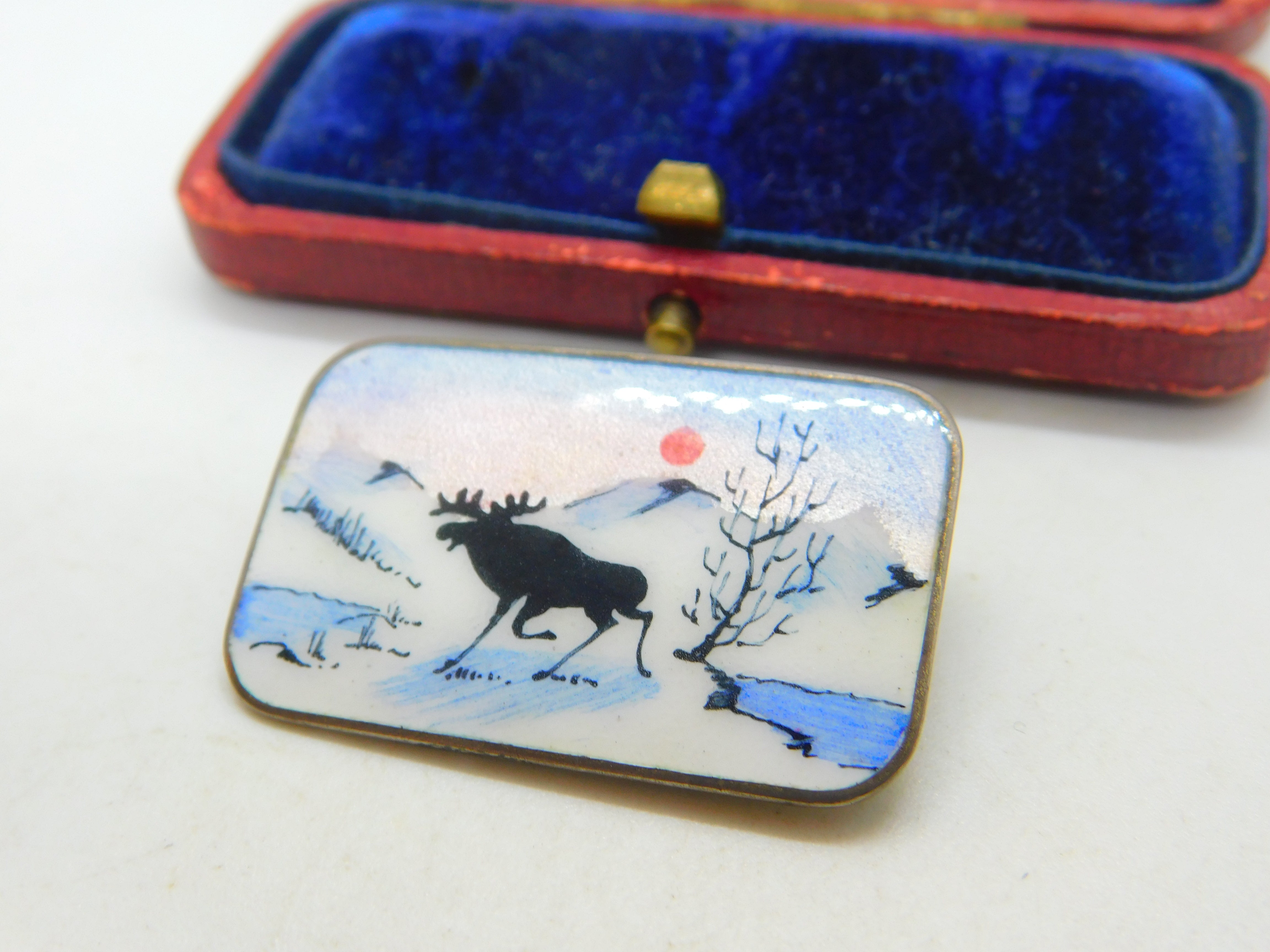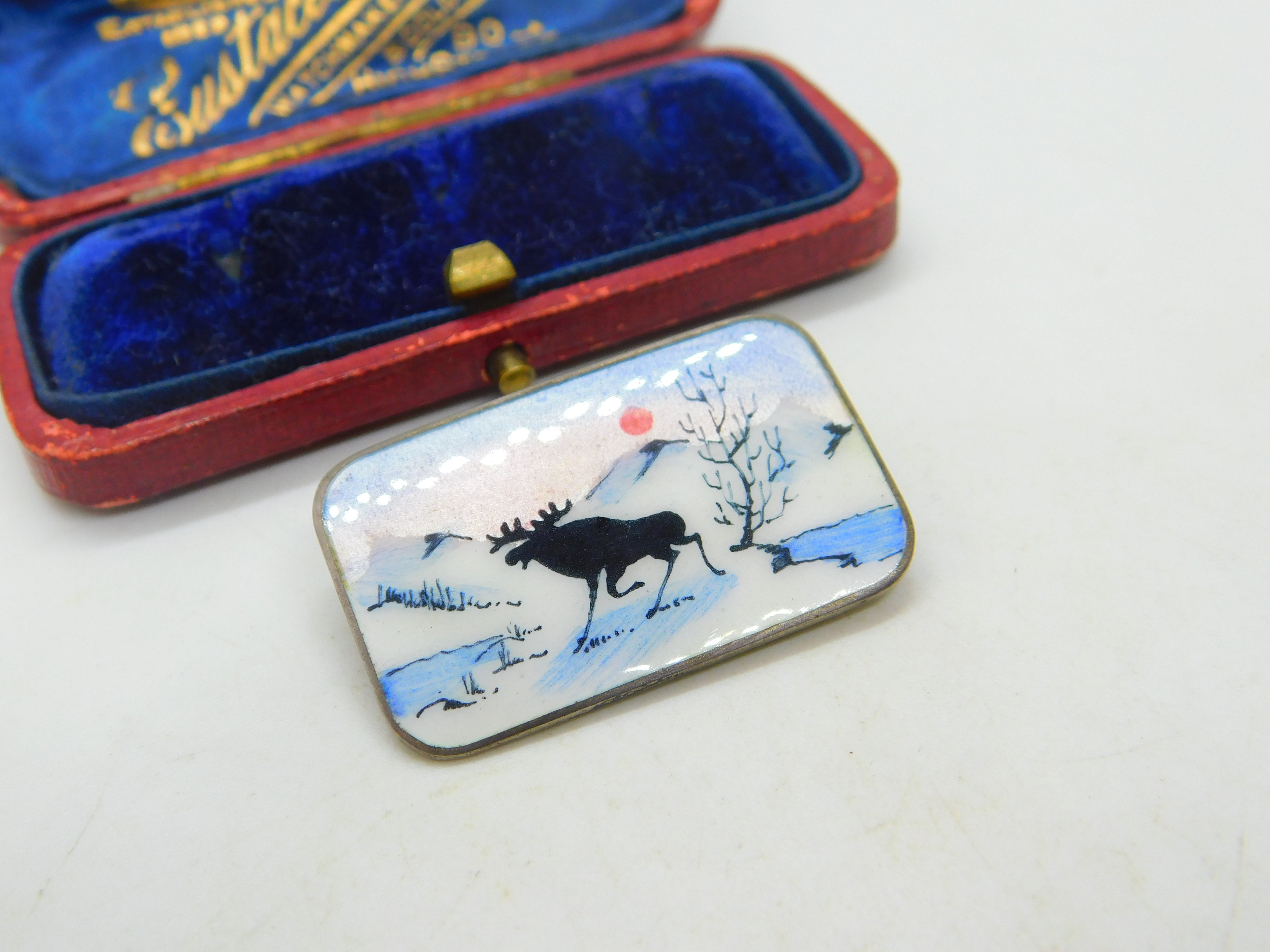 Details: A fantastic and wonderfully designed mid-century Norway sterling silver & enamel Norne or Aksel Holmsen brooch depciting a lovely reindeer winter scene c1950. This is a wonderful item that would make a perfect gift or addition to any collection. The BOX pictured is for PRESENTATION ONLY and is NOT included in the listings but used to frame the pictures unless specifically stated otherwise.