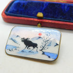 Norne Aksel Holmsen Sterling Silver & Enamel Reindeer Scene Brooch Mid-Century