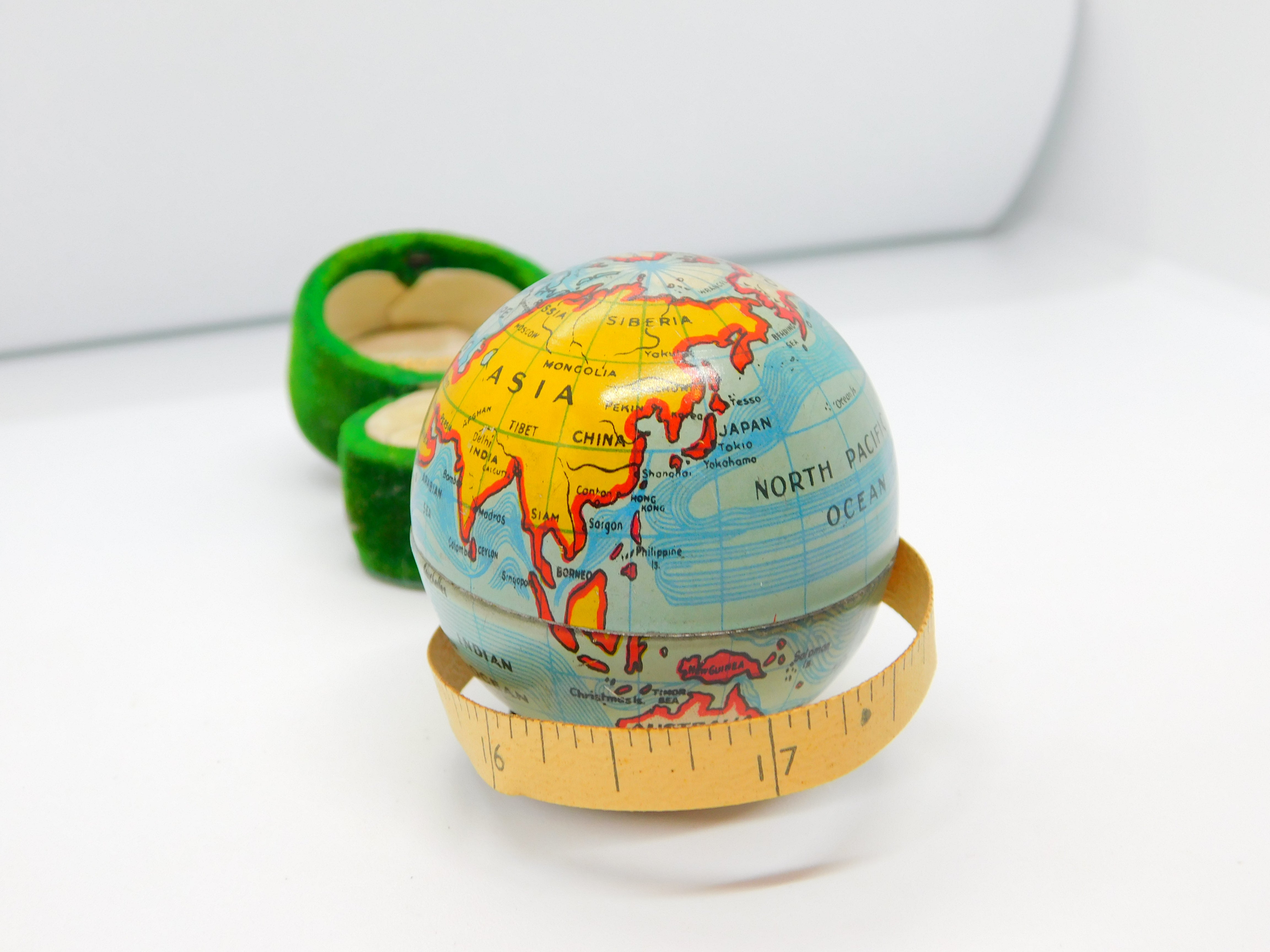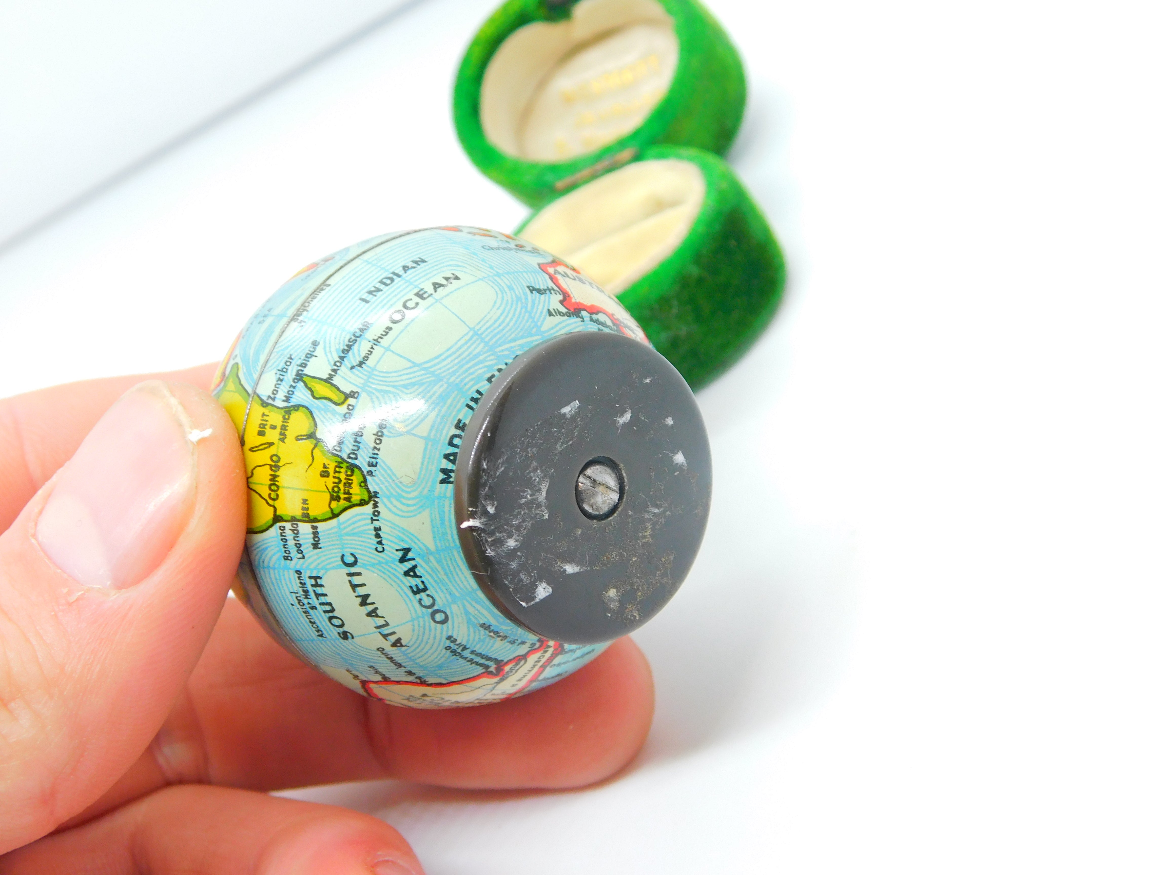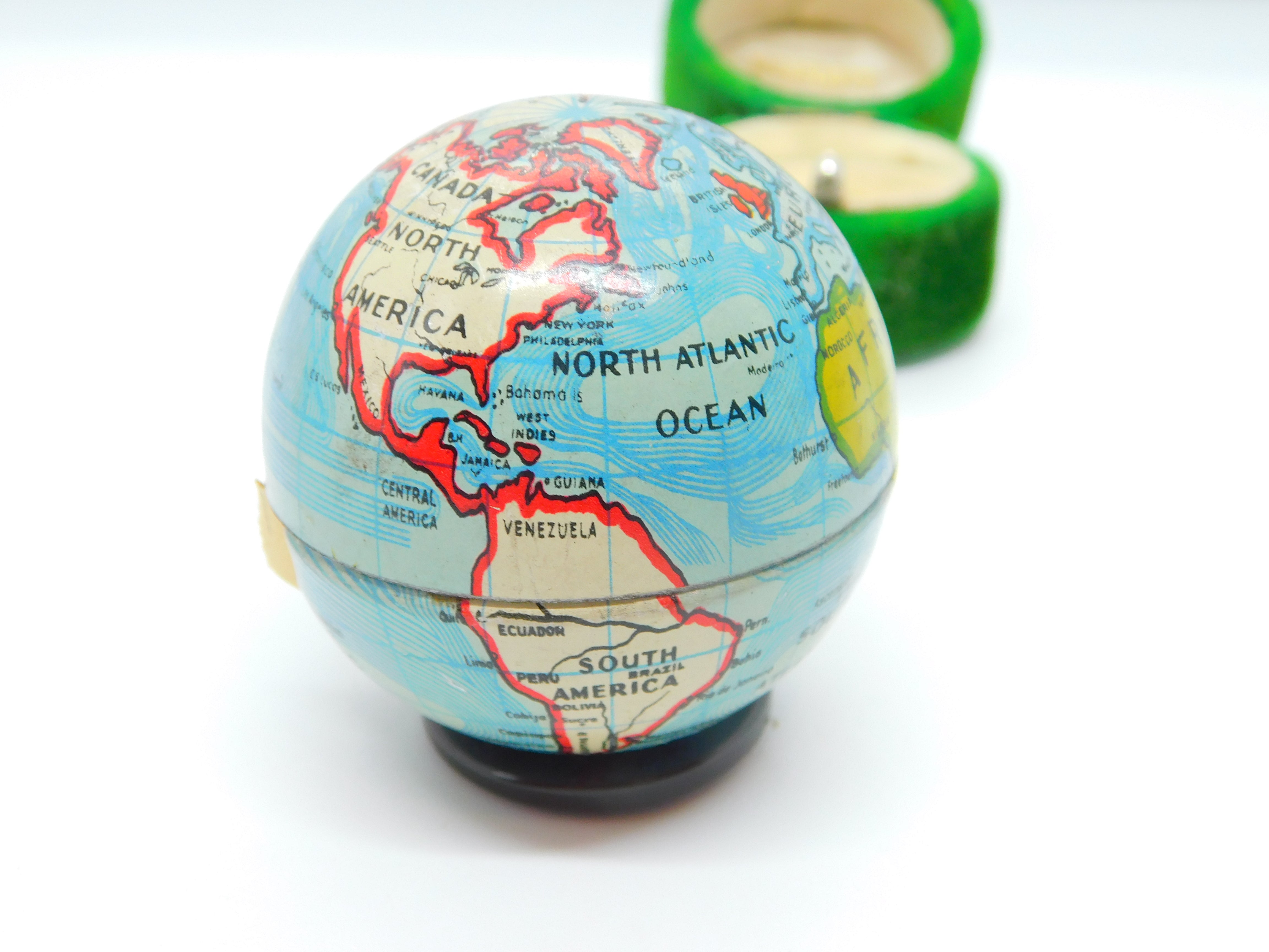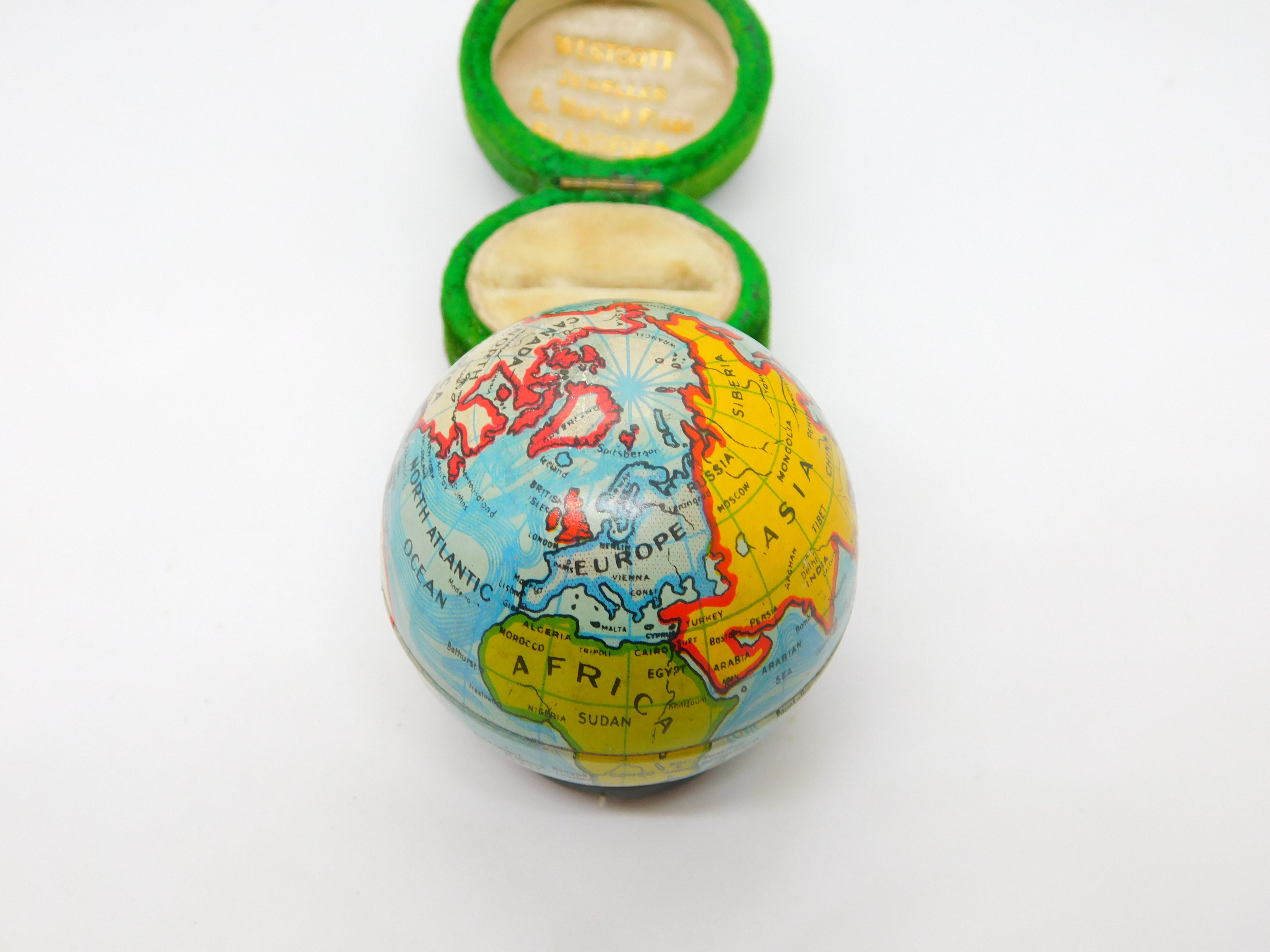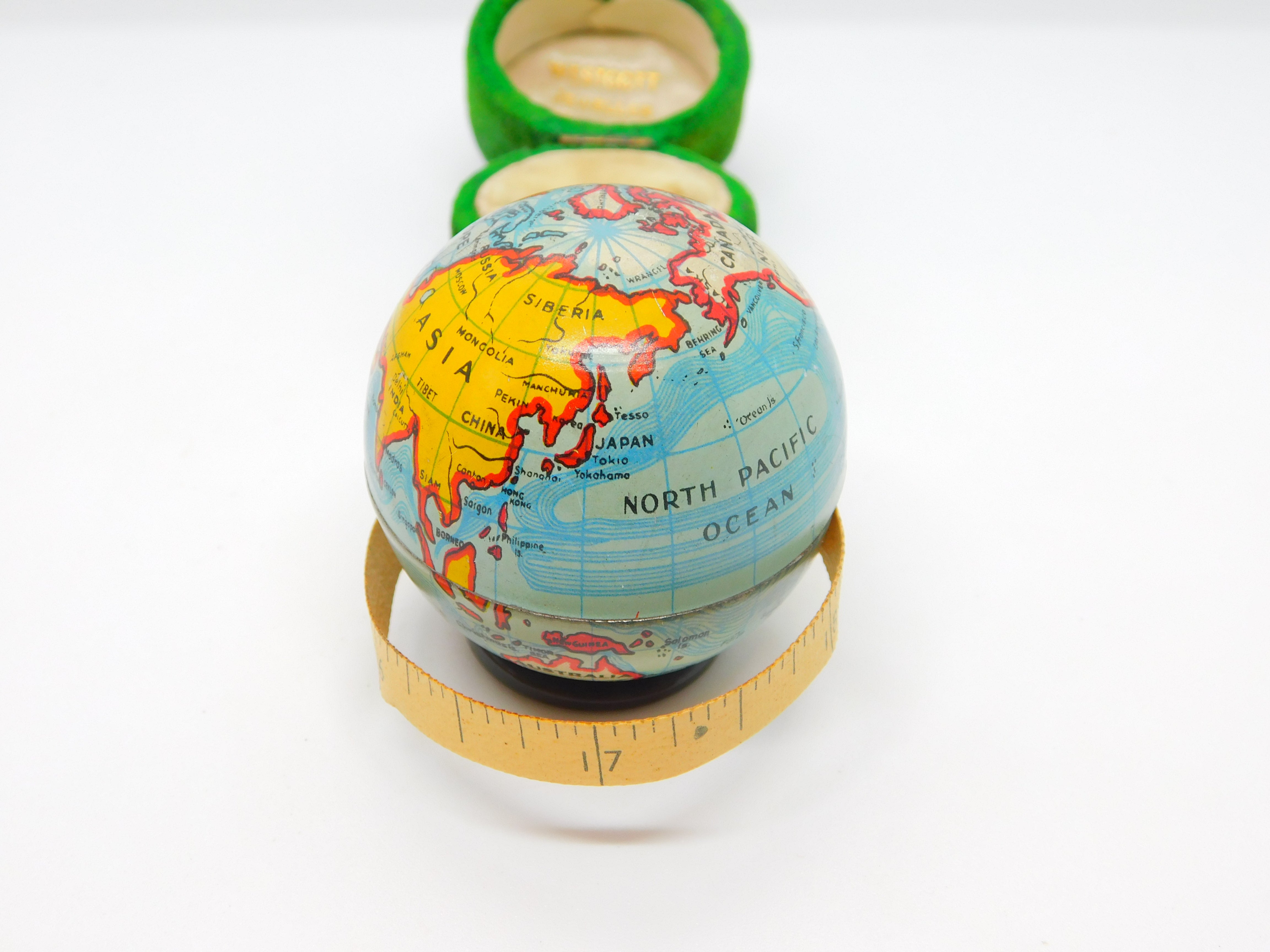 Novelty Tinplate Globe Form Sewing Tape Measure Antique c1920 Art Deco