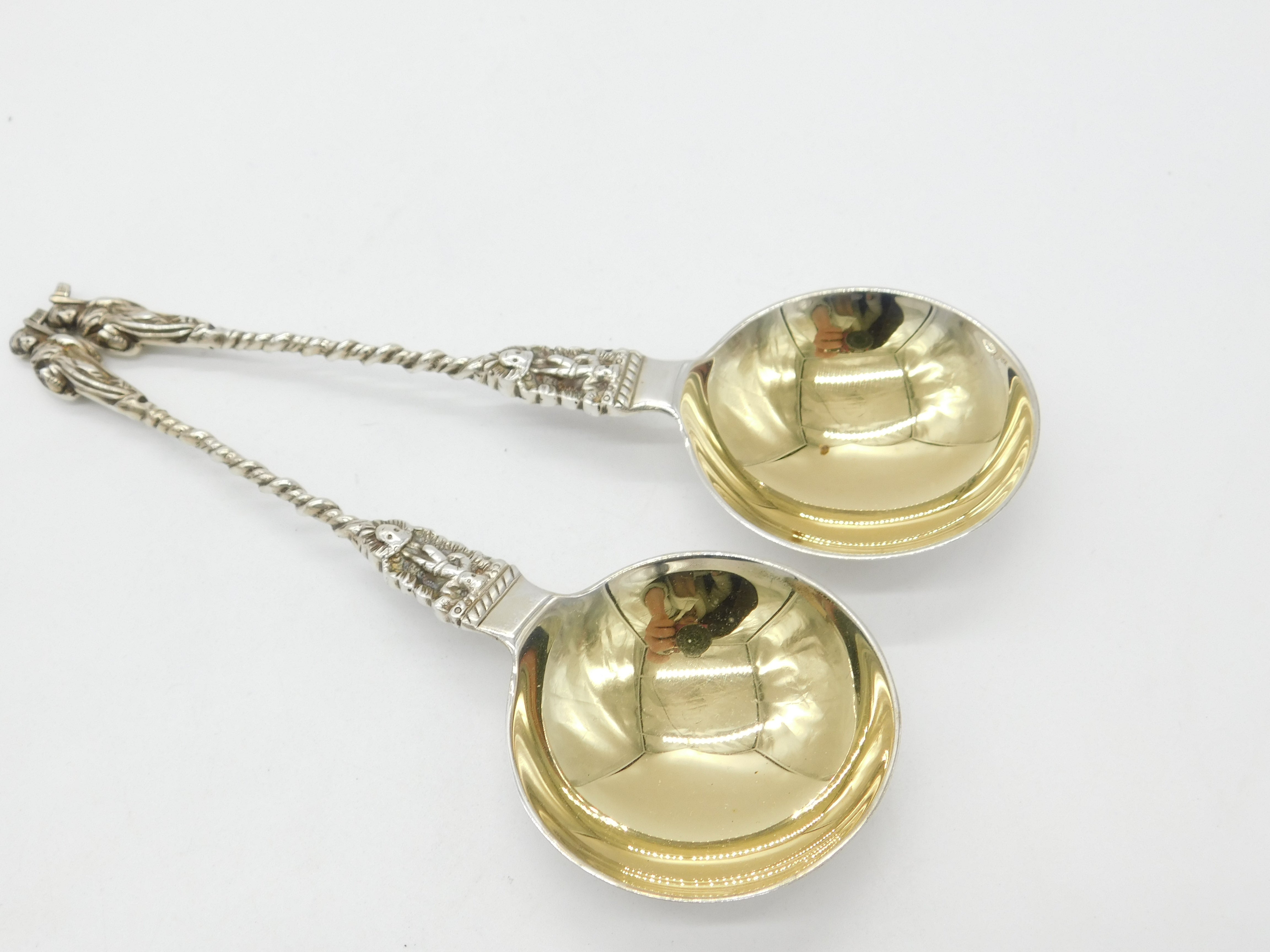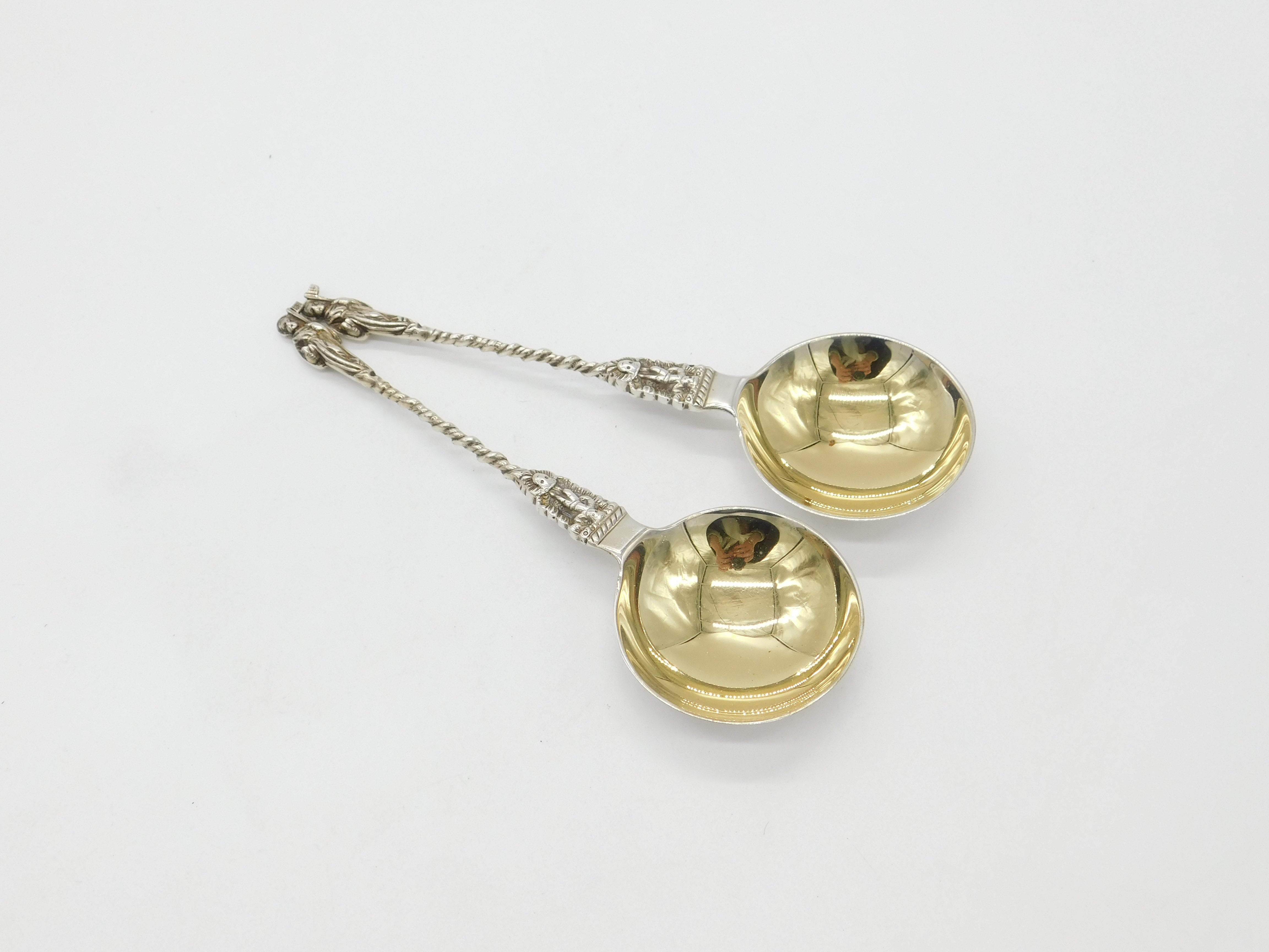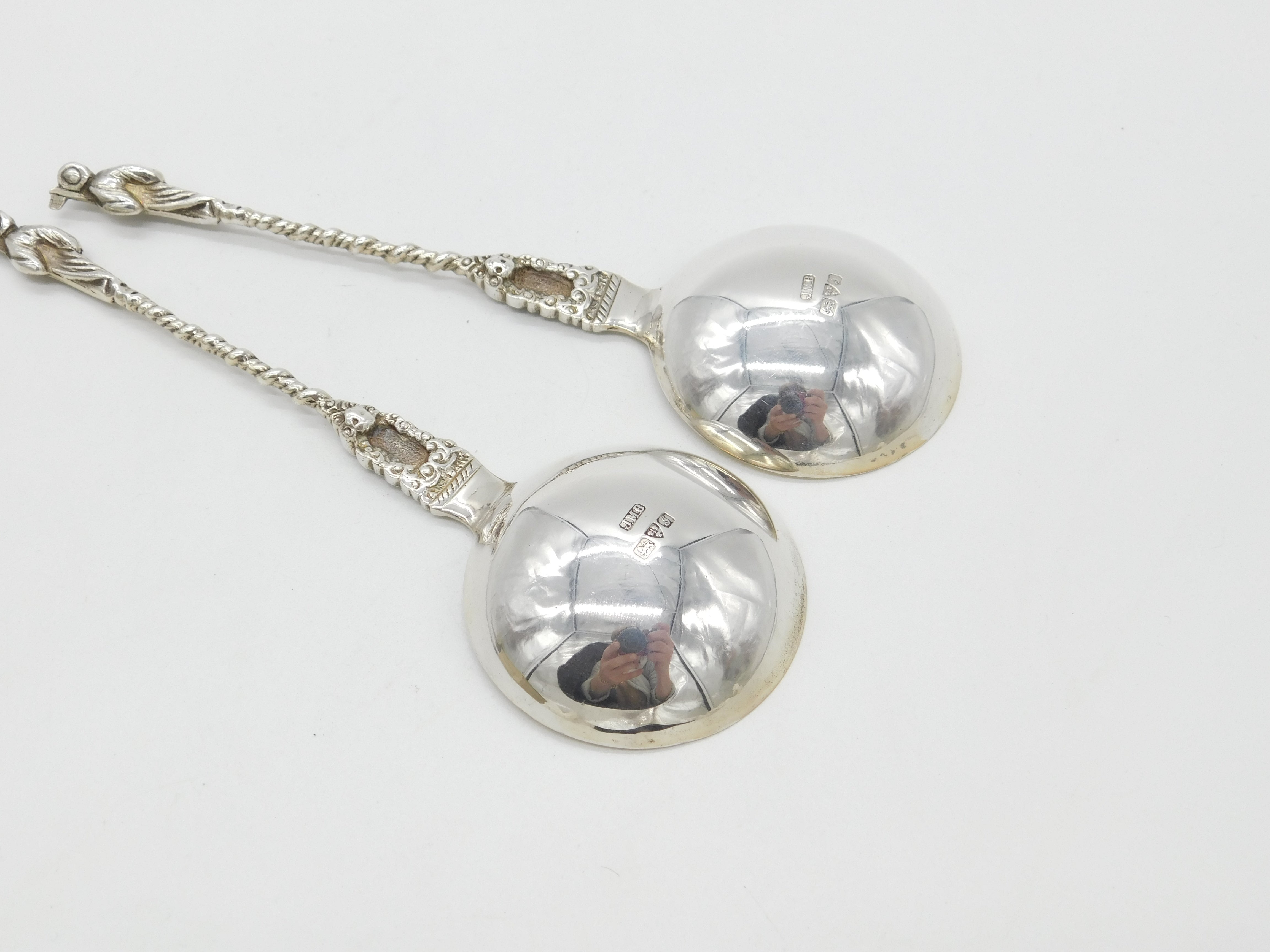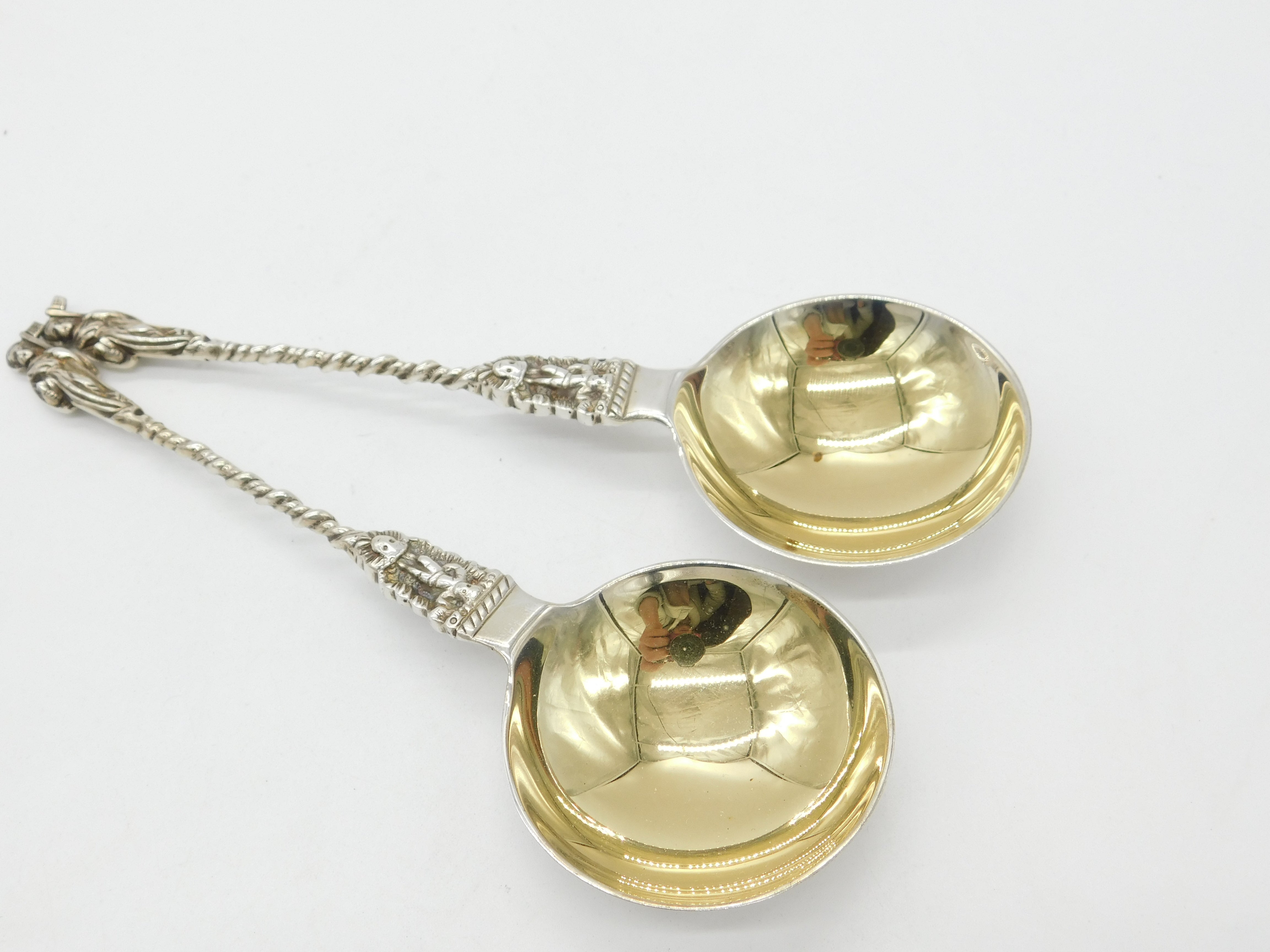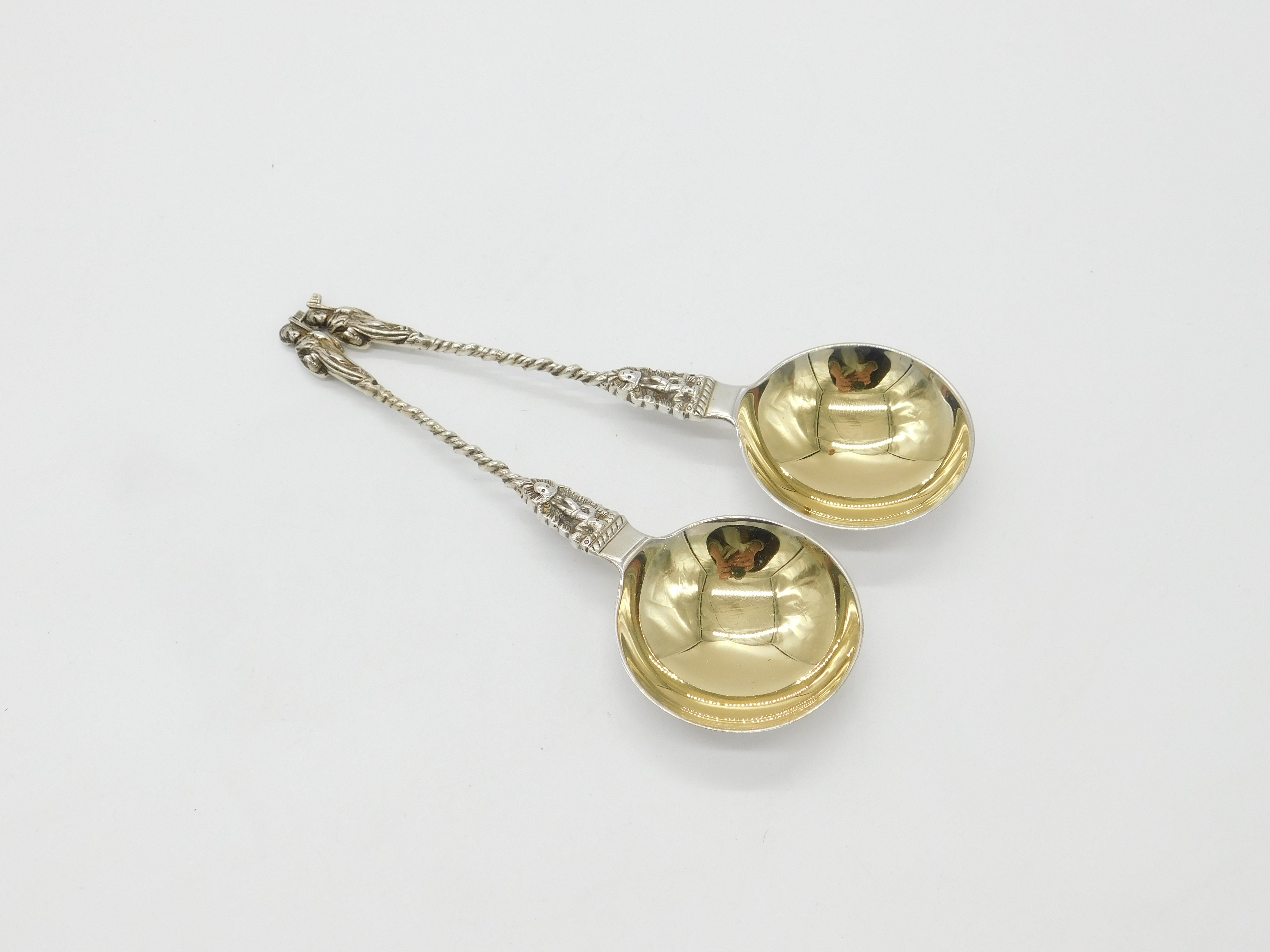Pair of Edwardian Sterling Silver Apostle Terminal Dessert Spoons 1909 Chester