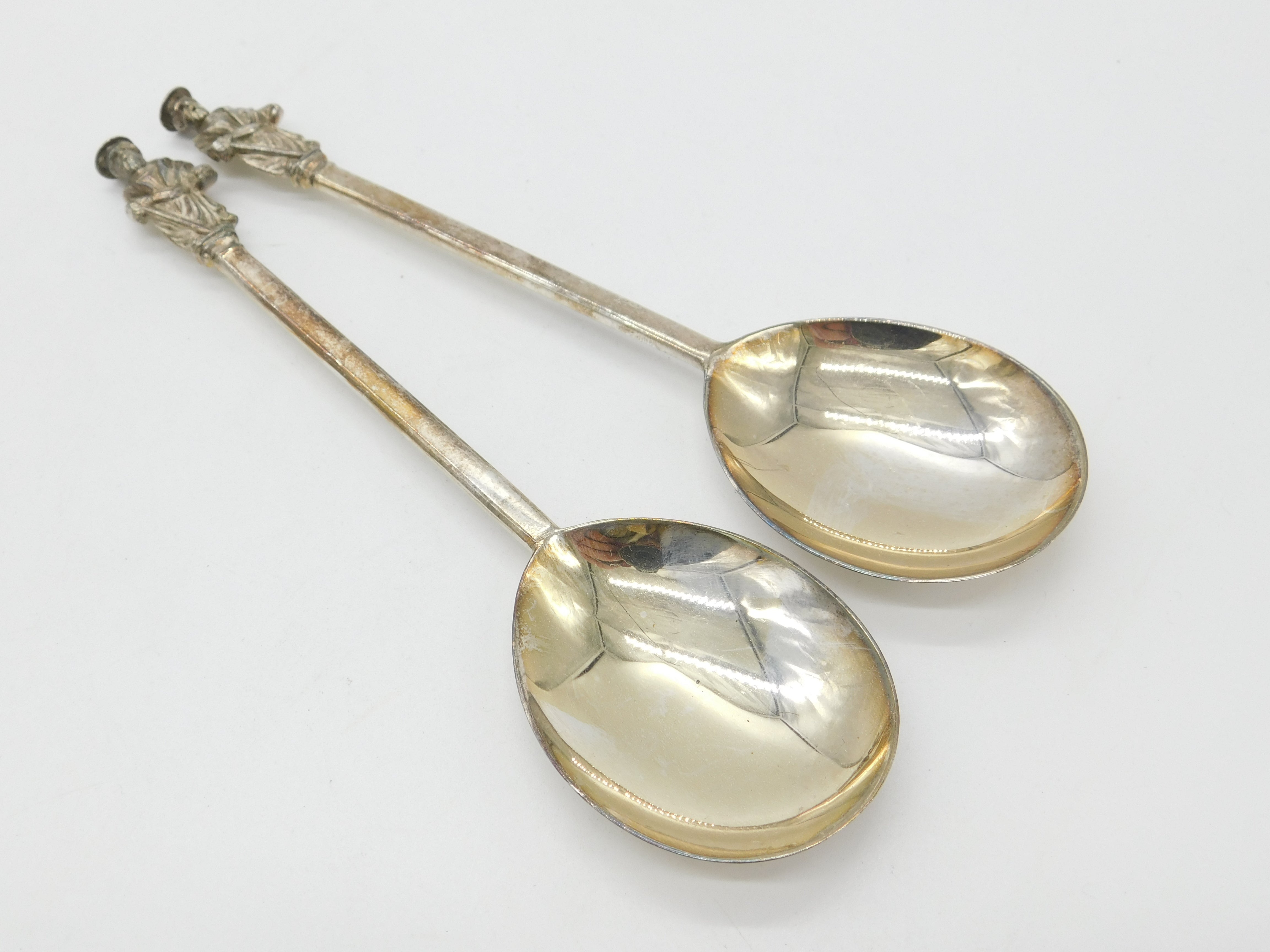 Pair of Victorian Sterling Silver Apostle Terminal Tablespoons 1887 London