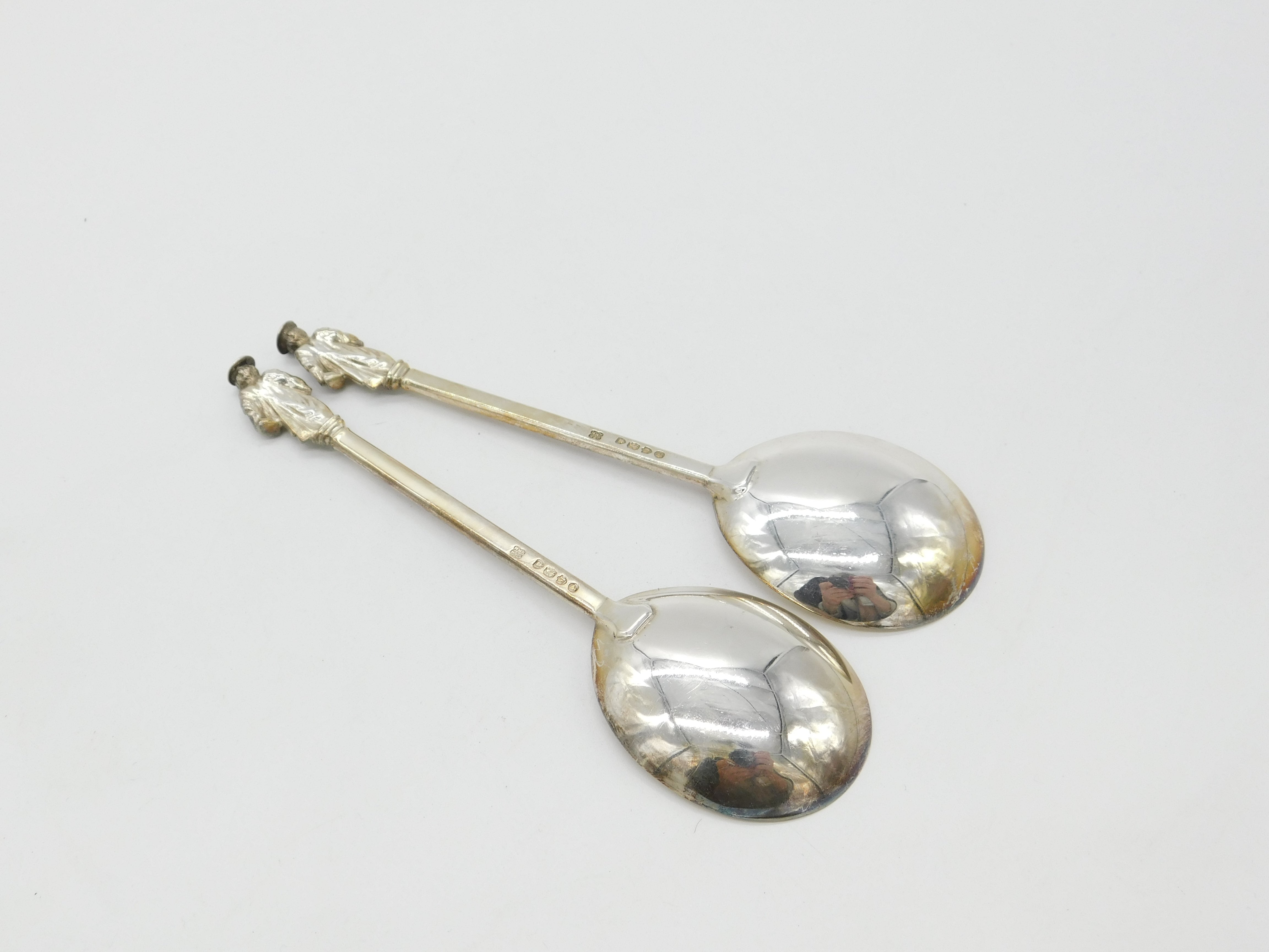 Details: A fantastic and wonderfully designed antique pair of Victorian sterling silver apostle terminal tablespoons hallmarked London 1887 by Hukin & Heath. This is a wonderful item that would make a perfect gift or addition to any collection. The BOX pictured is for PRESENTATION ONLY and is NOT included in the listings but used to frame the pictures unless specifically stated otherwise.