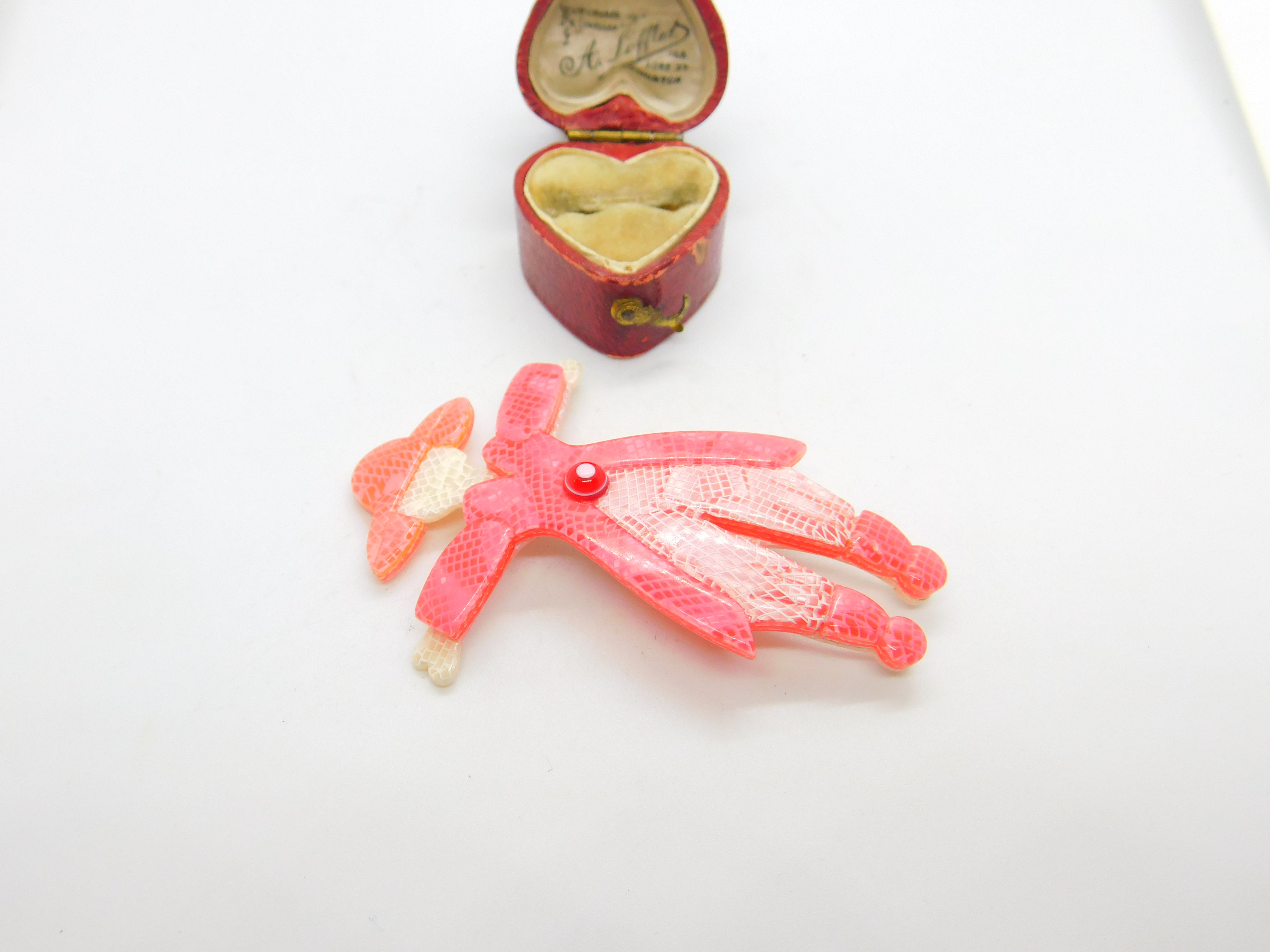 Simply iconic, this is a wonderful and very collectable Lea Stein of Paris brooch or pin of a person in pink dating from the 1960's.