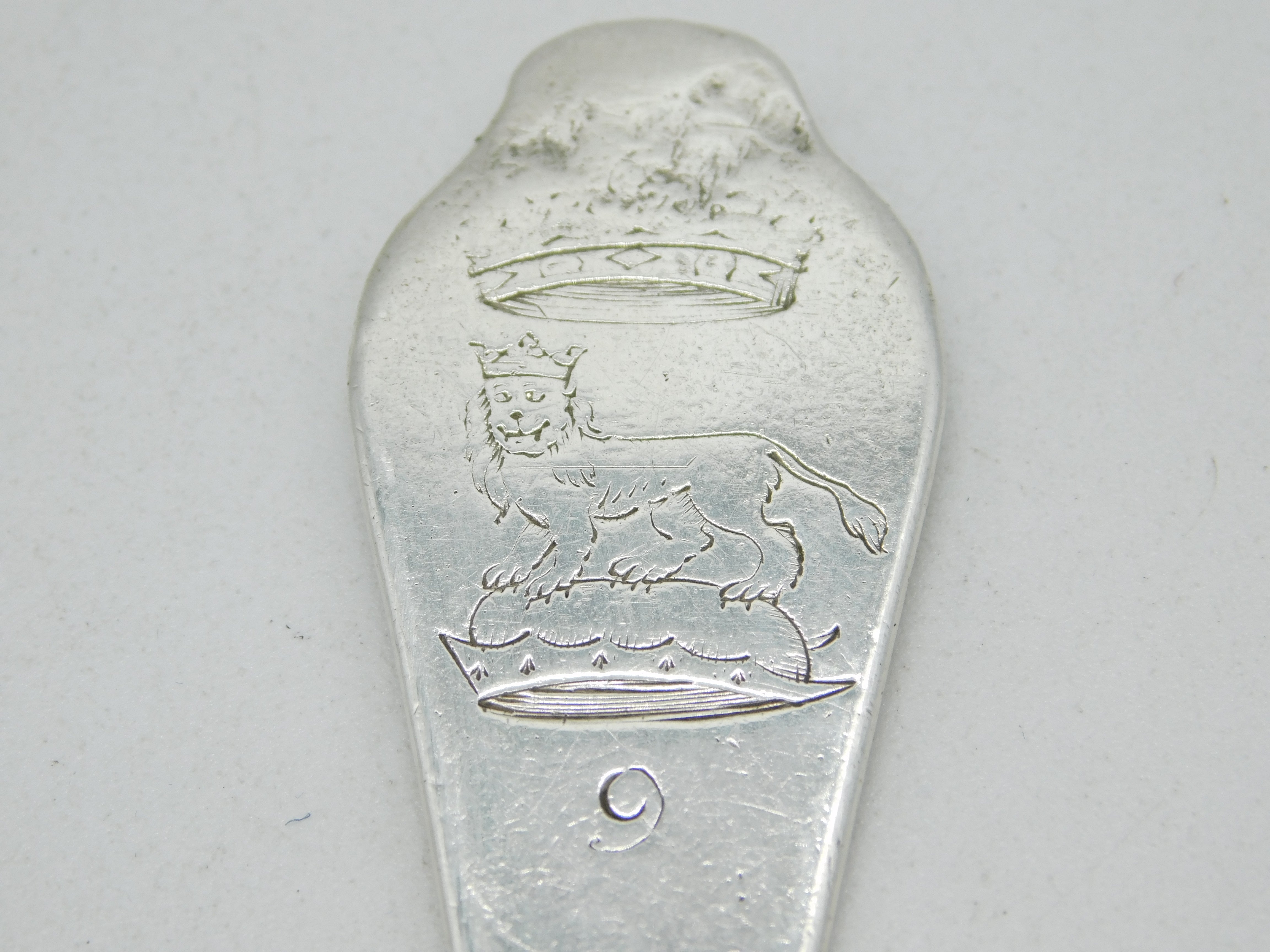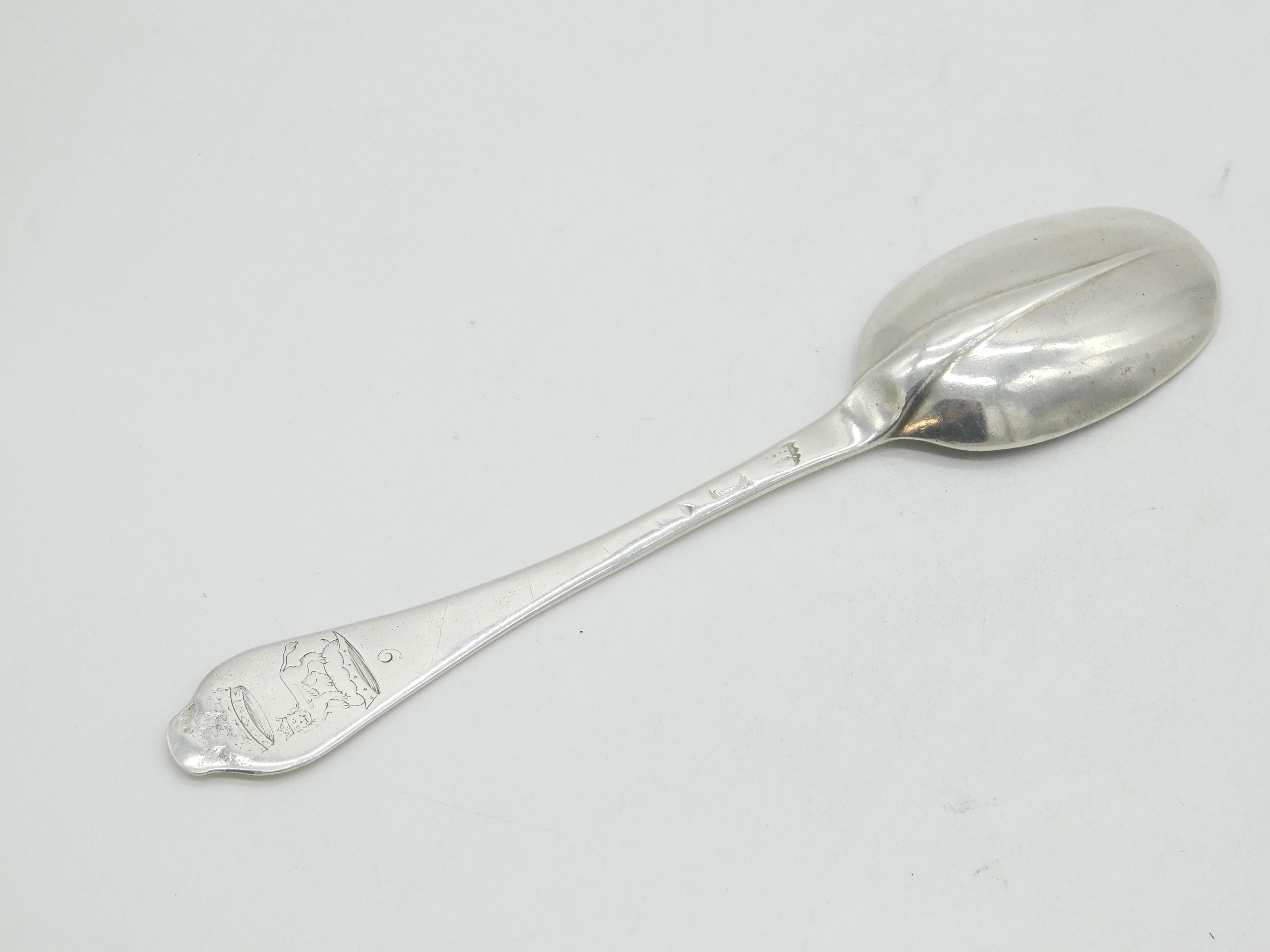 Details: A fantastic and wonderfully designed antique early Queen Anne period britannia silver dog nose spoon with charming heraldic crest depicting a lion wearing a crown under a larger crown, hallmarked to the reverse London c1710 by Samuel Hitchcock. Clipping to the end of the bowl and rubbed marks. This is a wonderful item that would make a perfect gift or addition to any collection. We are more than happy to provide XRF reports for items upon request.